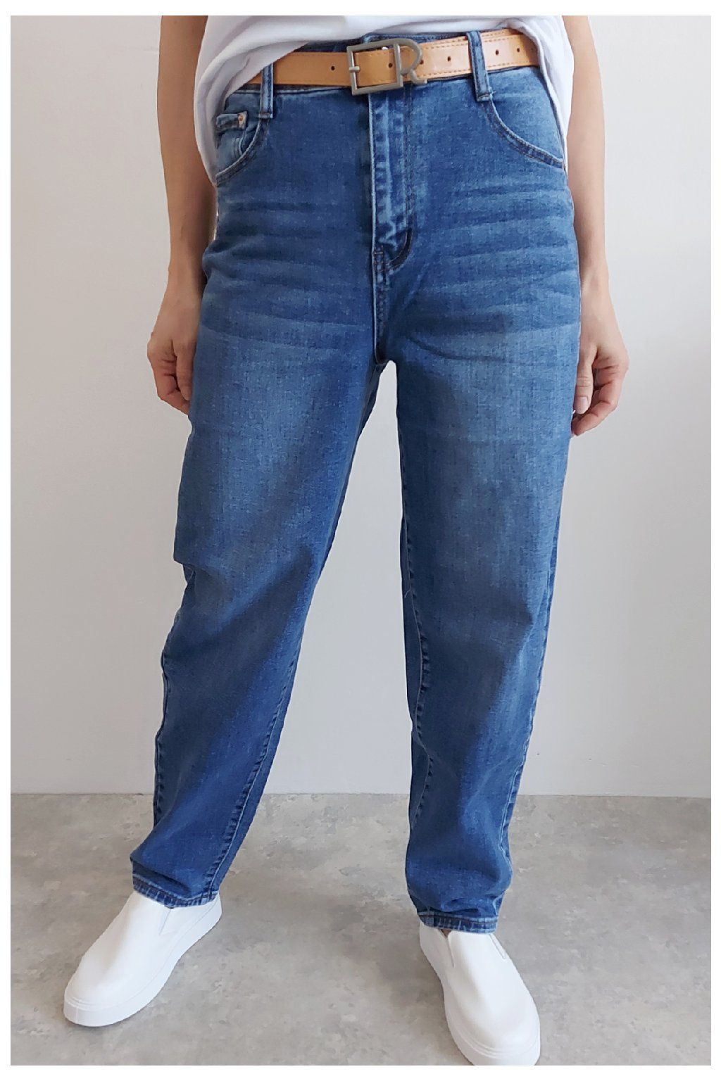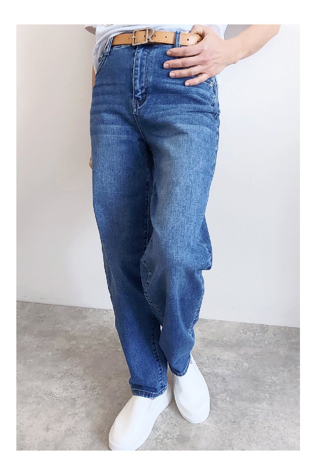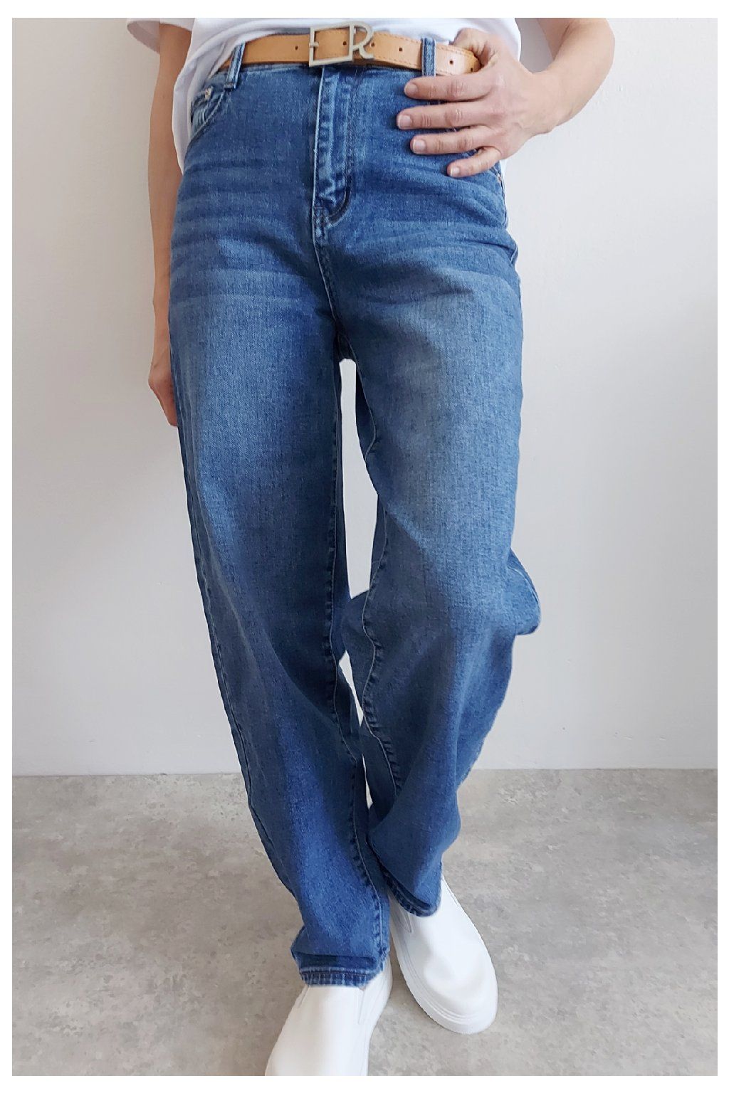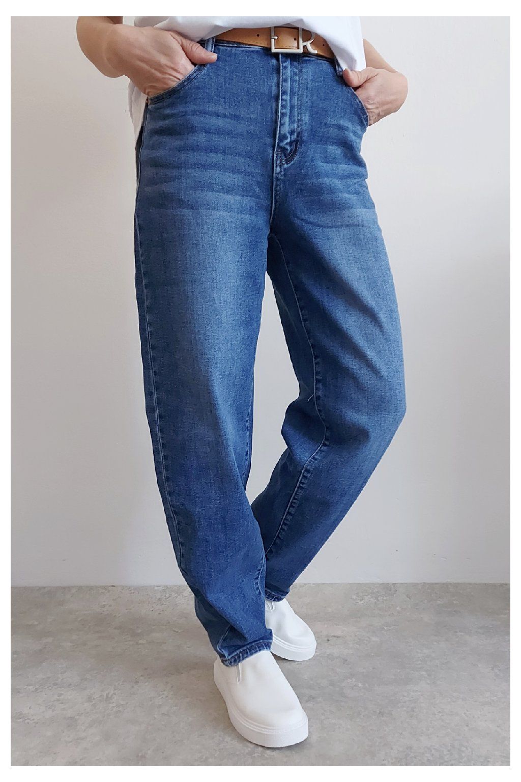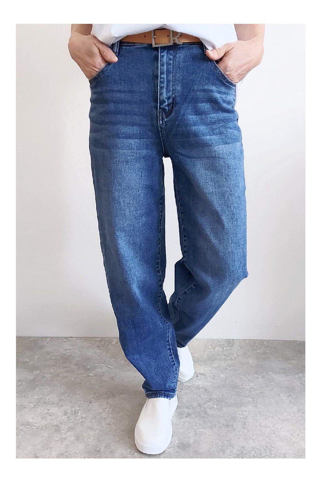 Skvělé džíny lehce balonového střihu značka Moon Girl. Tmavší modrá denim barva, místy šisovaná. Pásek součástí. Přední i zadní kapsy. Materiál kvalitní a mírně pružný. Velikosti odpovídají, ale kdo má rád volnější - berte o číslo větší než běžně nosíte. Vel. S focena na vel. XS, výška 156cm.