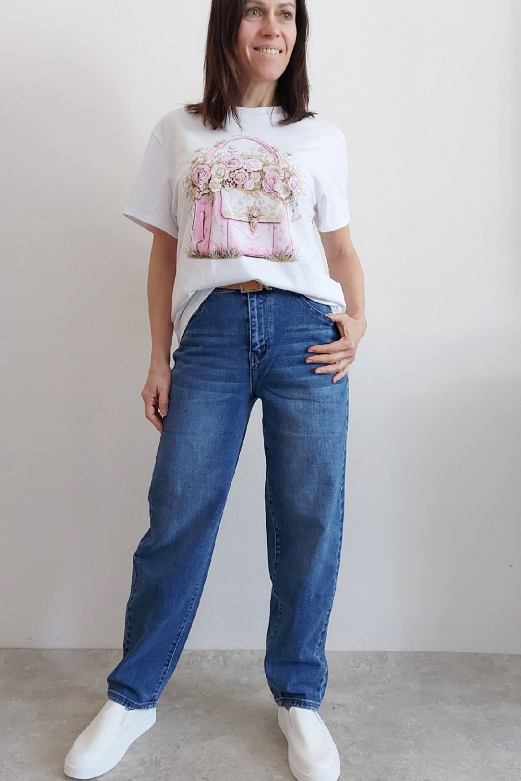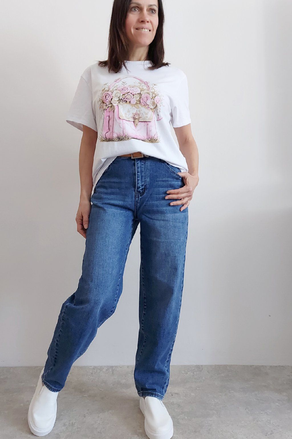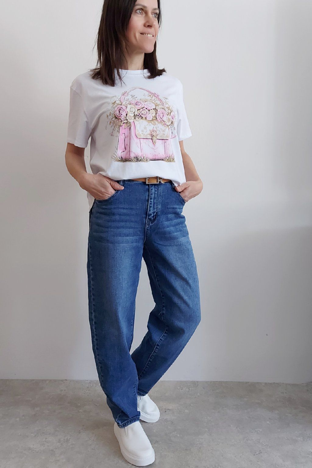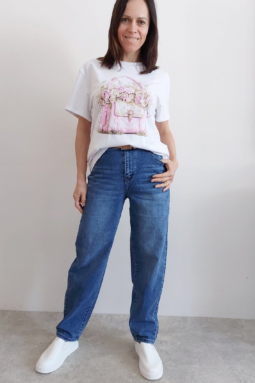 Skvělé džíny lehce balonového střihu značka Moon Girl. Tmavší modrá denim barva, místy šisovaná. Pásek součástí. Přední i zadní kapsy. Materiál kvalitní a mírně pružný. Velikosti odpovídají, ale kdo má rád volnější - berte o číslo větší než běžně nosíte. Vel. S focena na vel. XS, výška 156cm.