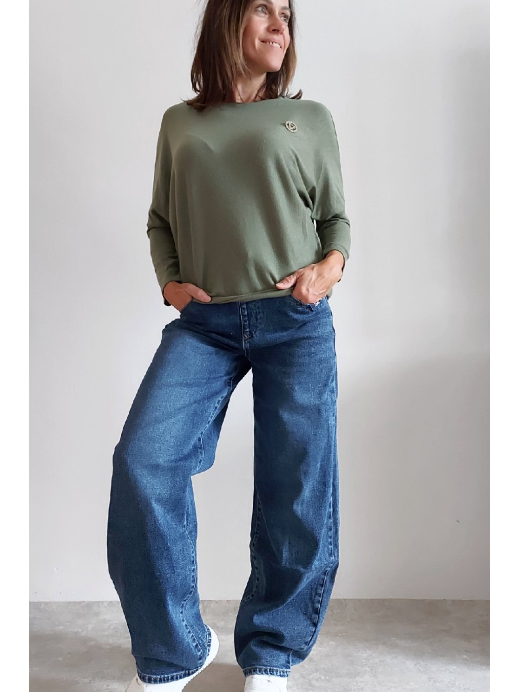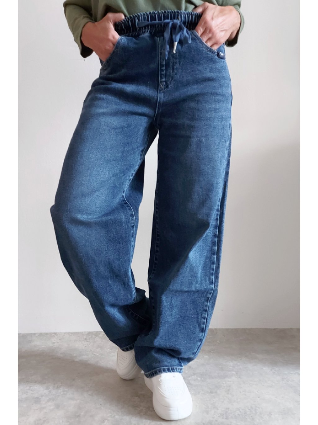 Parádní džíny s balónovými nohavicemi V pase guma šňůrka pro stažení obvodu. Přední a zadní kapsy. Sed vyšší. Skvělá tmavá denim barva. Materiál kvalitní a pružný. Vel. XS focena na vel. XS, výška 156cm.