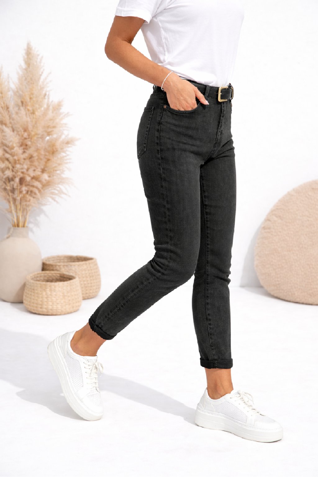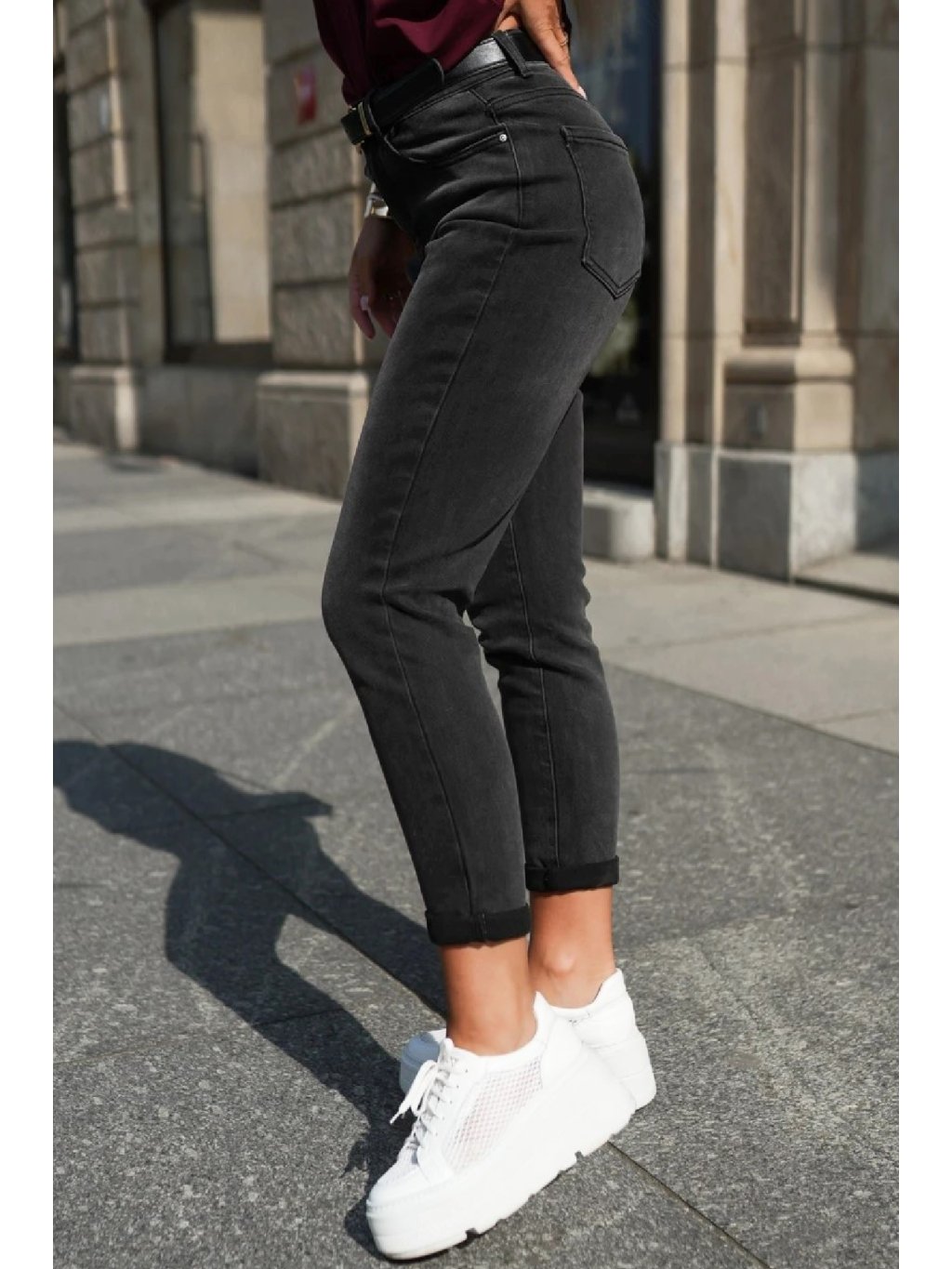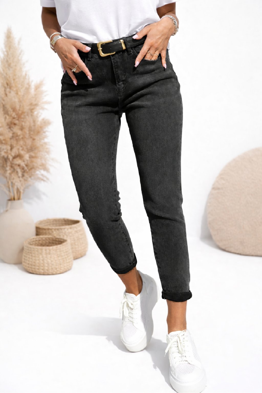 Luxusní džíny střihu mom fit v tmavě šedém provedení - místy šisované. V pase knoflík a zip. Přední a zadní kapsy. Součástí je i pásek, ale pozor je kratší - větší velikosti ho v pase nedopnou. Skvěle vypadají s ohrnutými nohavicemi. Vysoká kvalita a střih, který zaručeně sedne. Materiál je velice pružný. Vel. 2XL i 3XL focena na vel. 2XL/3XL (pas 110cm, boky 119cm), výška 165cm. Na vel. S focena menší velikost S.