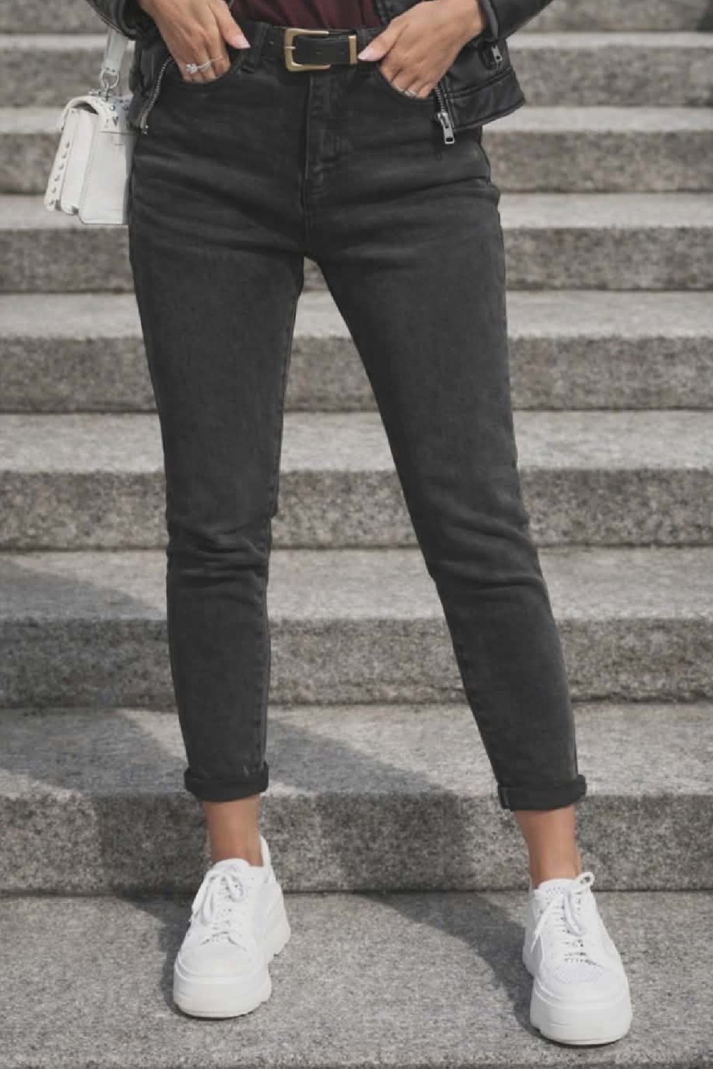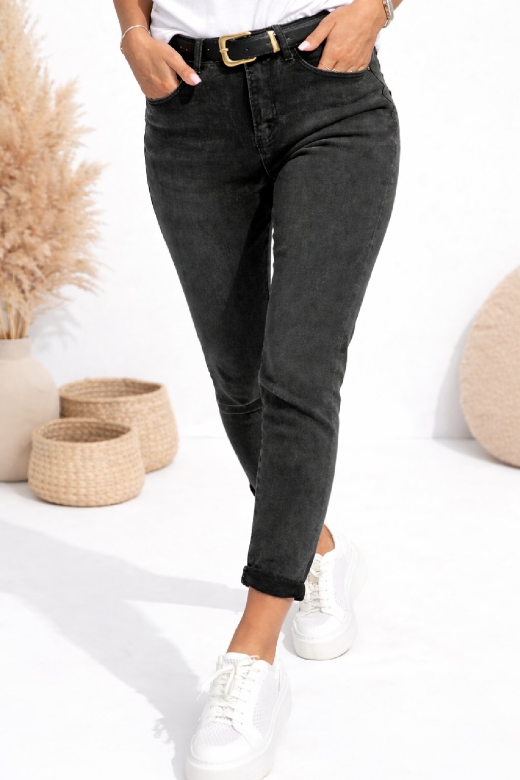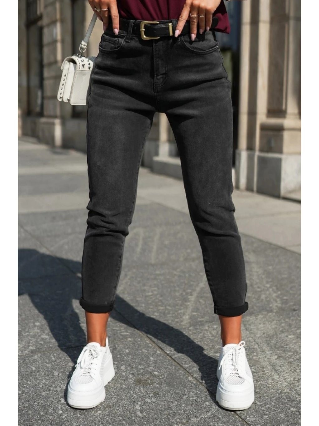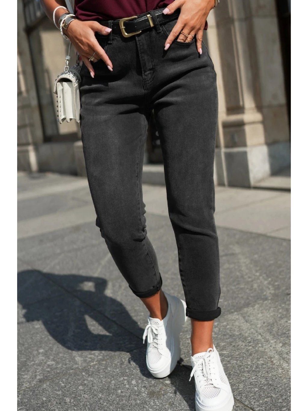 Luxusní džíny střihu mom fit v tmavě šedém provedení - místy šisované. V pase knoflík a zip. Přední a zadní kapsy. Součástí je i pásek, ale pozor je kratší - větší velikosti ho v pase nedopnou. Skvěle vypadají s ohrnutými nohavicemi. Vysoká kvalita a střih, který zaručeně sedne. Materiál je velice pružný. Vel. 2XL i 3XL focena na vel. 2XL/3XL (pas 110cm, boky 119cm), výška 165cm. Na vel. S focena menší velikost S.