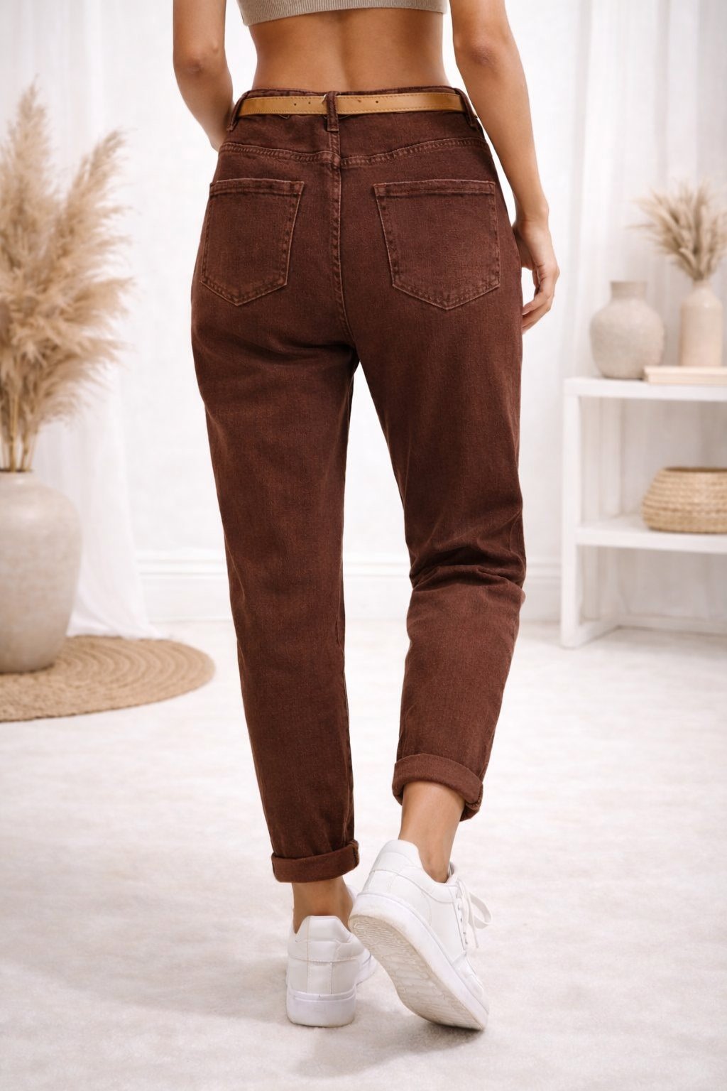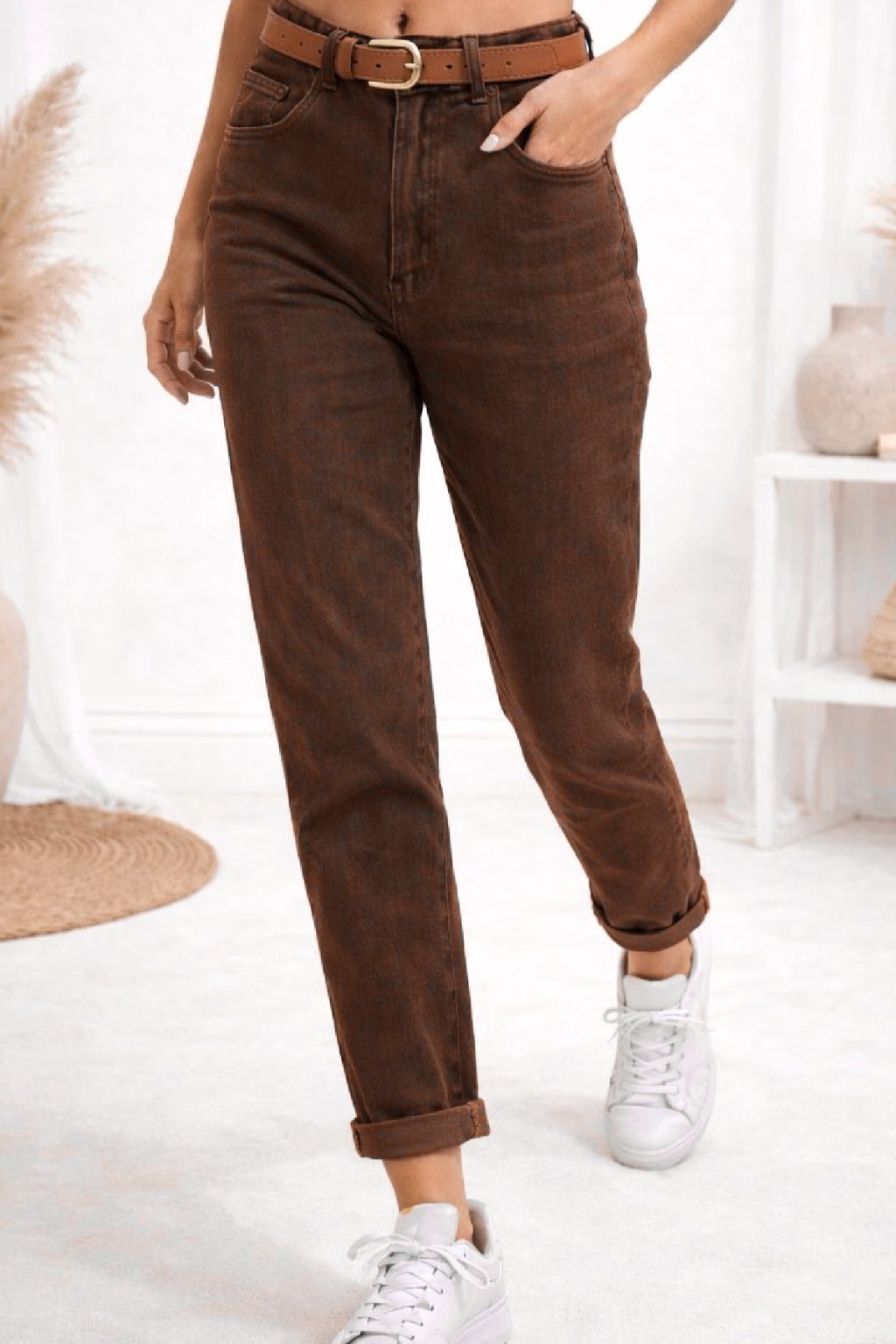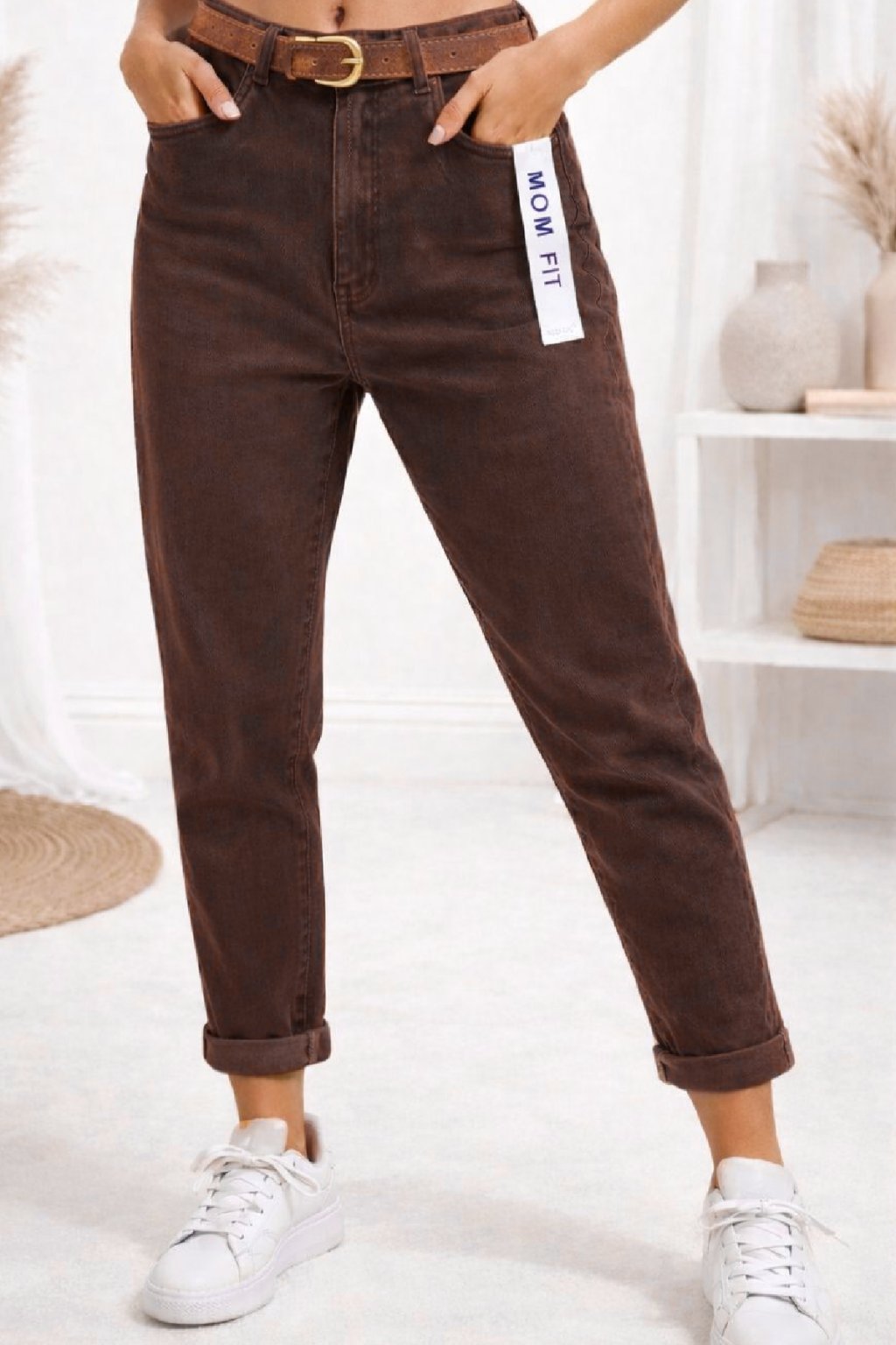 Luxusní džíny střihu mom fit v módní čokoládové barvě. V pase knoflík a zip. Přední a zadní kapsy. Součástí je i pásek, ale pozor je kratší - větší velikosti ho v pase nedopnou. Skvěle vypadají s ohrnutými nohavicemi. Vysoká kvalita a střih, který zaručeně sedne. Materiál je velice pružný, ale pozor v pase moc pružné nejsou - řiďte se mírami. Na vel. 2XL s boky 120cm sedí vel. 4XL.