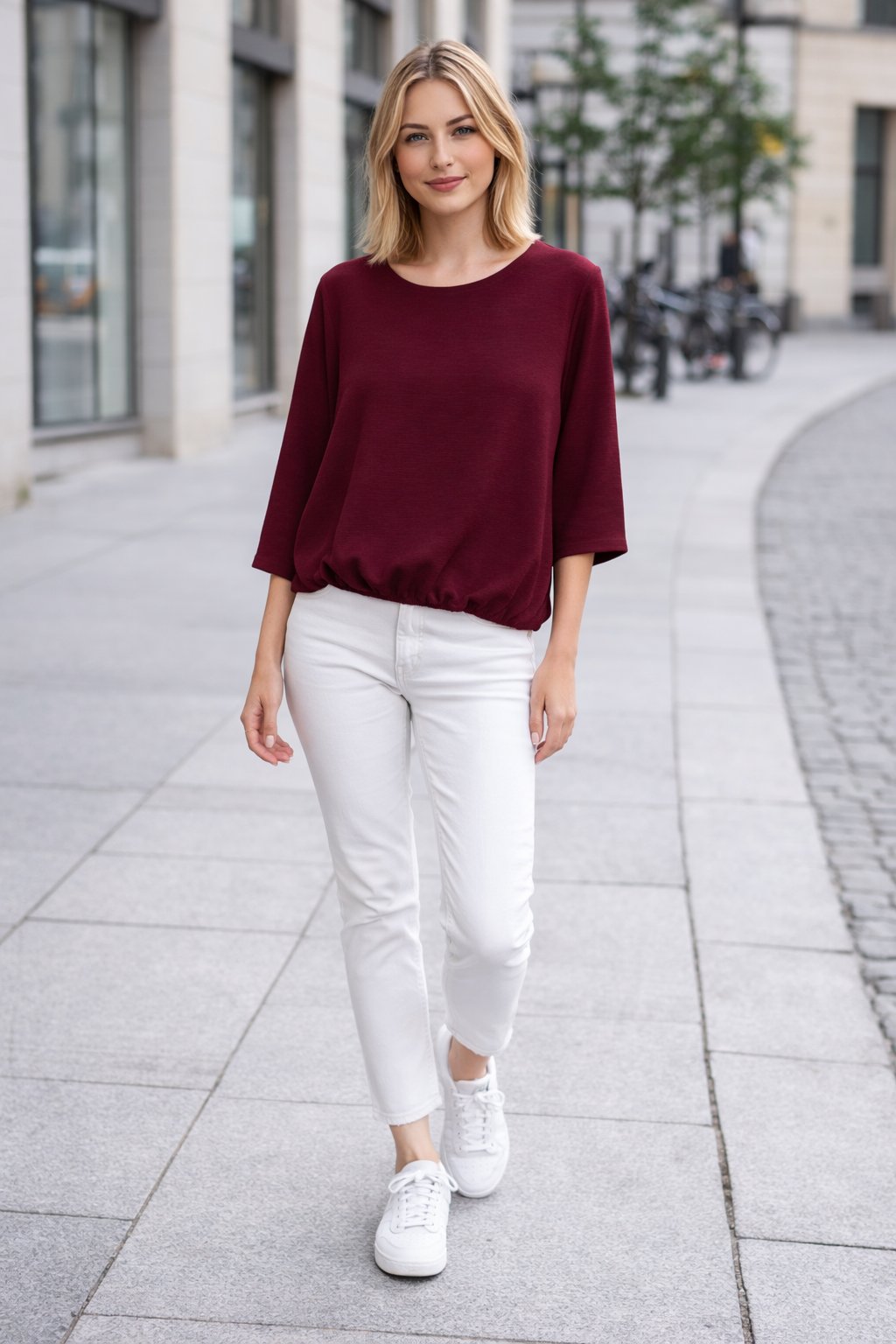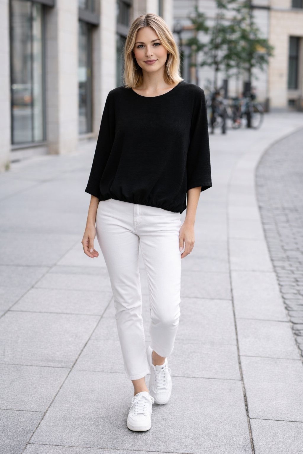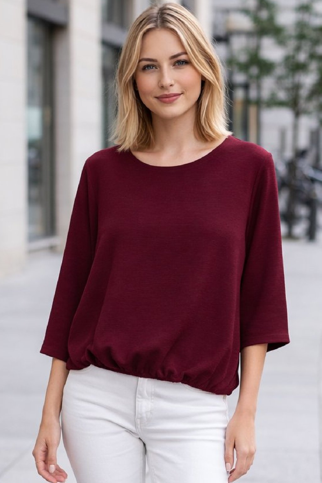 Halenka z velmi příjemného vzdušného materiálu. Ve spodní části je ukončena gumkou. Rukávy jsou 3/4 volné, bez gumky. Díky nařasení tak dokáže skrýt i případné nedostatky v okolí bříška. Top kousek vhodný i k slavnostnější příležitosti. Foceno na vel. XS i na vel. 2XL