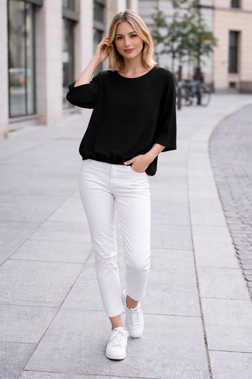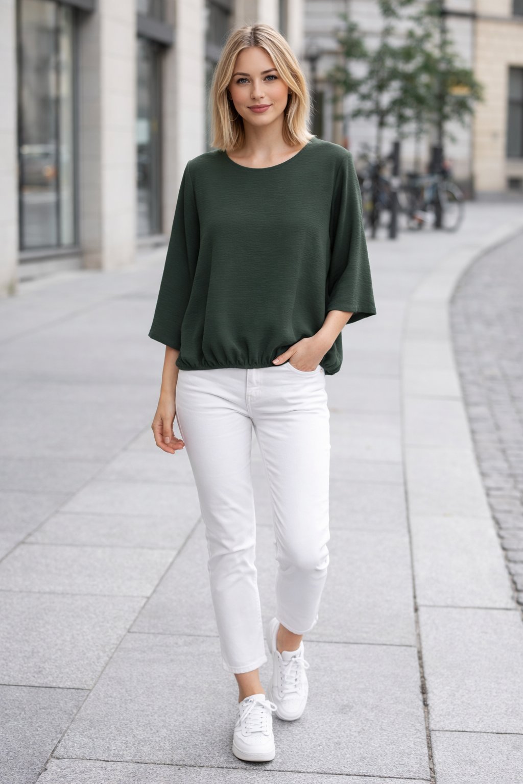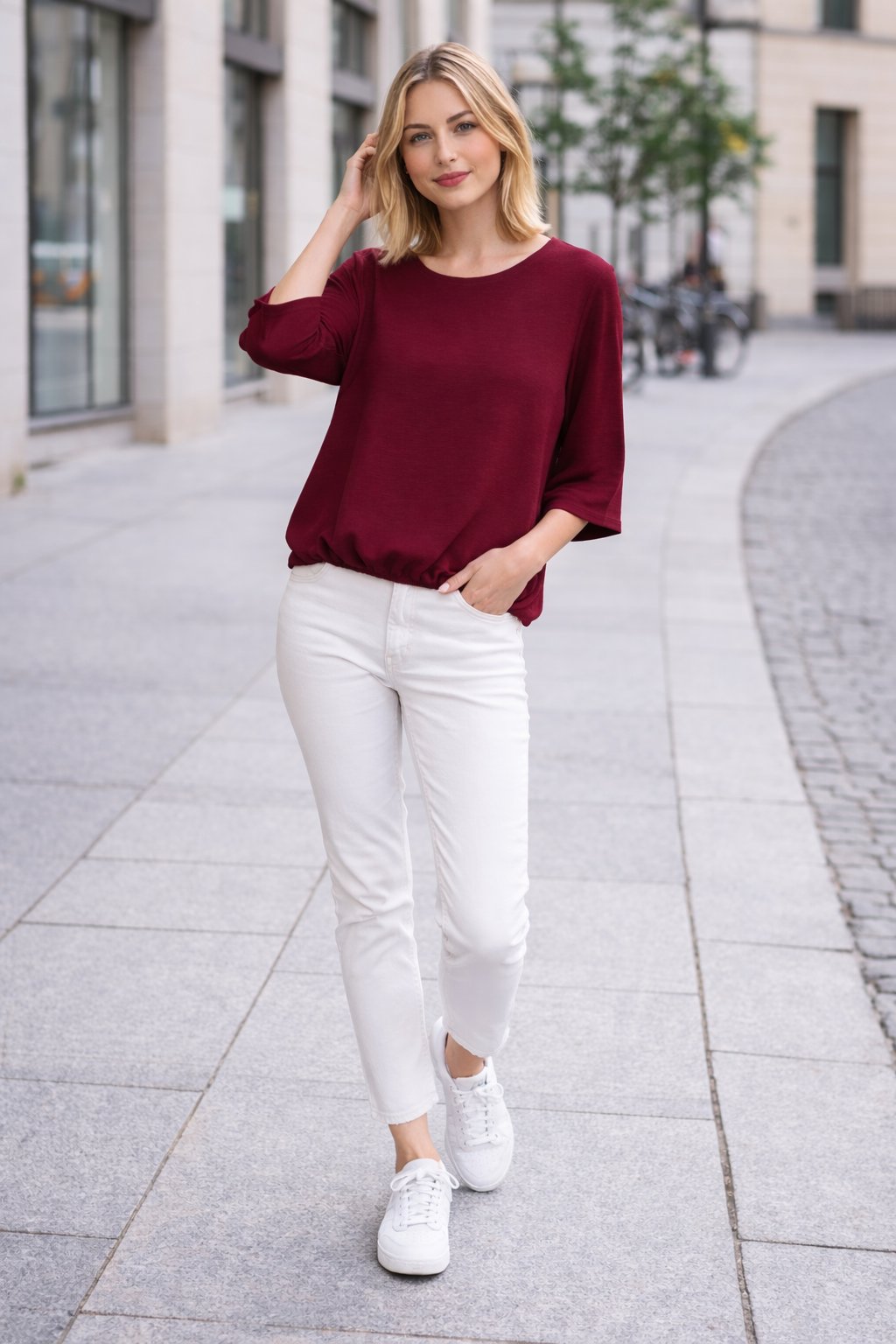 Halenka z velmi příjemného vzdušného materiálu. Ve spodní části je ukončena gumkou. Rukávy jsou 3/4 volné, bez gumky. Díky nařasení tak dokáže skrýt i případné nedostatky v okolí bříška. Top kousek vhodný i k slavnostnější příležitosti. Foceno na vel. XS i na vel. 2XL
