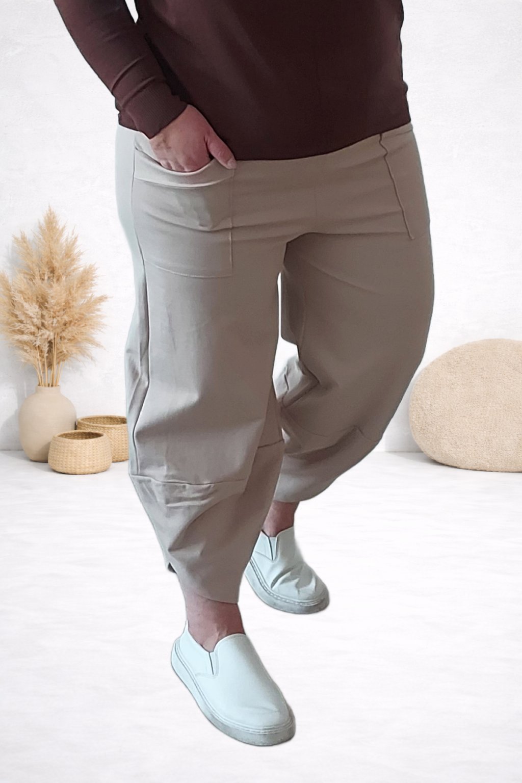 Kalhoty s širokými balonovými nohavice v pase guma