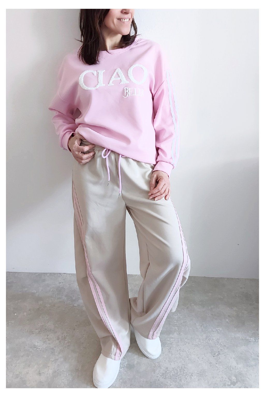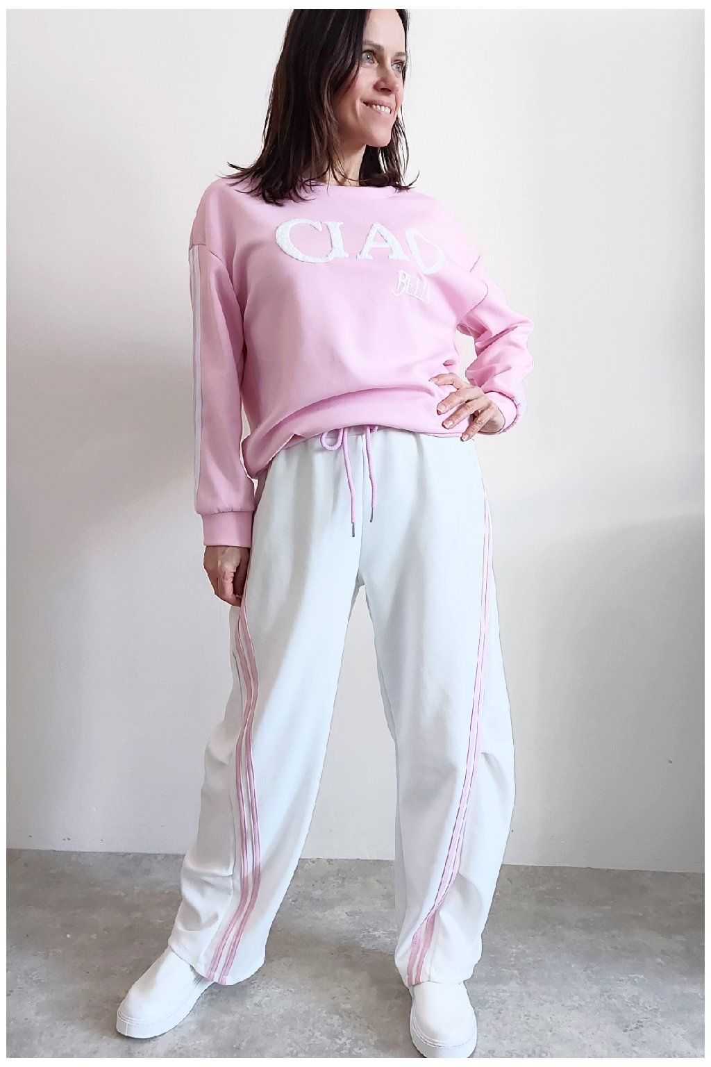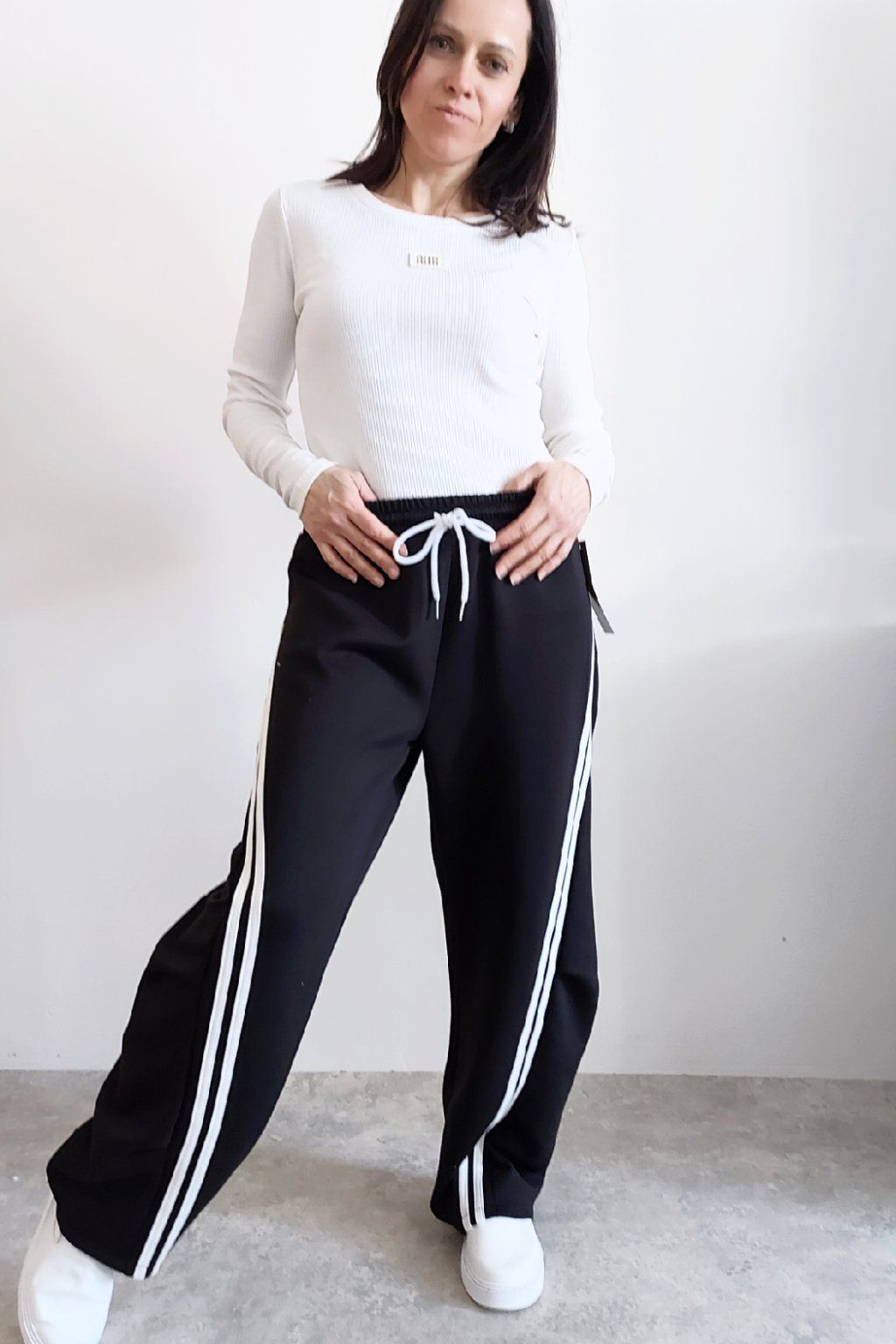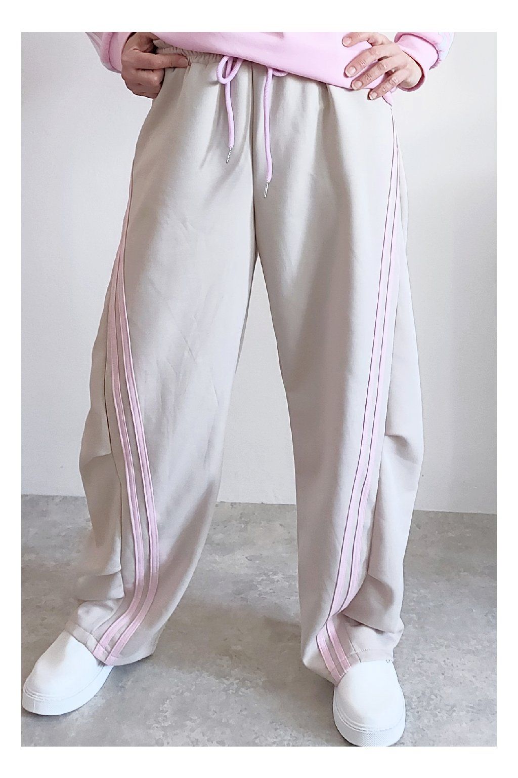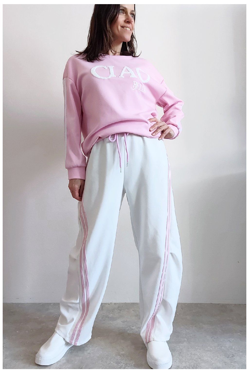 Volnočasové teplákové kalhoty balonového střihu. Jsou po stranách zdobené lampasy. Nohavice mají ve spodní části vždy 2 záševky z každé strany a díky nim drží nohavice ten správný tvar. V pase guma a šňůrka pro stažení obvodu. Boční kapsy, vzadu bez kapes. Materiál máslový - jemný, hebký, silnější, drží tvar, top kvalita. Foceno na vel. XS, výška 156cm.