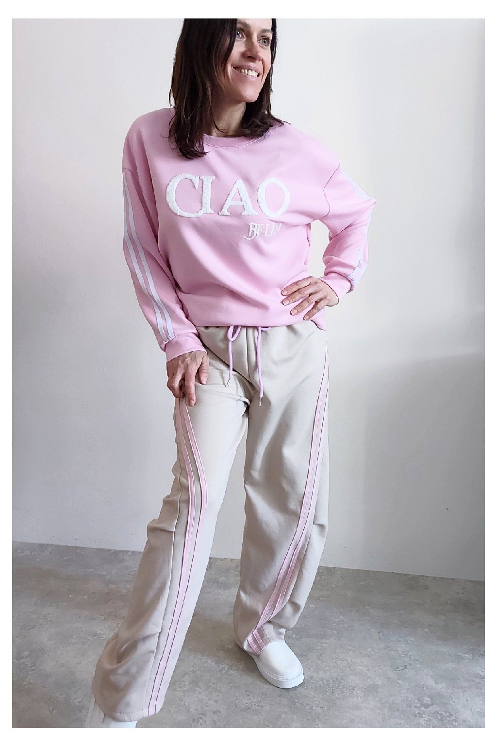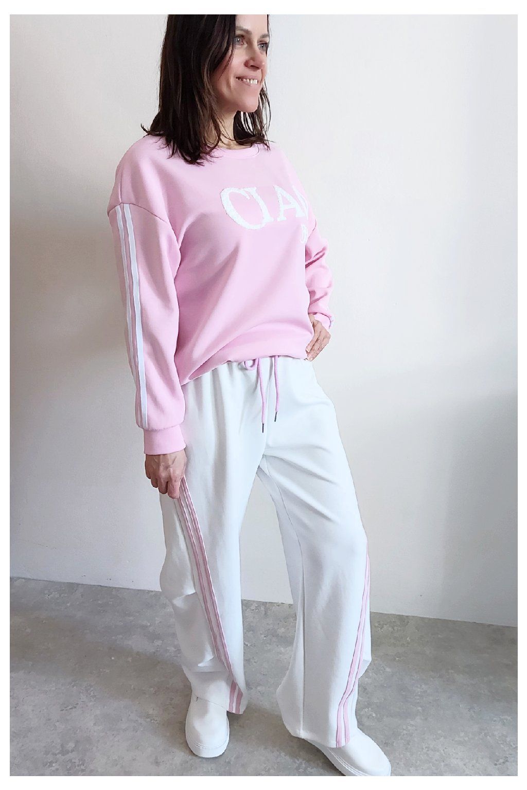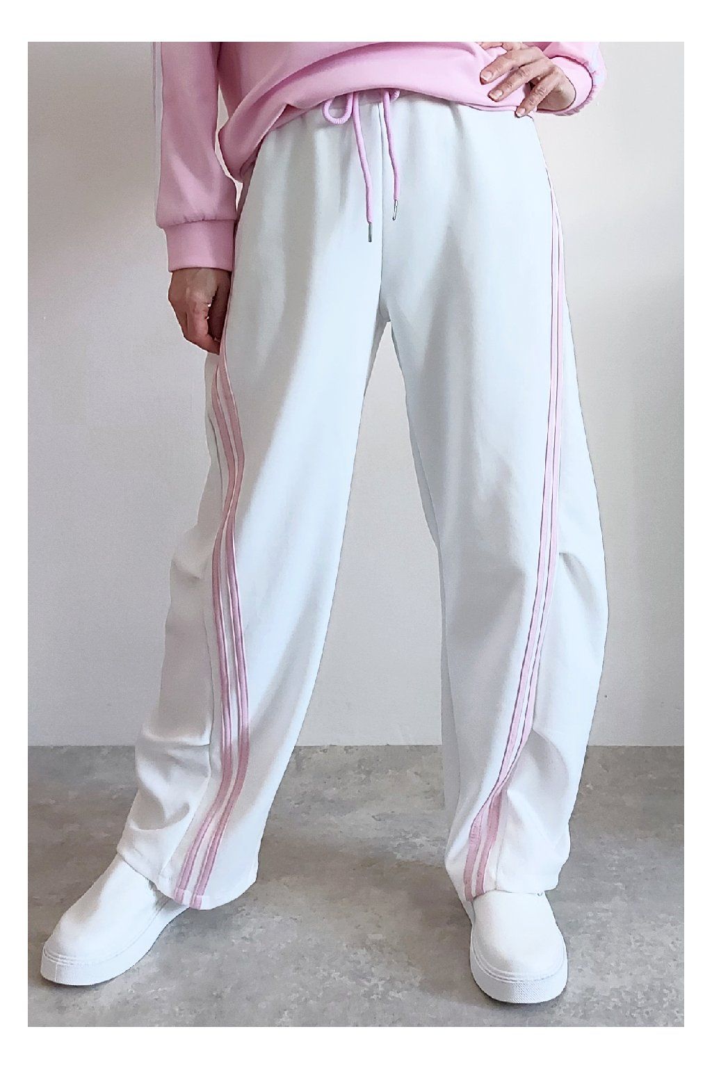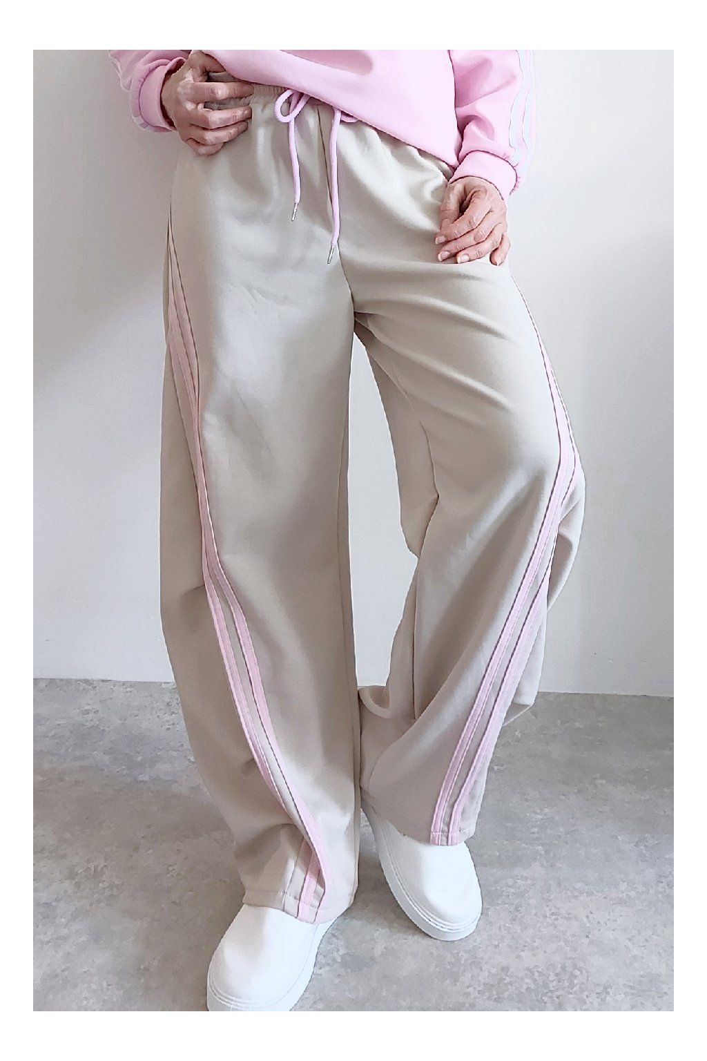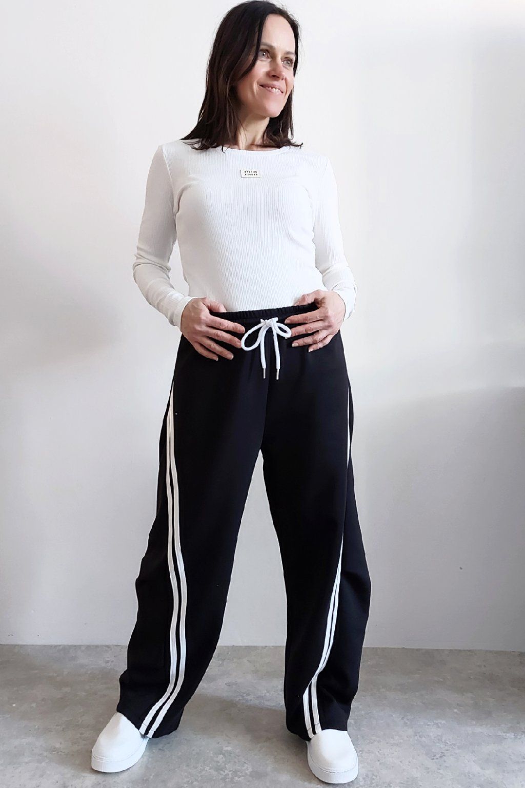 Volnočasové teplákové kalhoty balonového střihu. Jsou po stranách zdobené lampasy. Nohavice mají ve spodní části vždy 2 záševky z každé strany a díky nim drží nohavice ten správný tvar. V pase guma a šňůrka pro stažení obvodu. Boční kapsy, vzadu bez kapes. Materiál máslový - jemný, hebký, silnější, drží tvar, top kvalita. Foceno na vel. XS, výška 156cm.