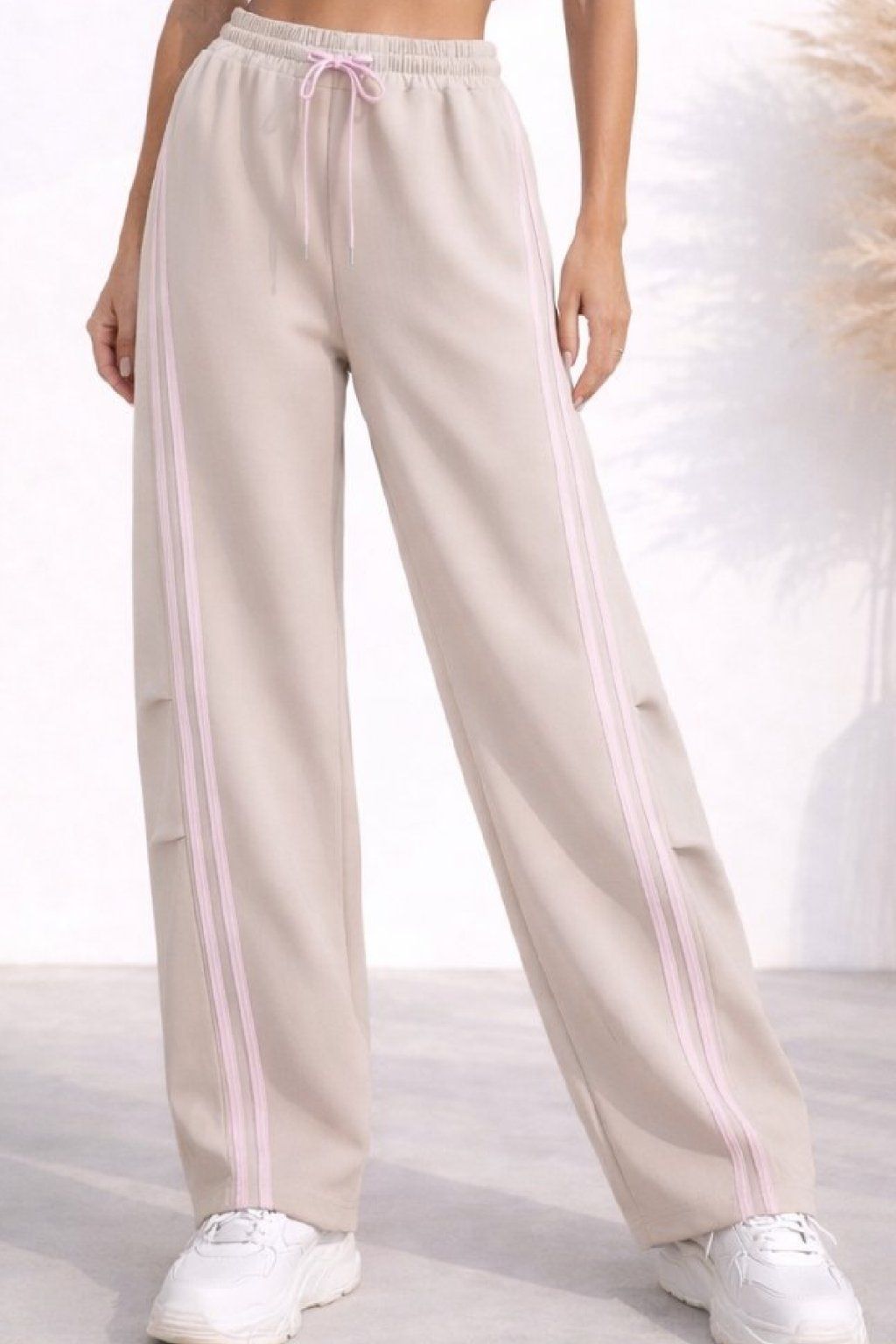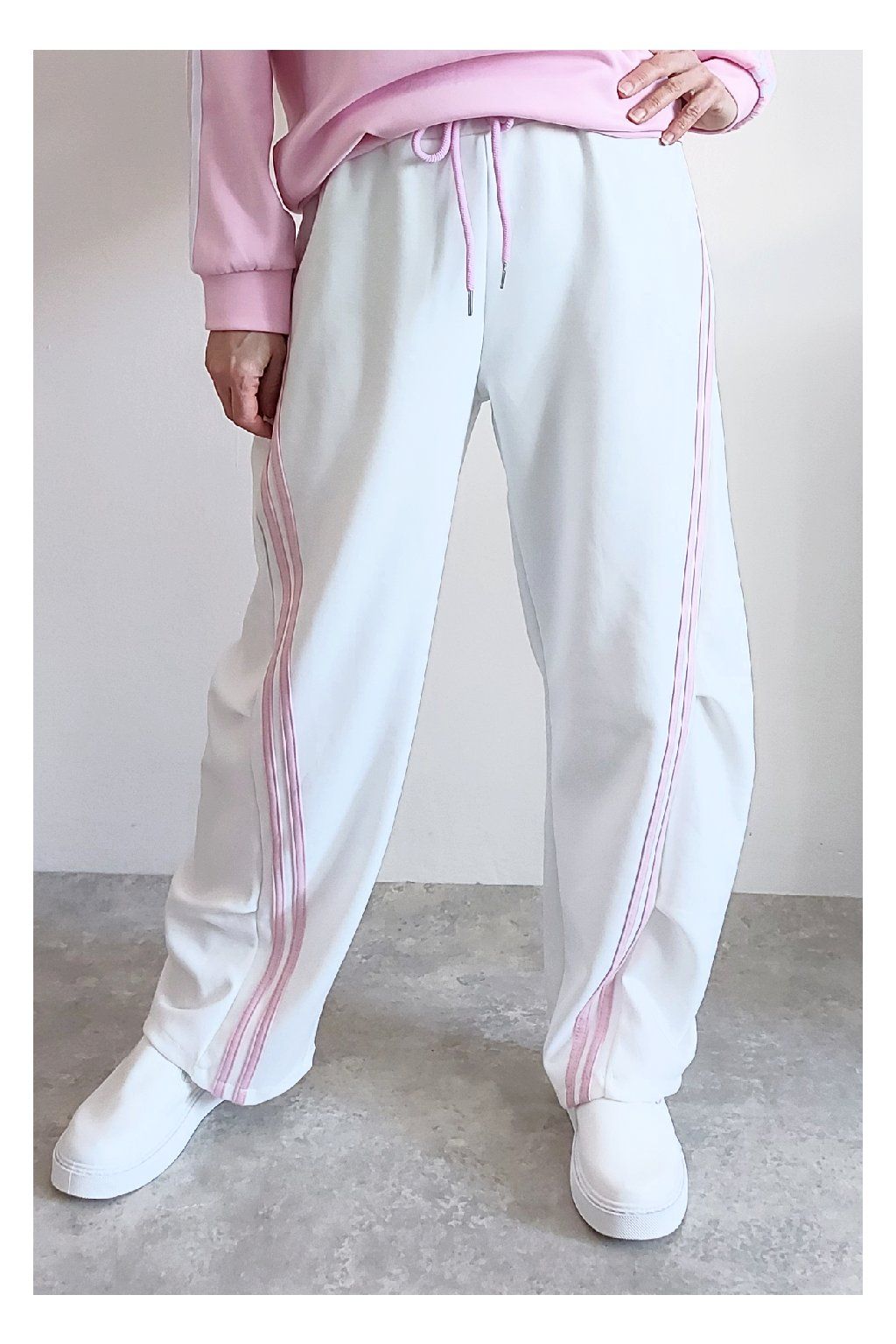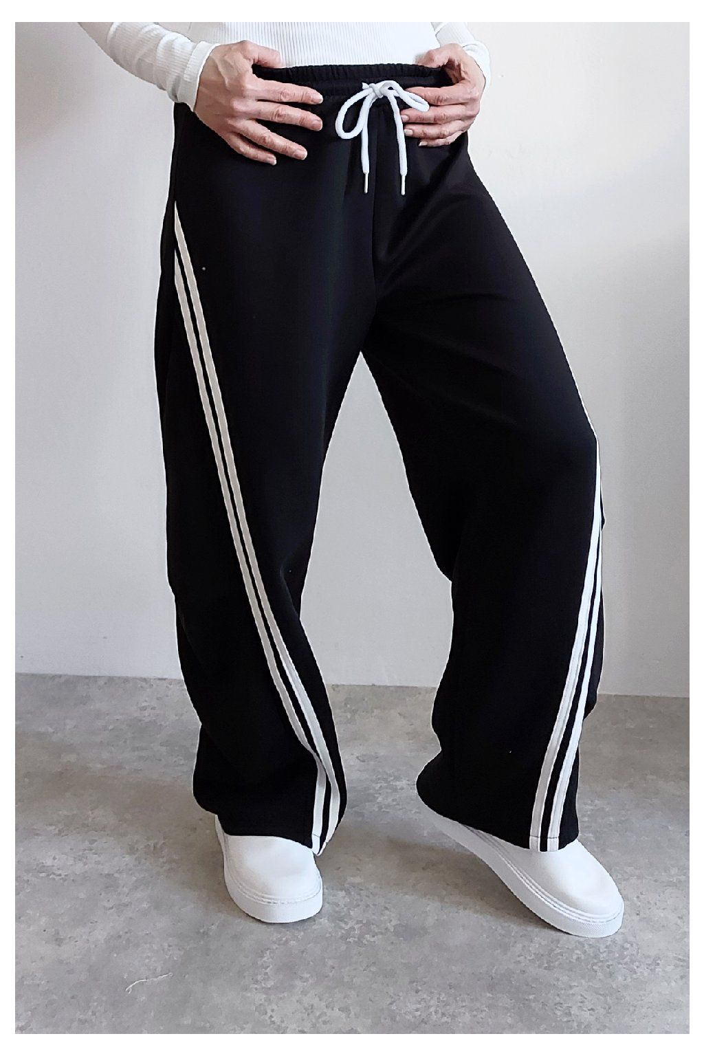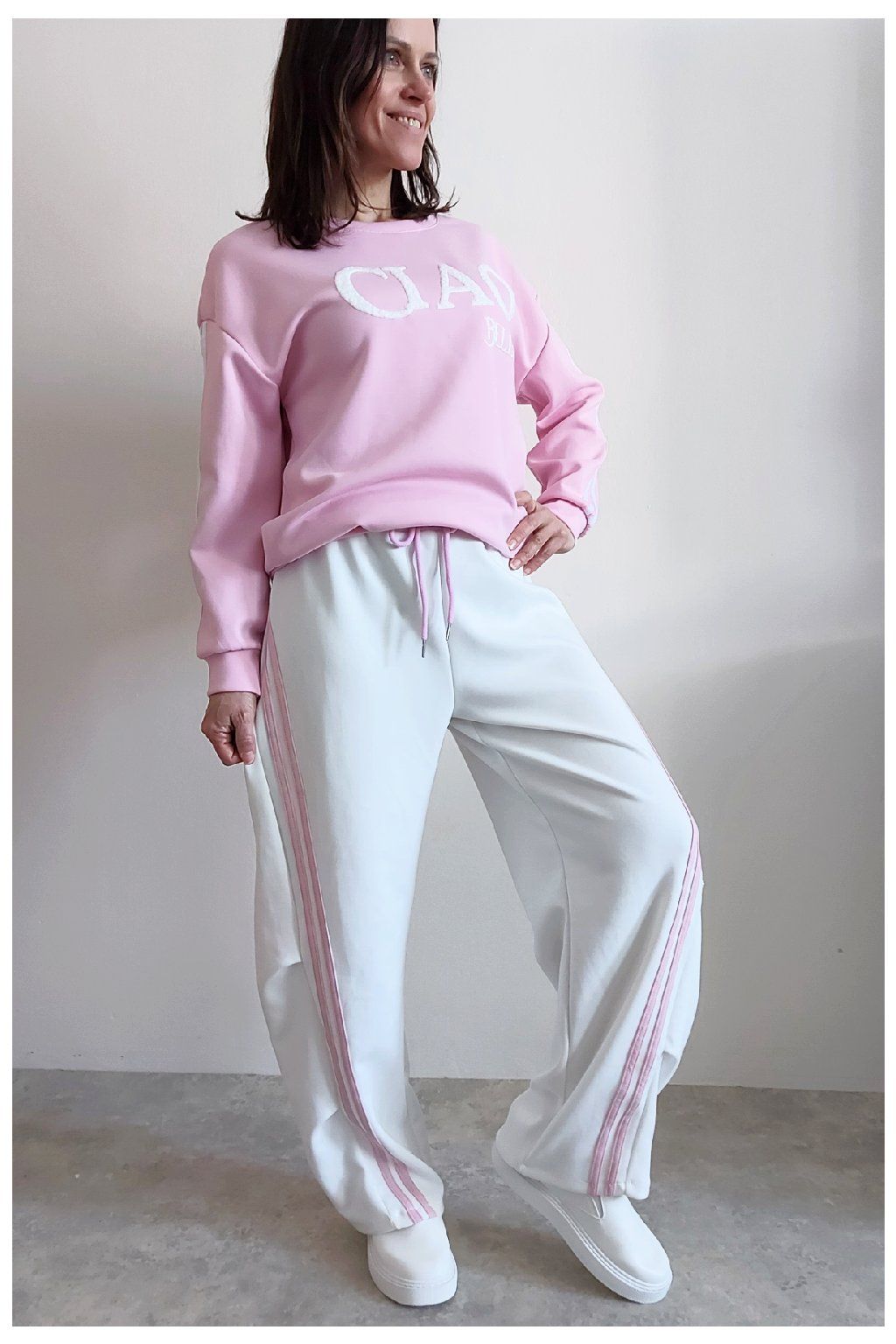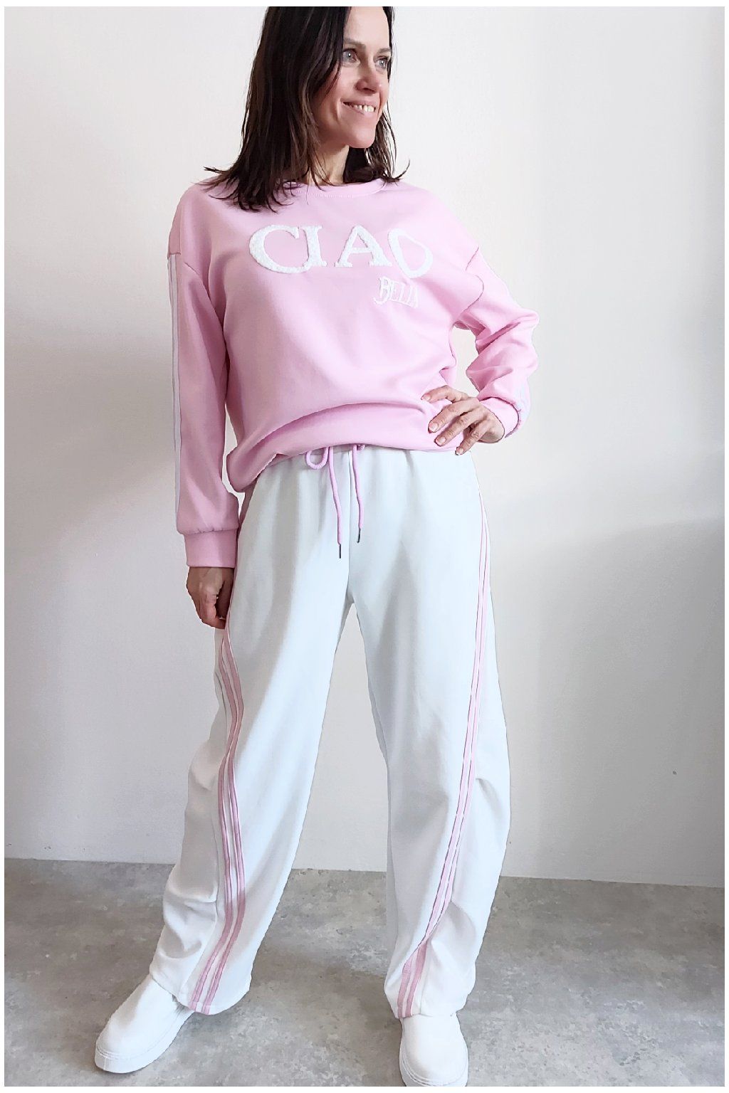 Volnočasové teplákové kalhoty balonového střihu. Jsou po stranách zdobené lampasy. Nohavice mají ve spodní části vždy 2 záševky z každé strany a díky nim drží nohavice ten správný tvar. V pase guma a šňůrka pro stažení obvodu. Boční kapsy, vzadu bez kapes. Materiál máslový - jemný, hebký, silnější, drží tvar, top kvalita. Foceno na vel. XS, výška 156cm.
