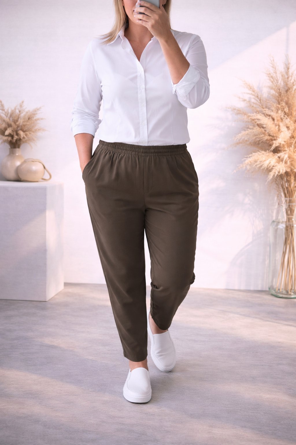 Kalhoty s nohavicemi balónovitého střihu v pase do gumy