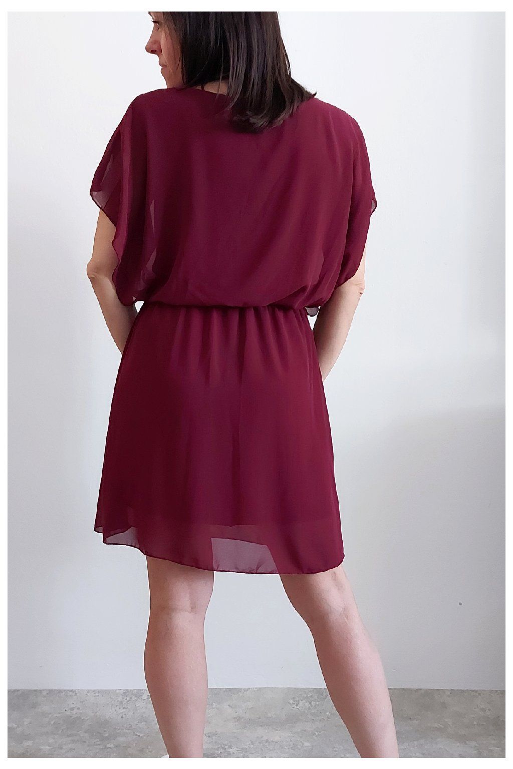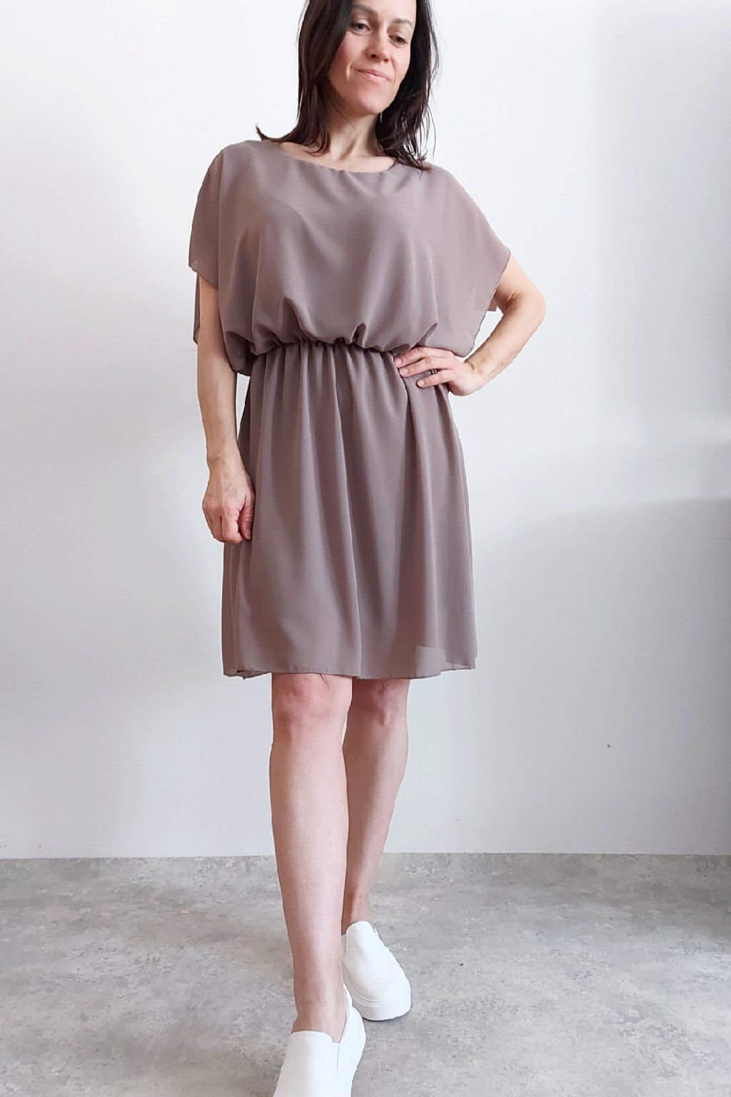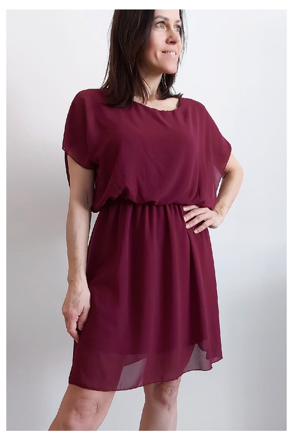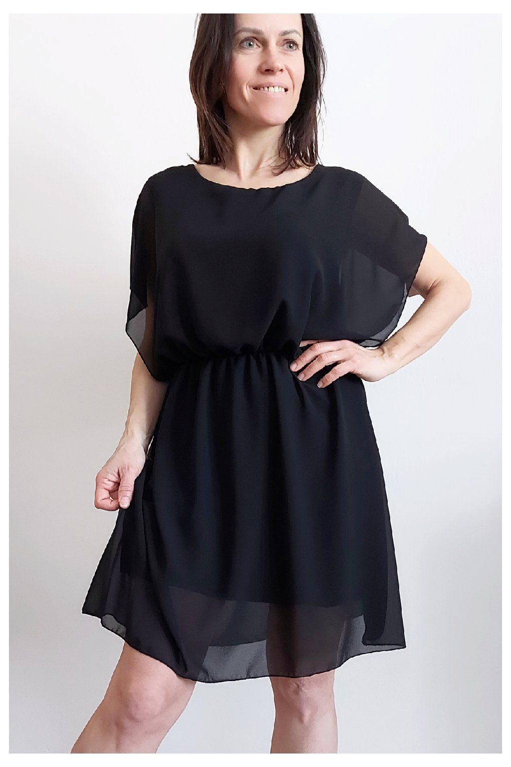 Letní šaty v pase s gumkou, která se přizpůsobí obvodu. Podšívka z viskózy, nejsou tedy průhledné. Bez kapes, oblékání přes hlavu. Materiál lehoučký, vzdušný. Foceno na vel. XS, výška 156cm.