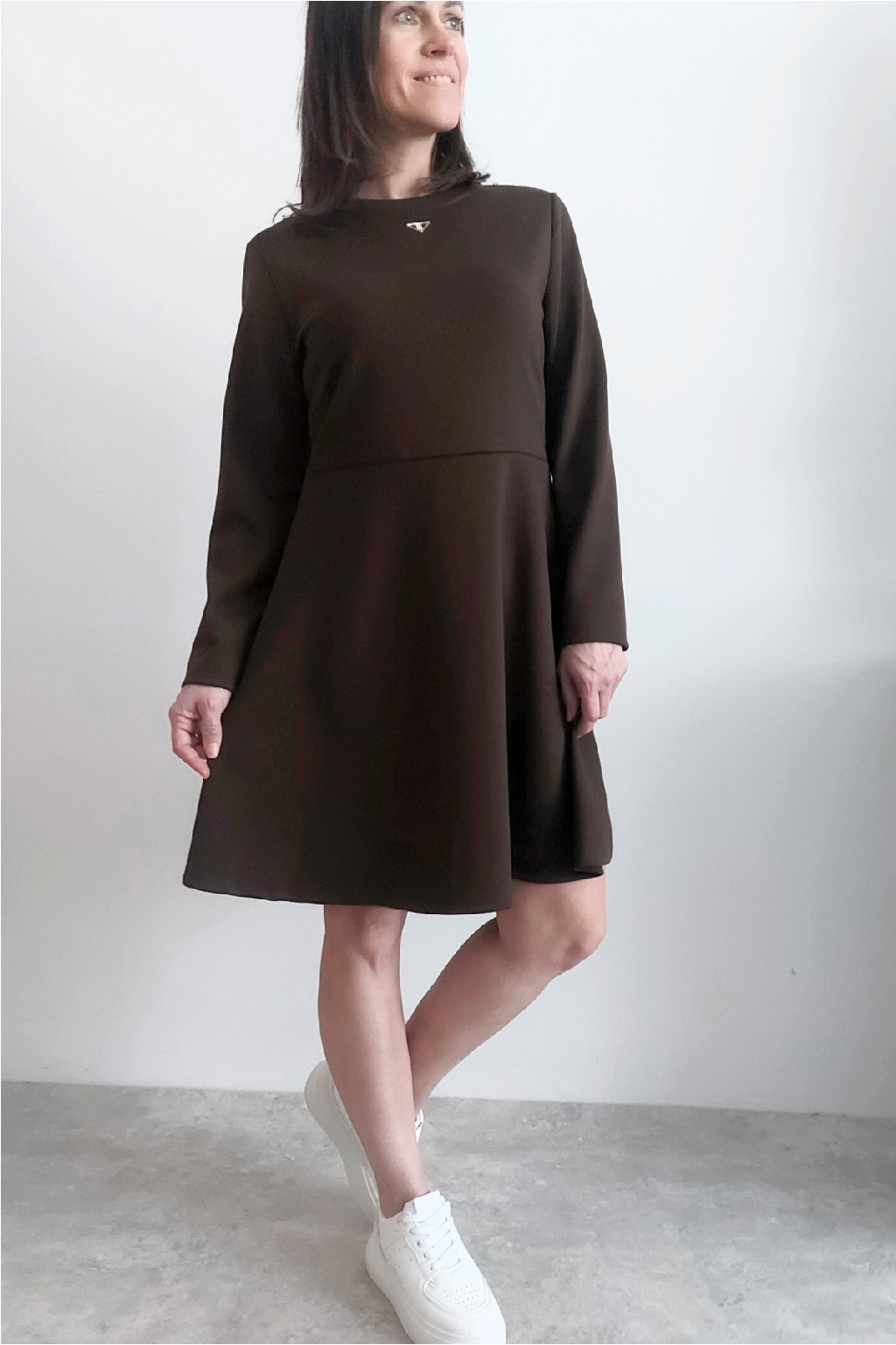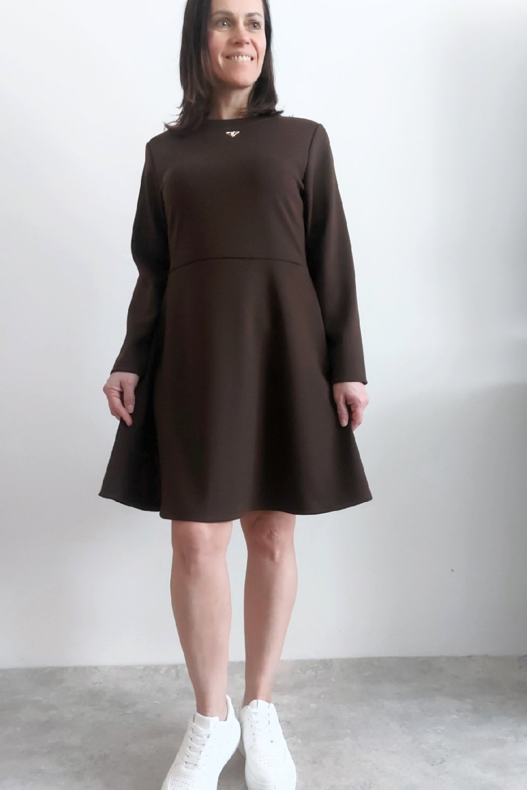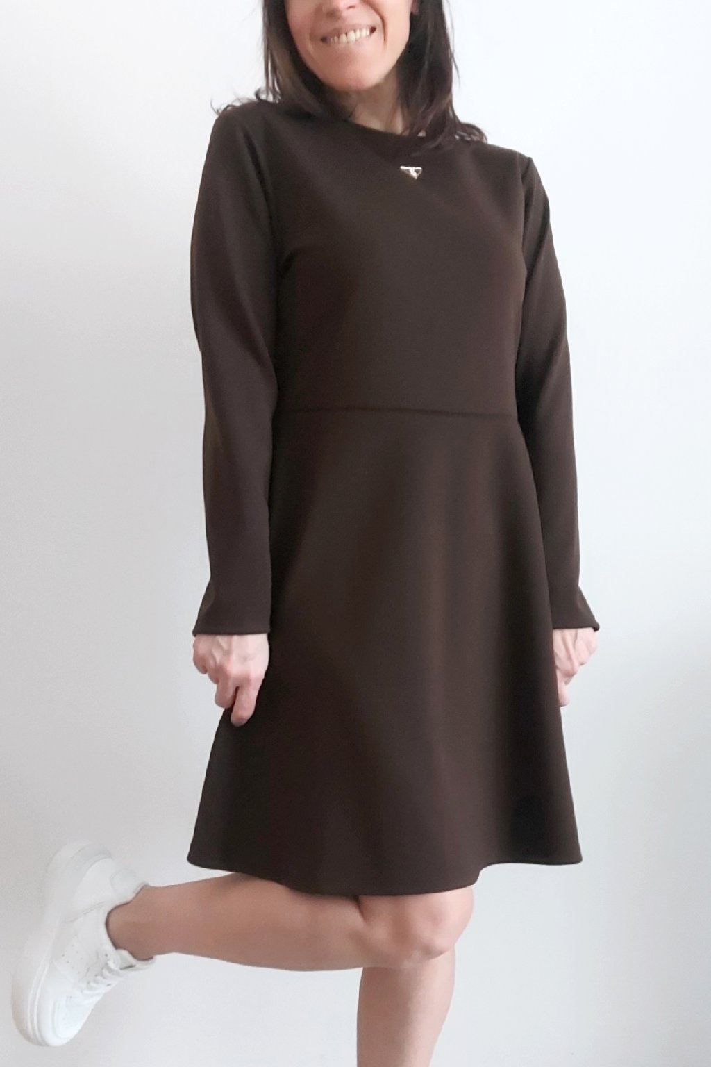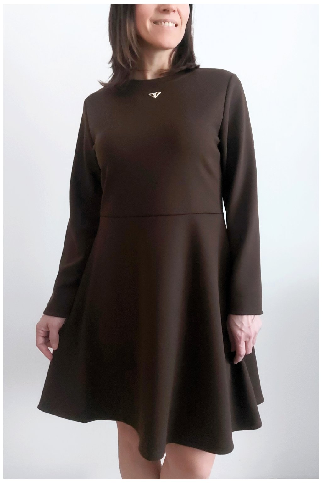 Parádní šaty bez kapes. Vpředu menší ozdůbka zdobená kamínky. Bez kapes - oblékání přes hlavu. Rukávy jsou 7/8. V pase střižené - sukně je kolová. Materiál prémiový máslový - hebký, jemný, drží tvar, hodně elastický. Foceno na vel. XS, výška 156cm.