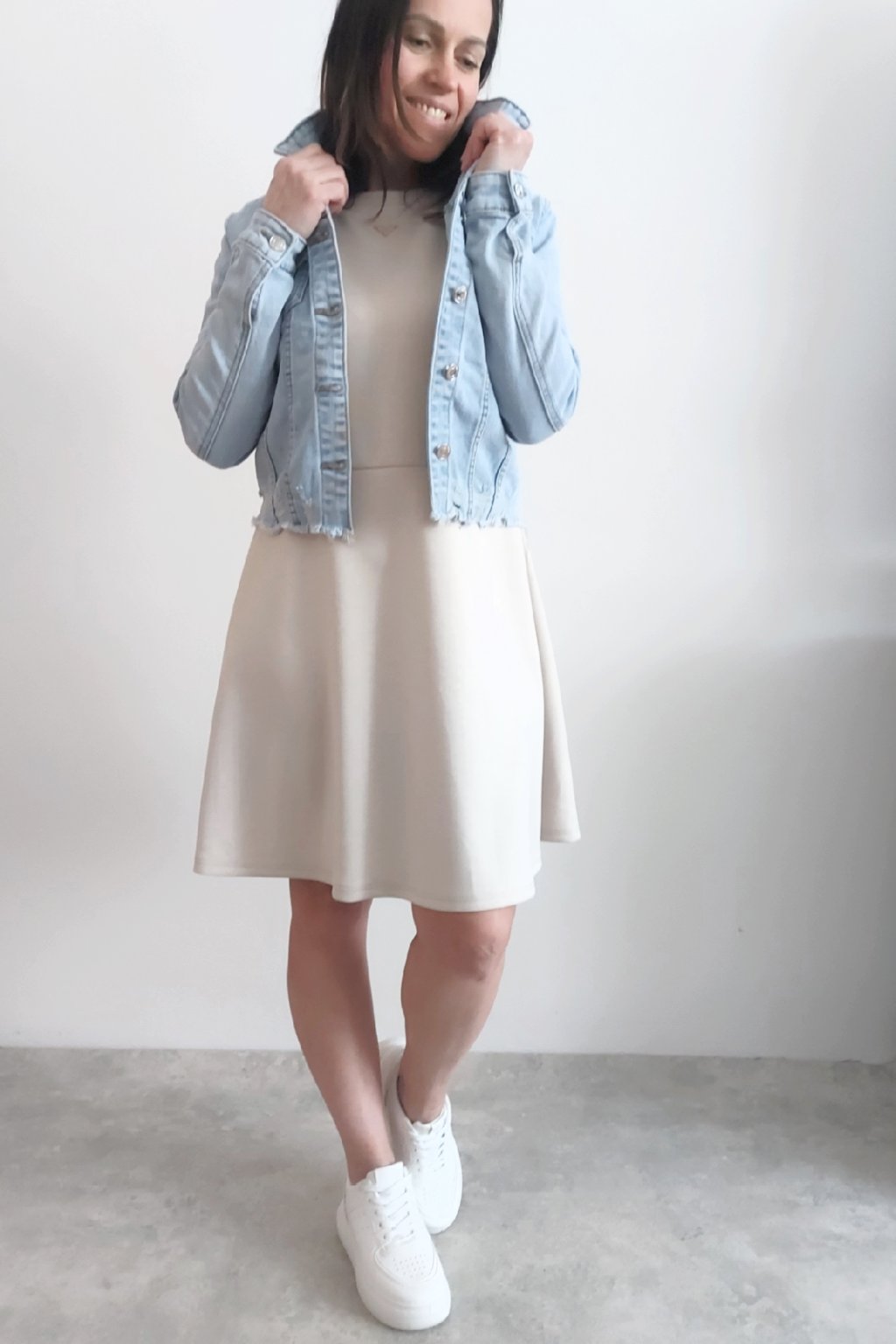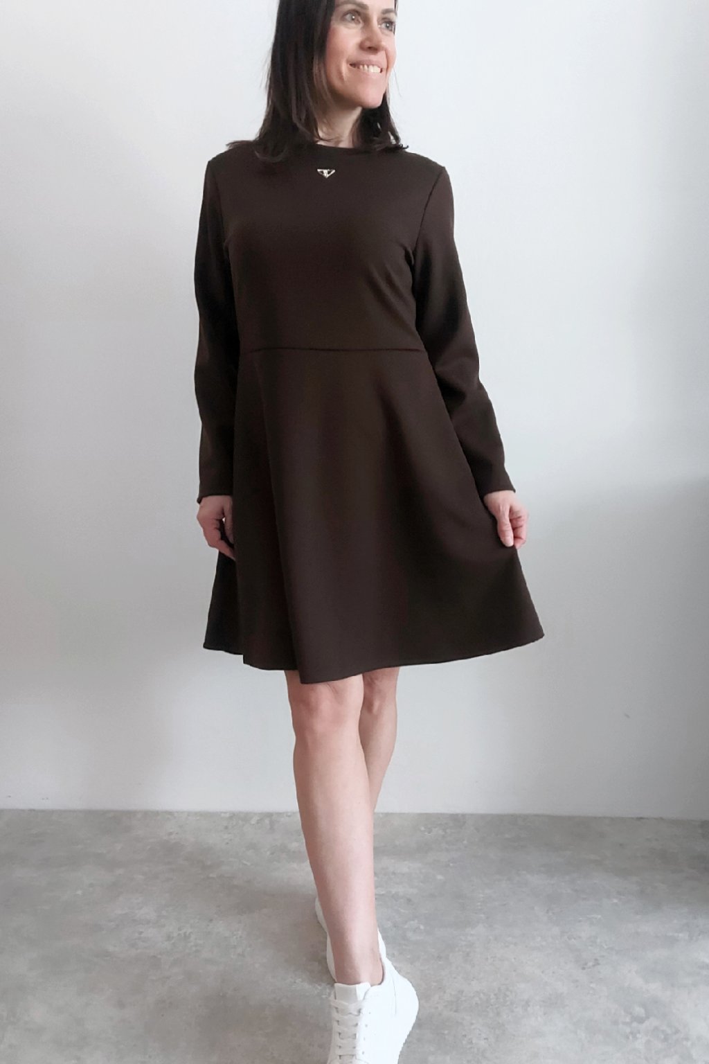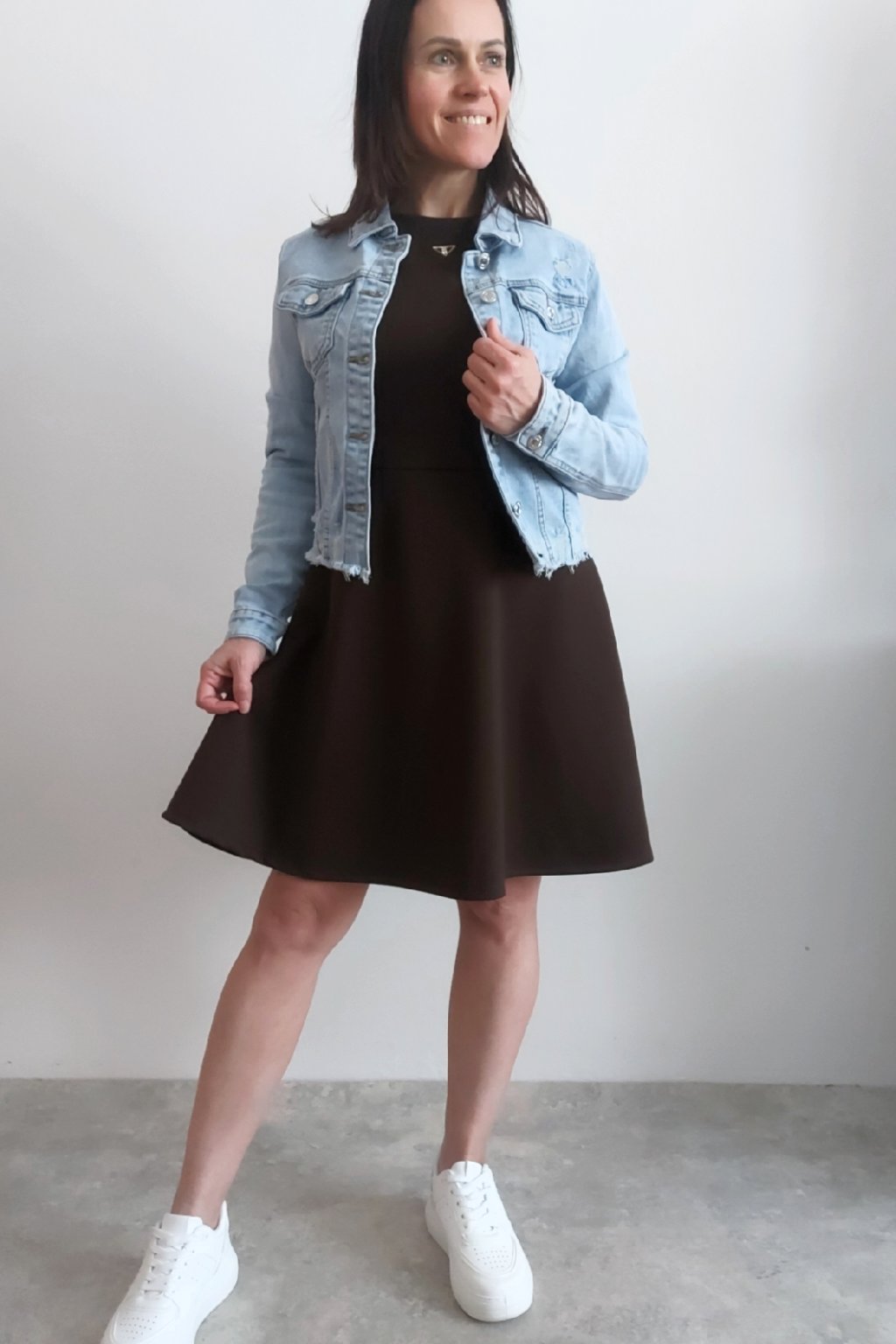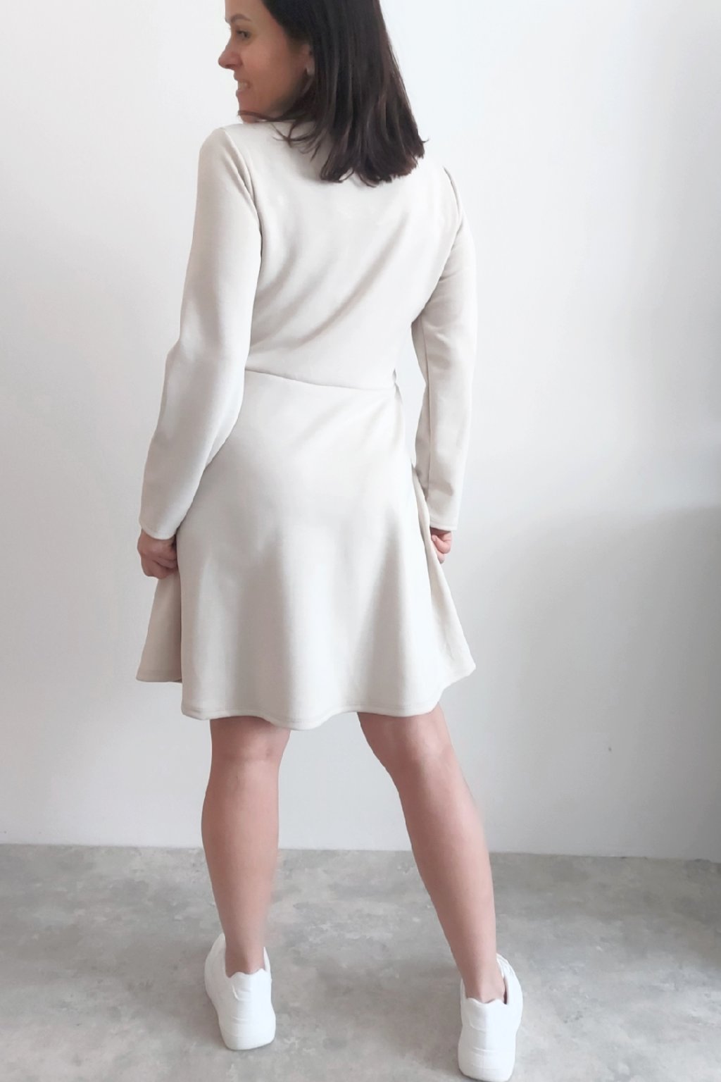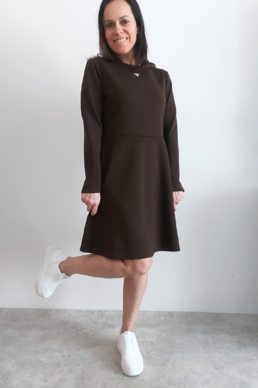 Parádní šaty bez kapes. Vpředu menší ozdůbka zdobená kamínky. Bez kapes - oblékání přes hlavu. Rukávy jsou 7/8. V pase střižené - sukně je kolová. Materiál prémiový máslový - hebký, jemný, drží tvar, hodně elastický. Foceno na vel. XS, výška 156cm.