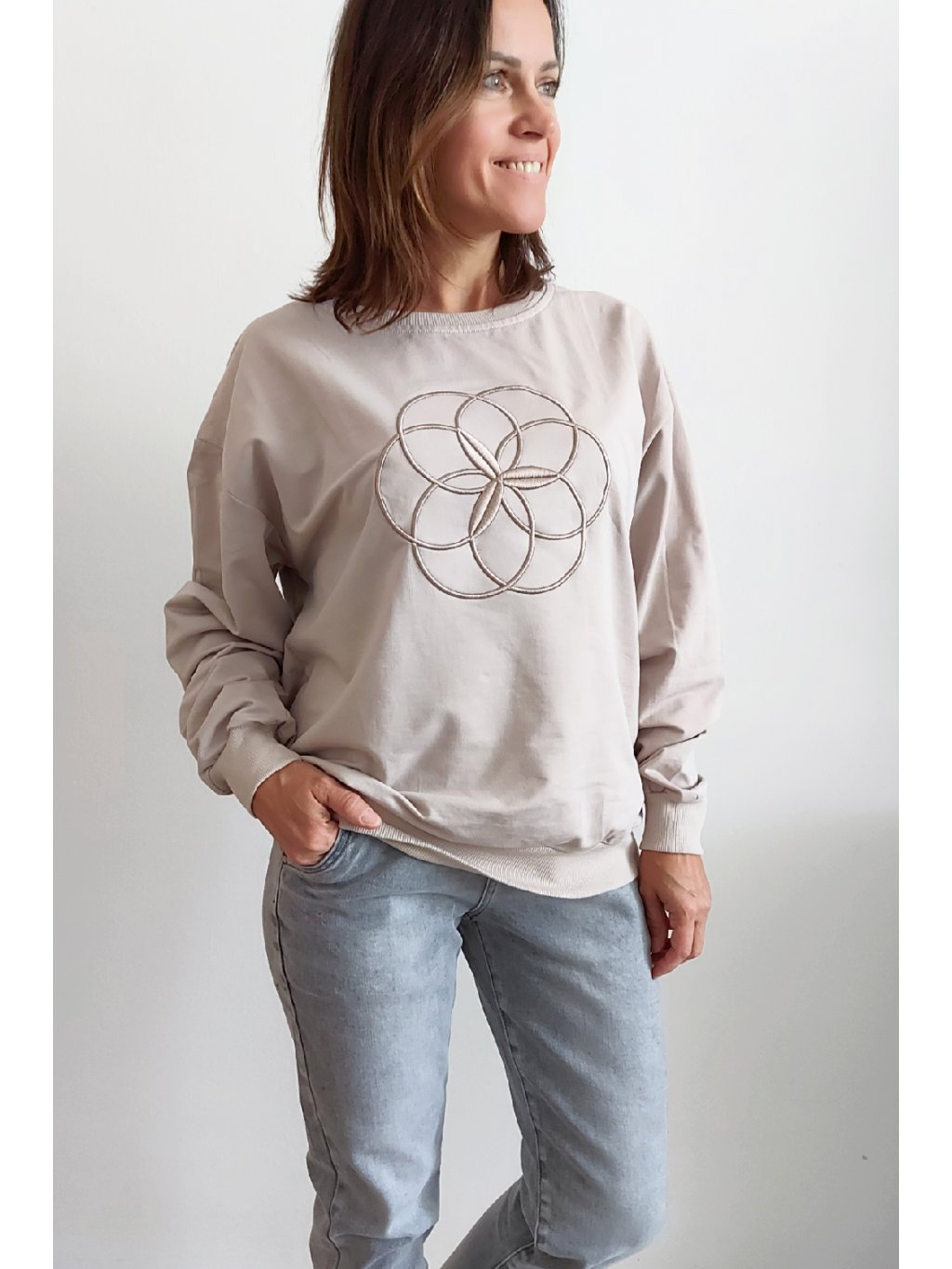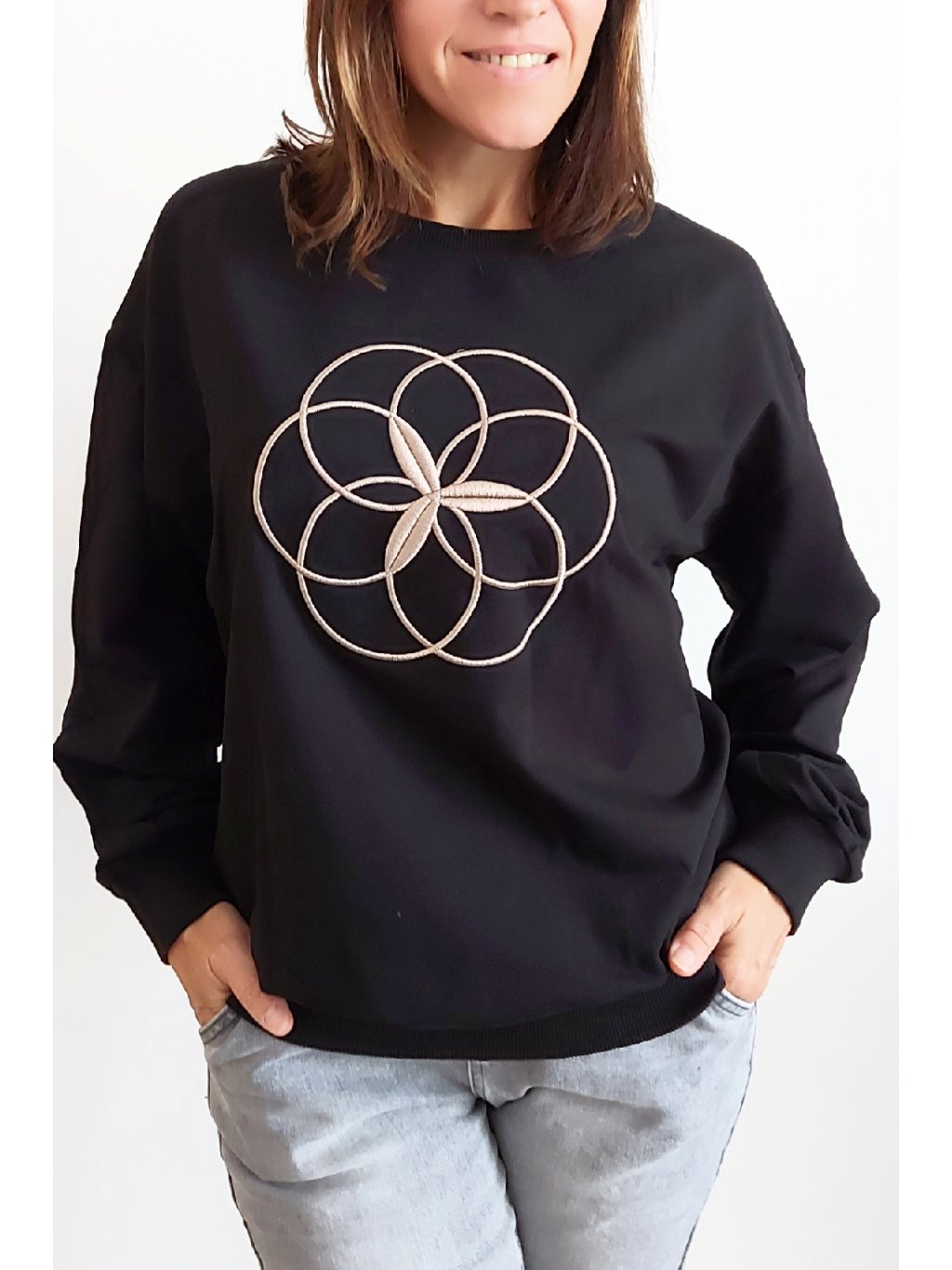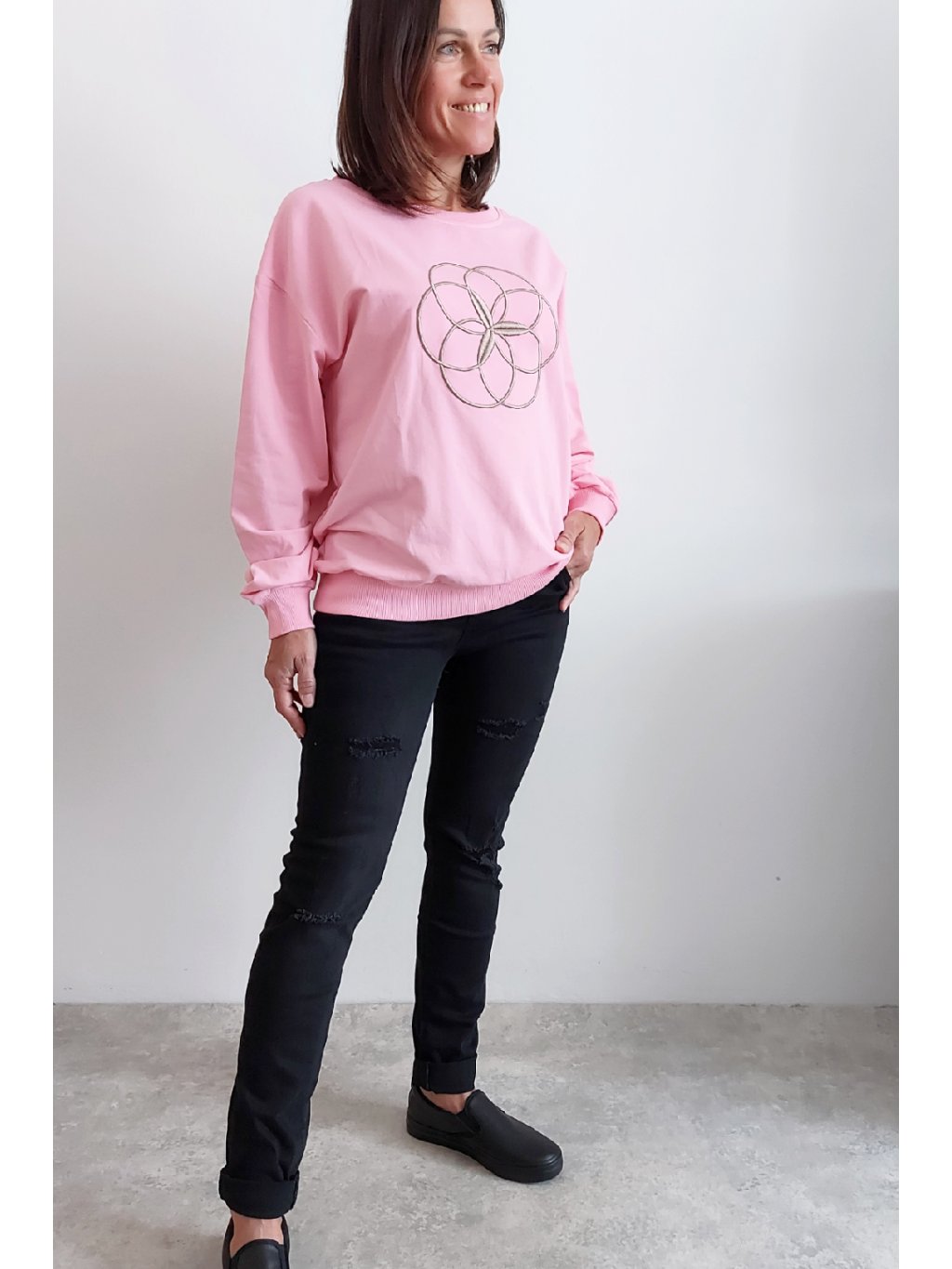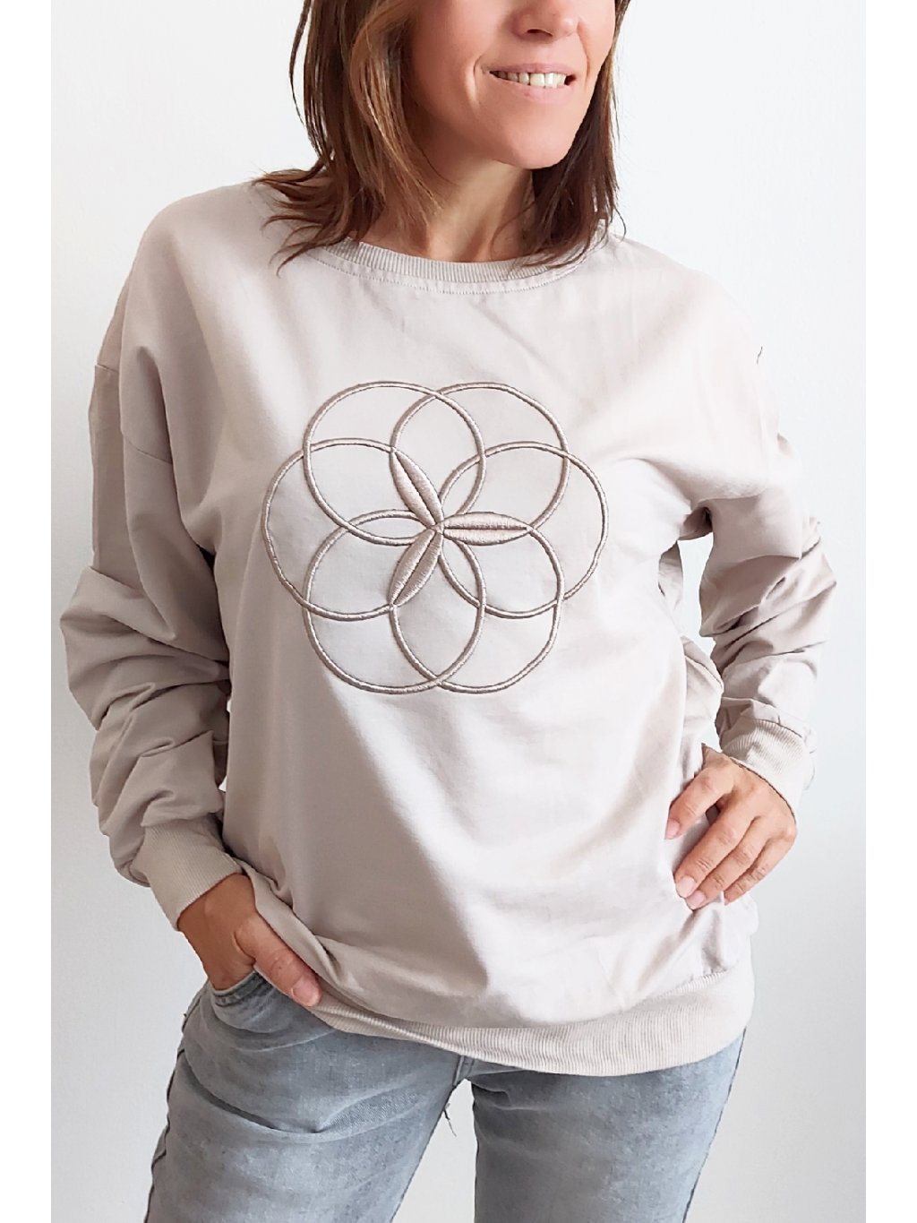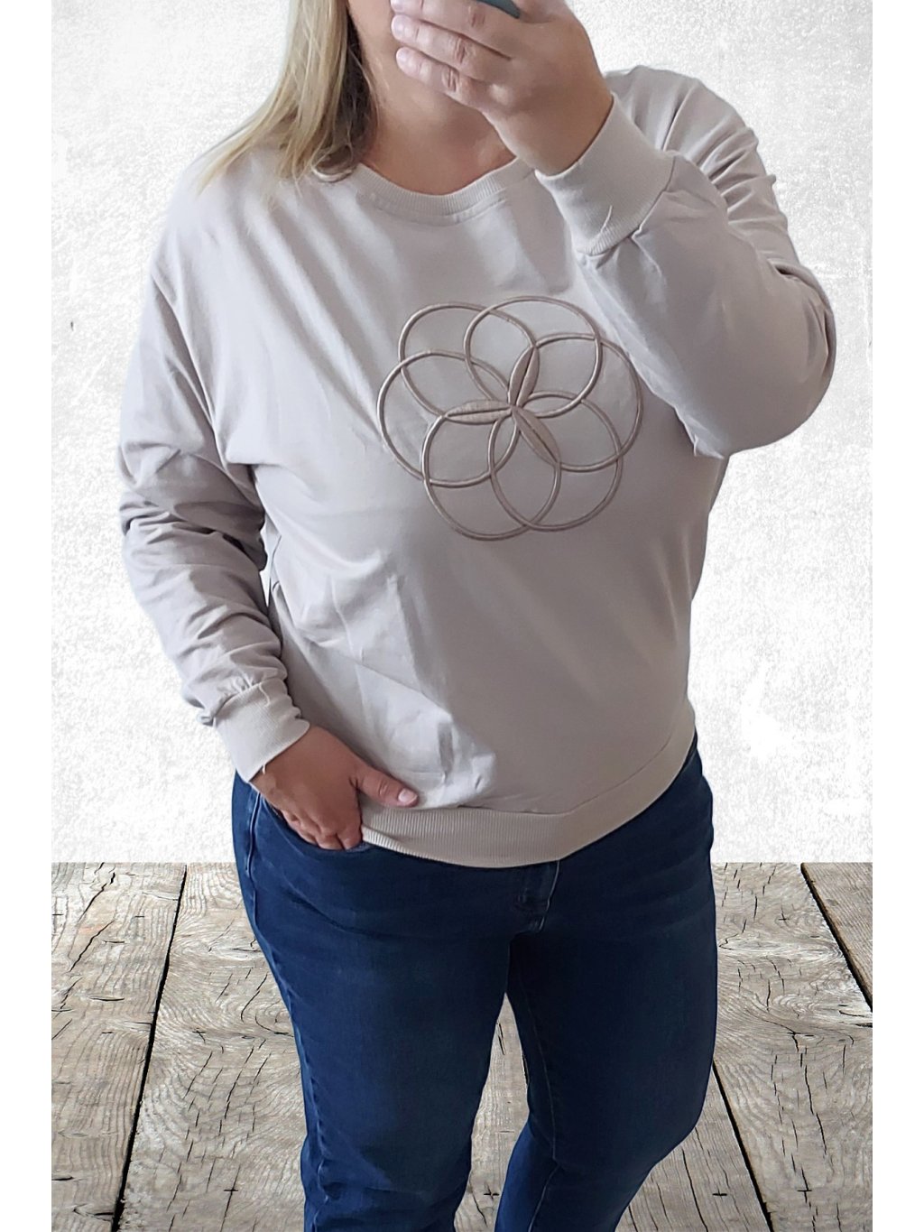 Mikina přes hlavu s výšivkou v přední části. Rukávy dlouhé ukončené úpletem. Spodní lem také zakončen úpletem. Materiál prémiový, kvalitní - bavlna vyšší gramáže. Foceno na vel. XS, výška 156cm i na vel. 2XL (prsa 116cm, boky 120cm), výška 165cm.