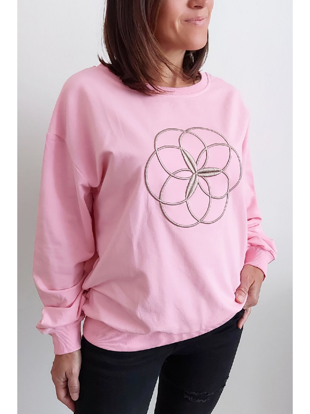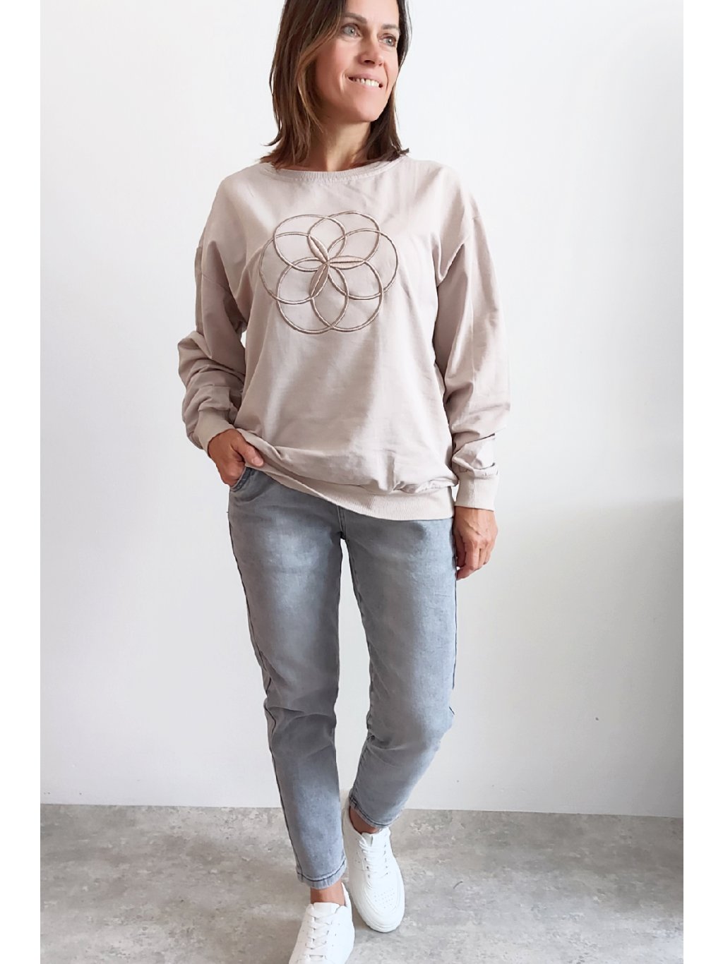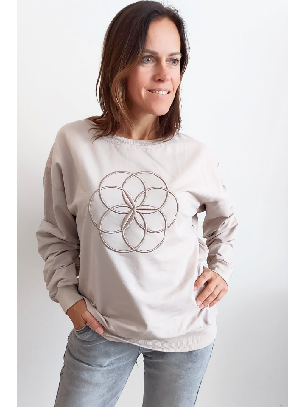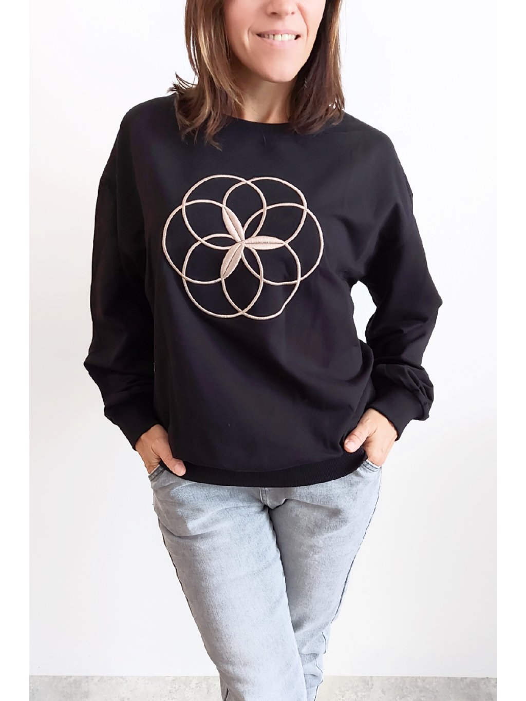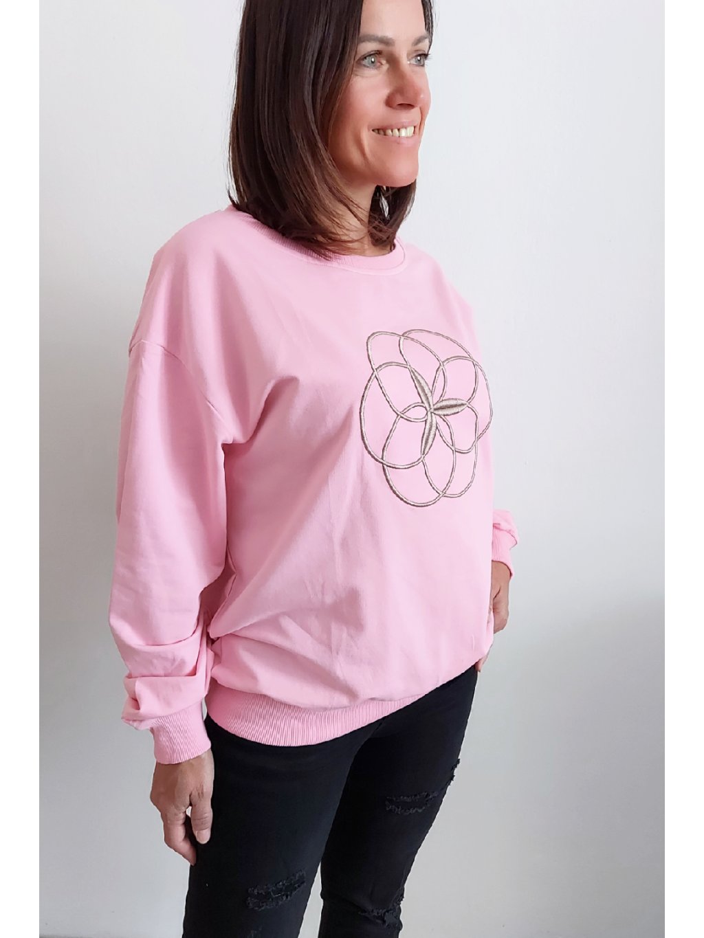 Mikina přes hlavu s výšivkou v přední části. Rukávy dlouhé ukončené úpletem. Spodní lem také zakončen úpletem. Materiál prémiový, kvalitní - bavlna vyšší gramáže. Foceno na vel. XS, výška 156cm i na vel. 2XL (prsa 116cm, boky 120cm), výška 165cm.