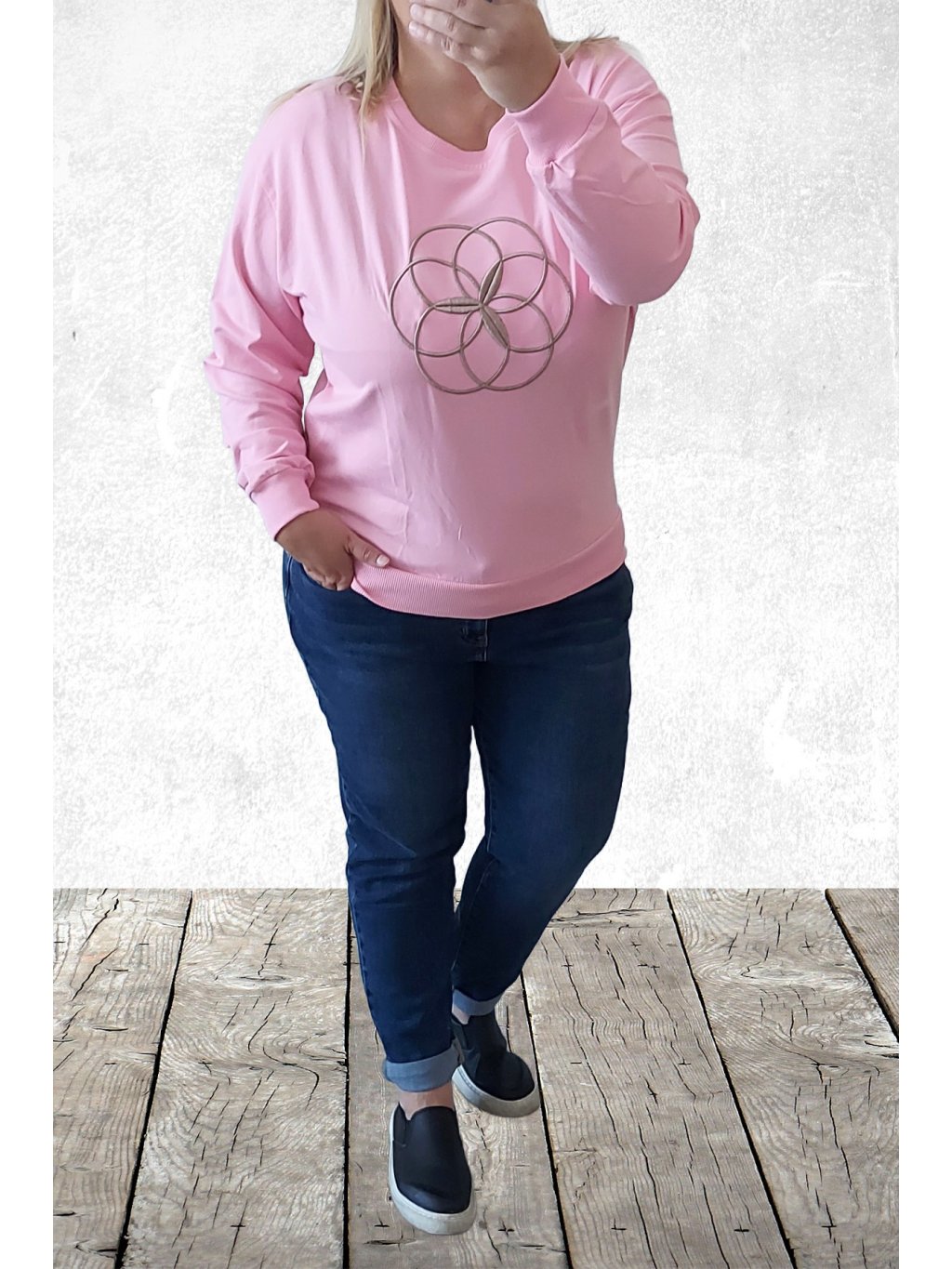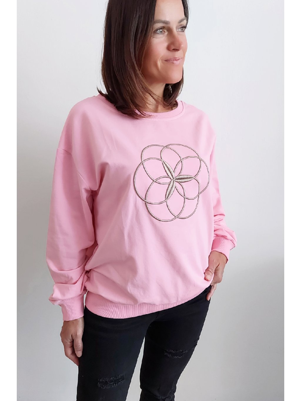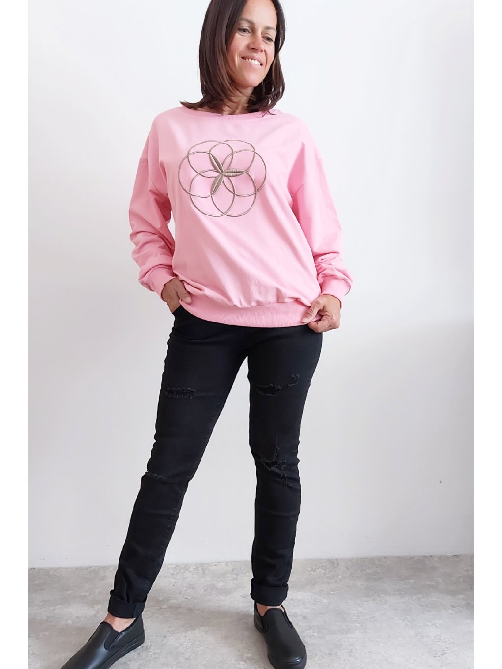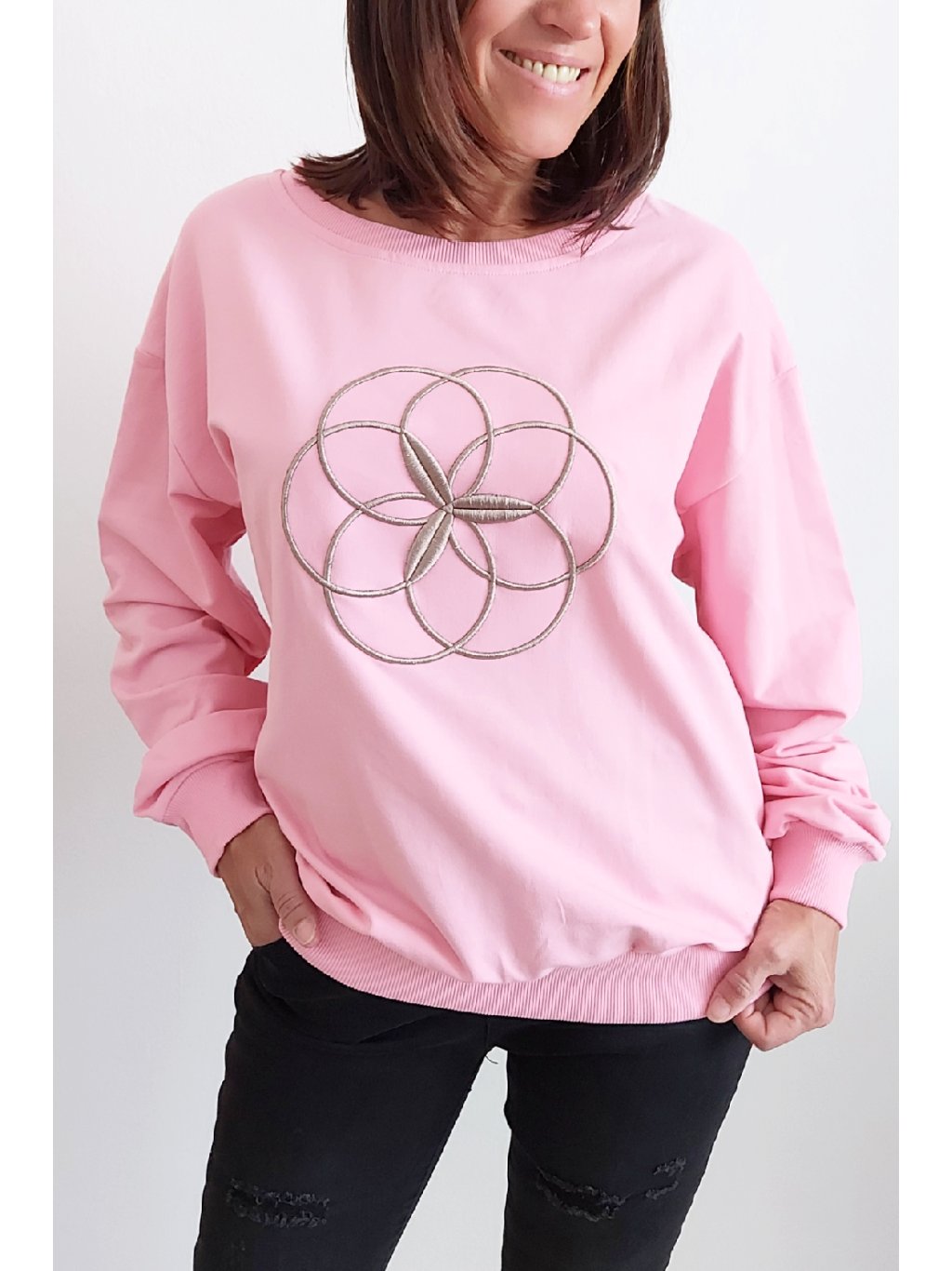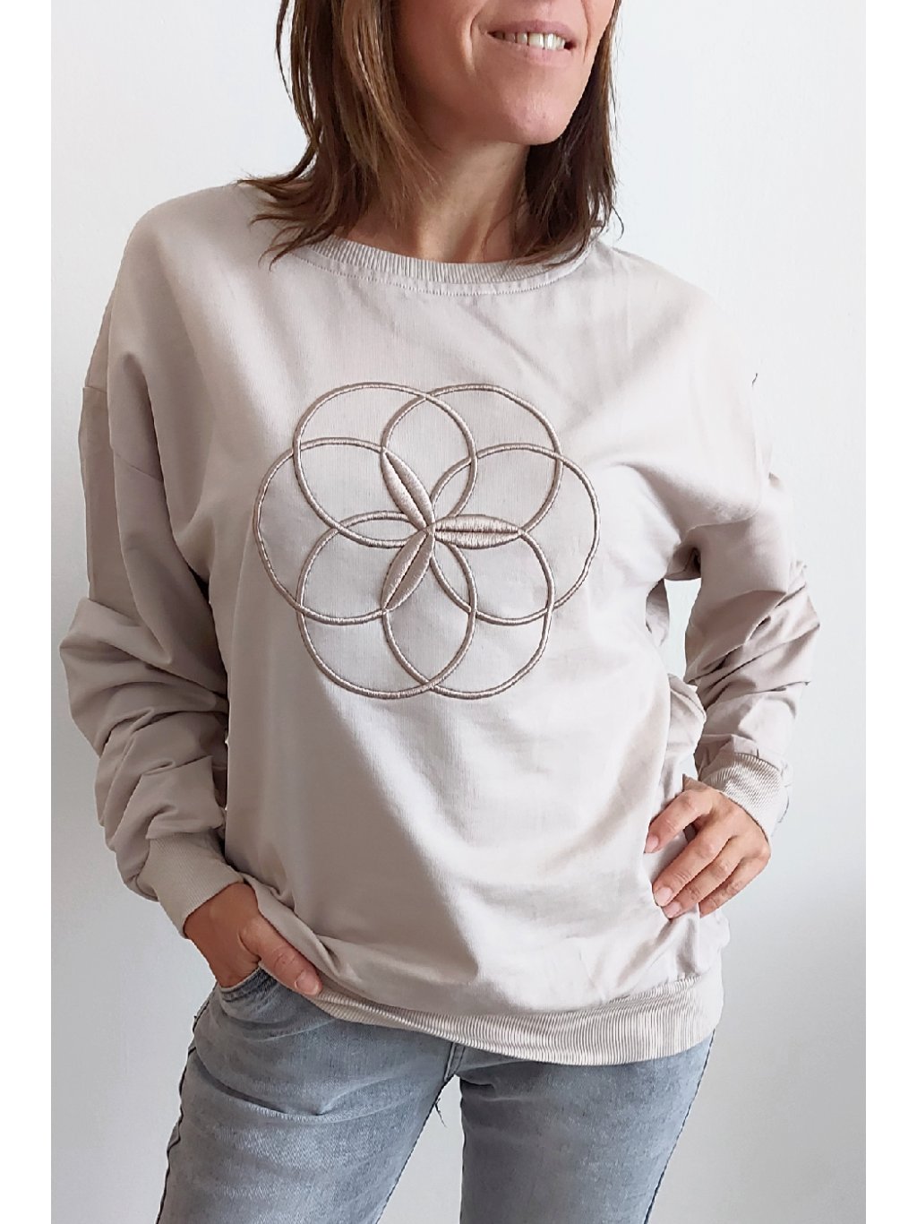 Mikina přes hlavu s výšivkou v přední části. Rukávy dlouhé ukončené úpletem. Spodní lem také zakončen úpletem. Materiál prémiový, kvalitní - bavlna vyšší gramáže. Foceno na vel. XS, výška 156cm i na vel. 2XL (prsa 116cm, boky 120cm), výška 165cm.