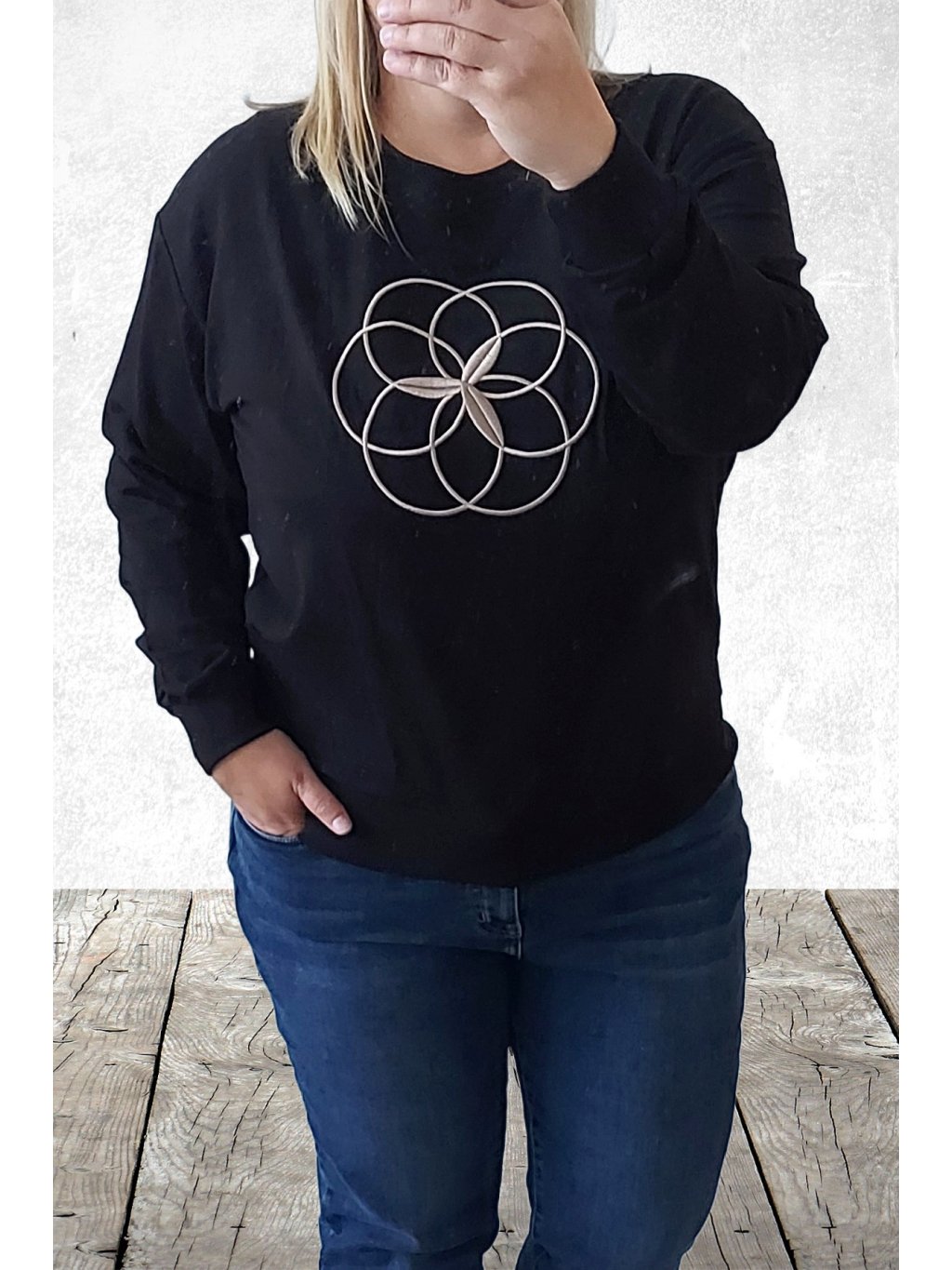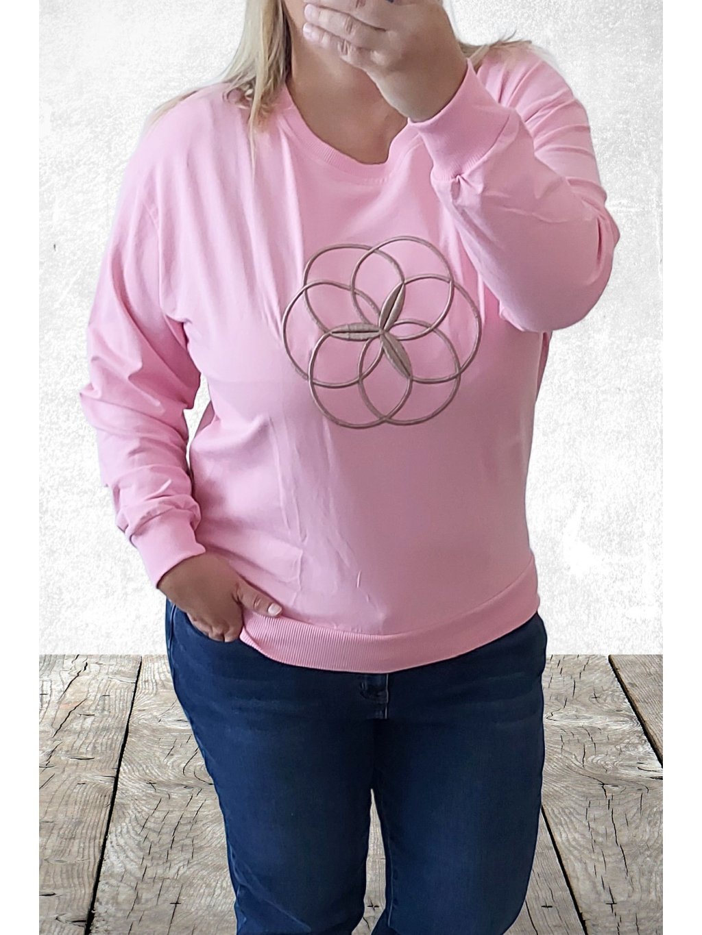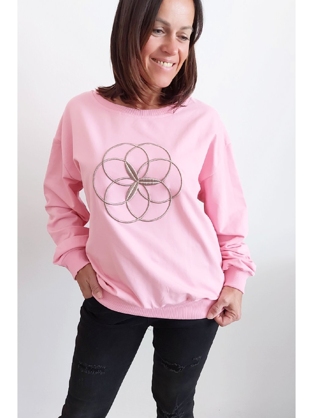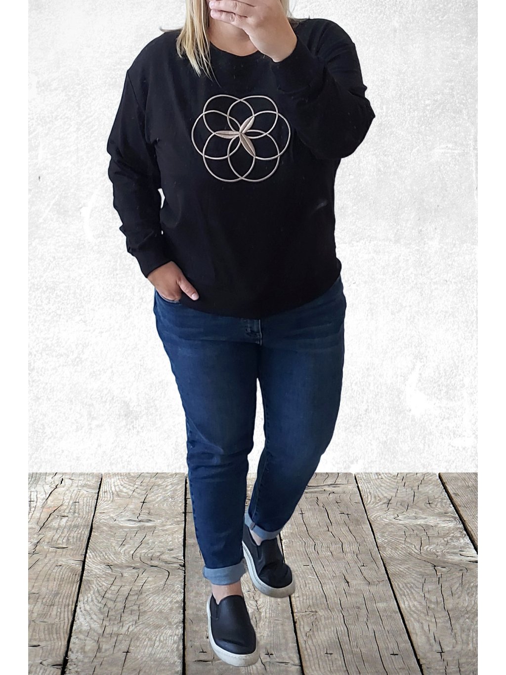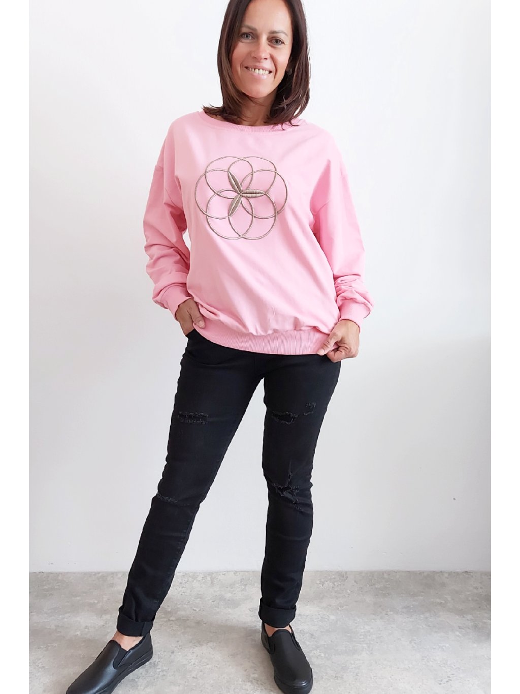 Mikina přes hlavu s výšivkou v přední části. Rukávy dlouhé ukončené úpletem. Spodní lem také zakončen úpletem. Materiál prémiový, kvalitní - bavlna vyšší gramáže. Foceno na vel. XS, výška 156cm i na vel. 2XL (prsa 116cm, boky 120cm), výška 165cm.