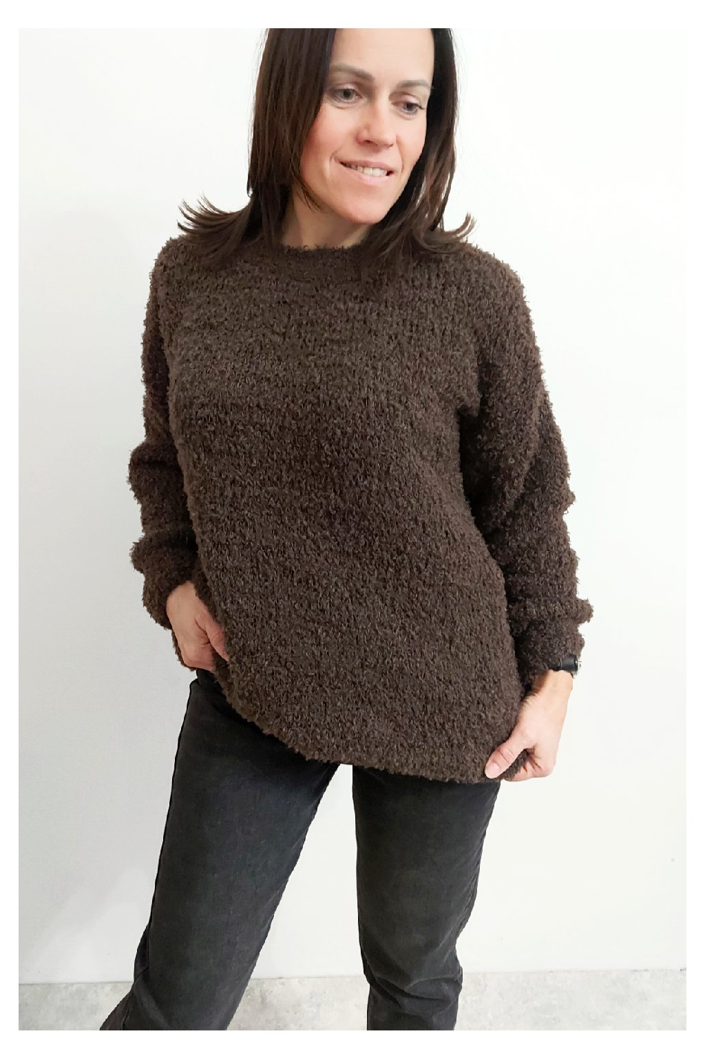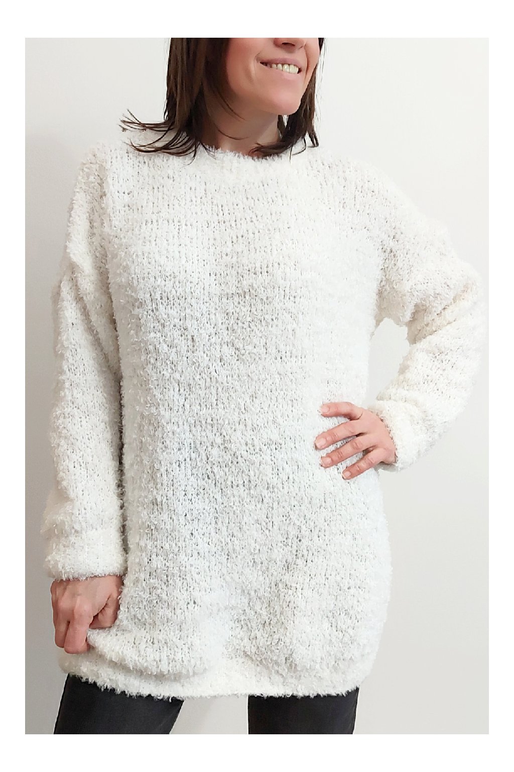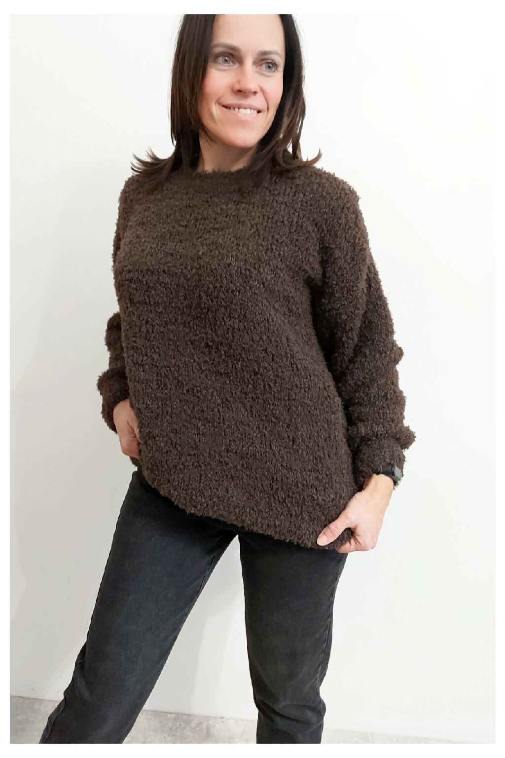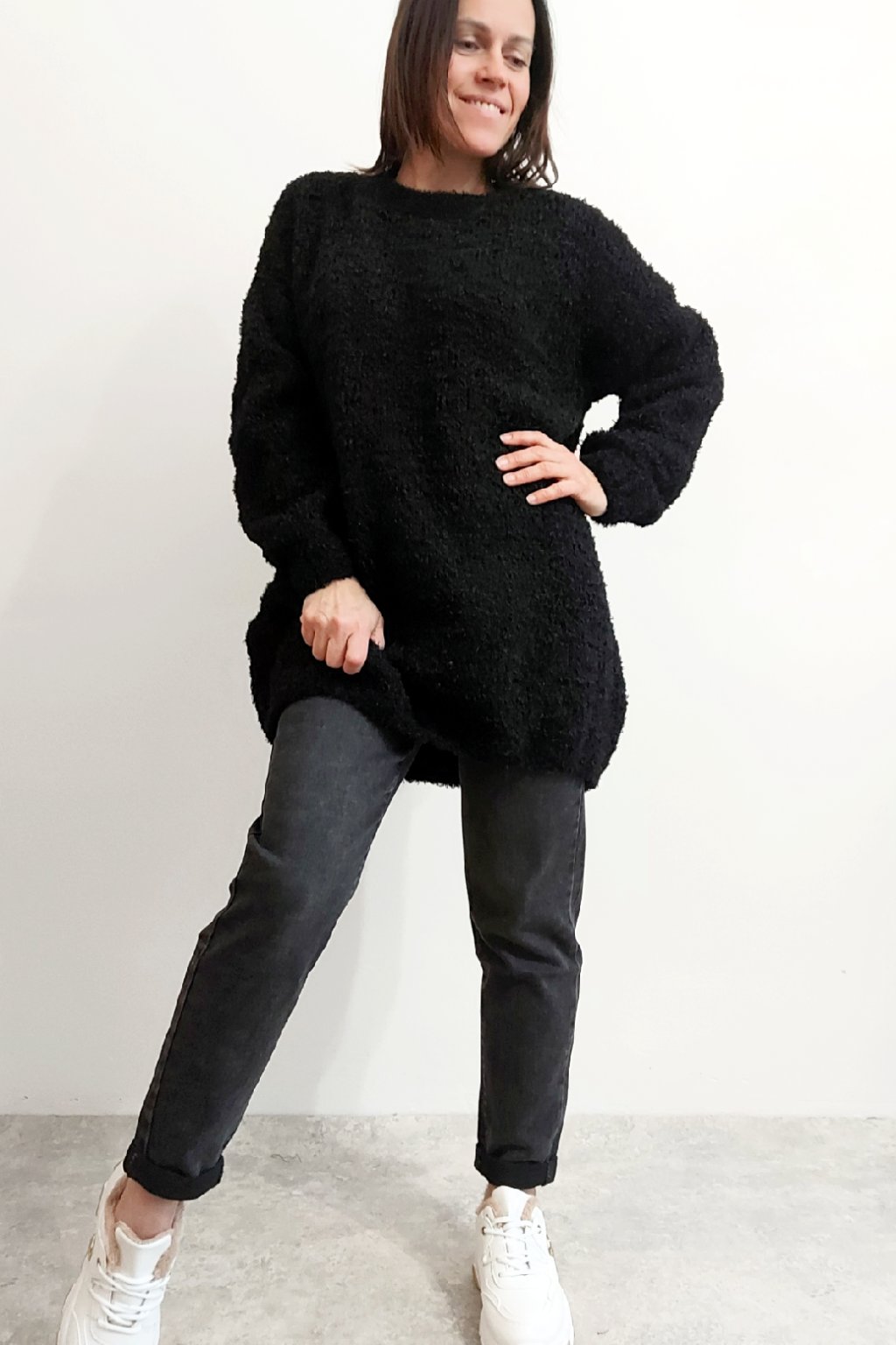 Hrubý, hřejivý svetr s obsahem moheru. Volný střih. Velmi teplý, nekousavý materiál. Vhodný i pro větší velikosti ( u menších velikostí je volnější). Foceno na vel. XS, výška 156cm i na vel. 2XL (prsa 116cm, boky 120cm), výška 165cm. U menších velikostí je svetr volný.