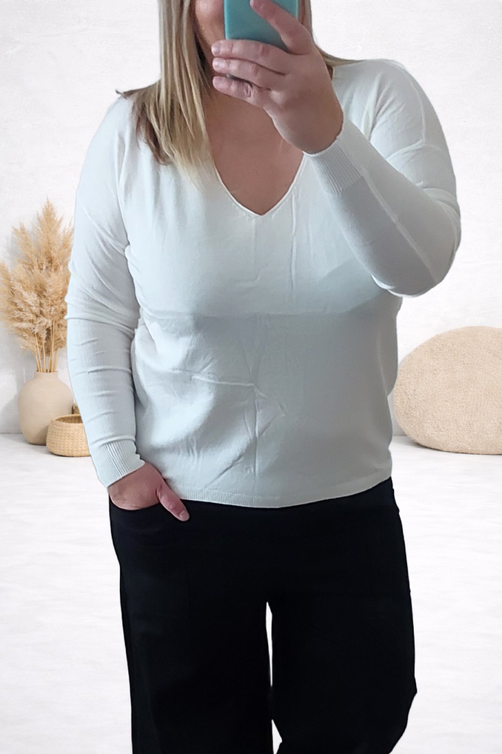 Heboučký svetr s véčkovým výstřihem větší velikost