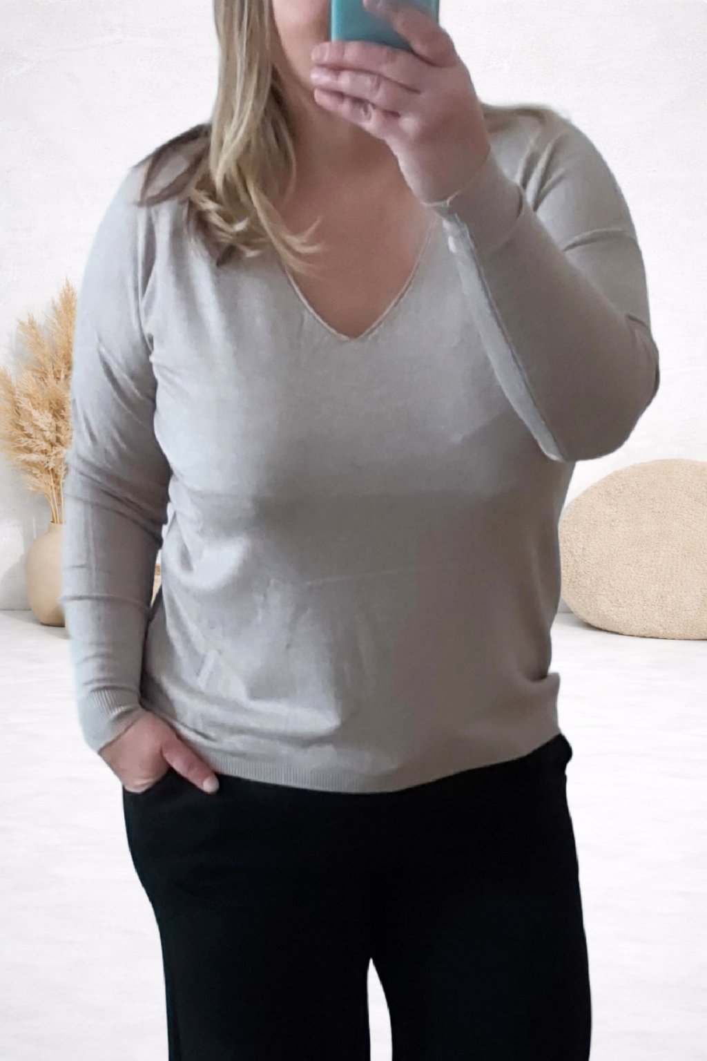 Heboučký svetr s véčkovým výstřihem větší velikost