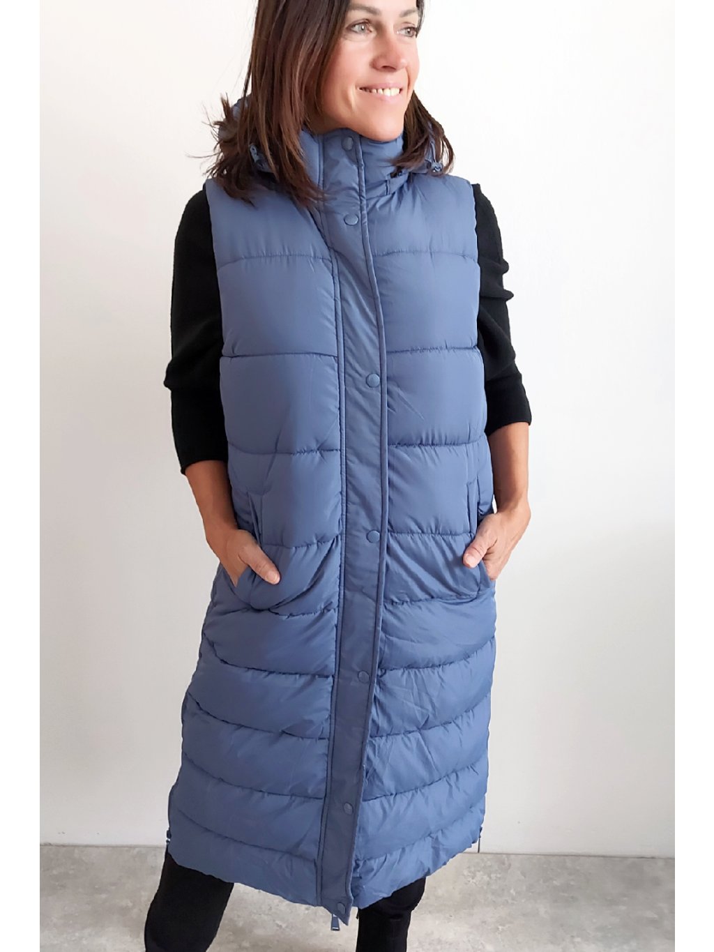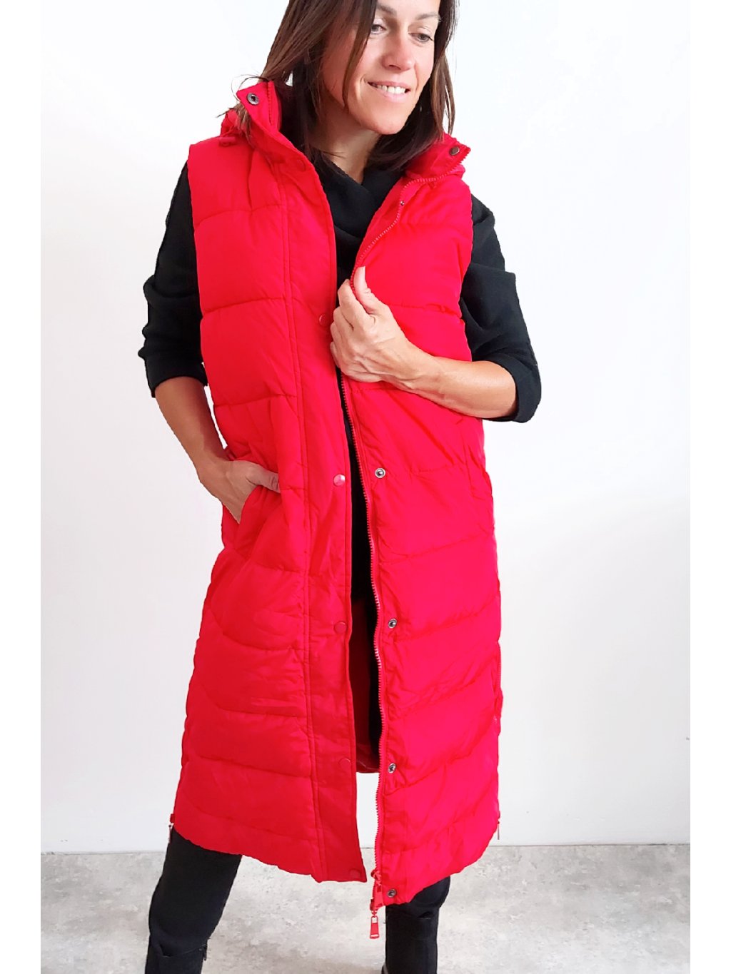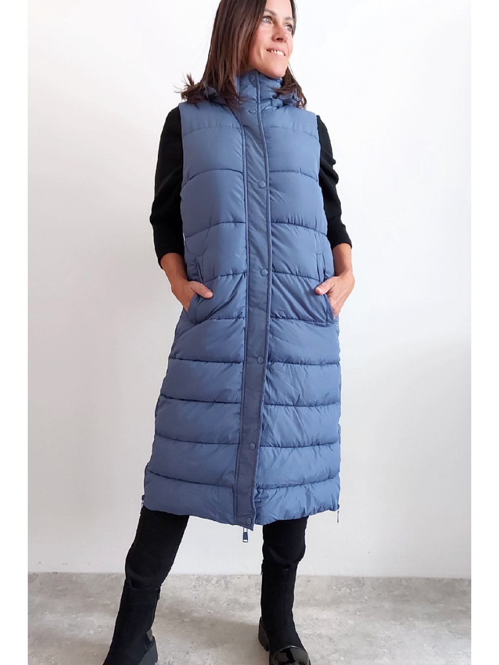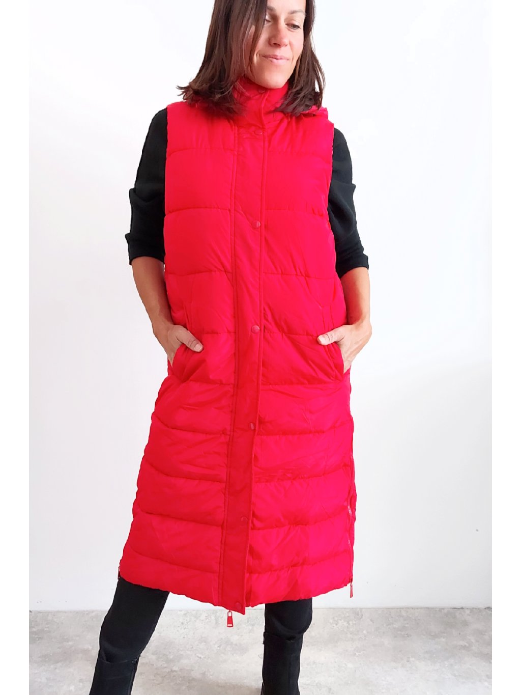 Vysoce kvalitní a trendy vesta. Má kapuci, která je na zip a lze ji tak odepnout. Zapínání na zip, který je schovaný lemem látky se zapínáním na cvoky. Vpředu jsou kapsy. Po stranách jsou zipy, které lze rozepnout. Velikosti odpovídají. Vel. S focena na vel. XS, výška 163cm.