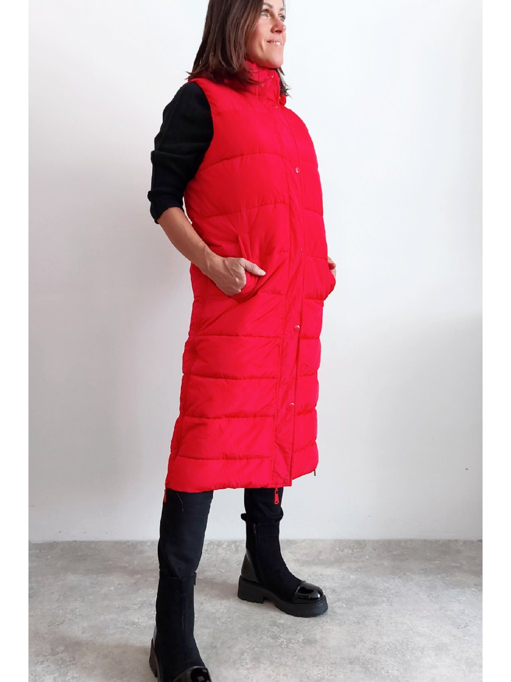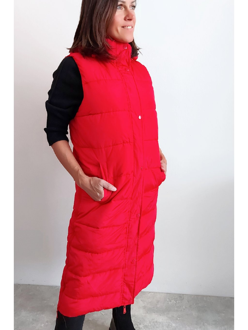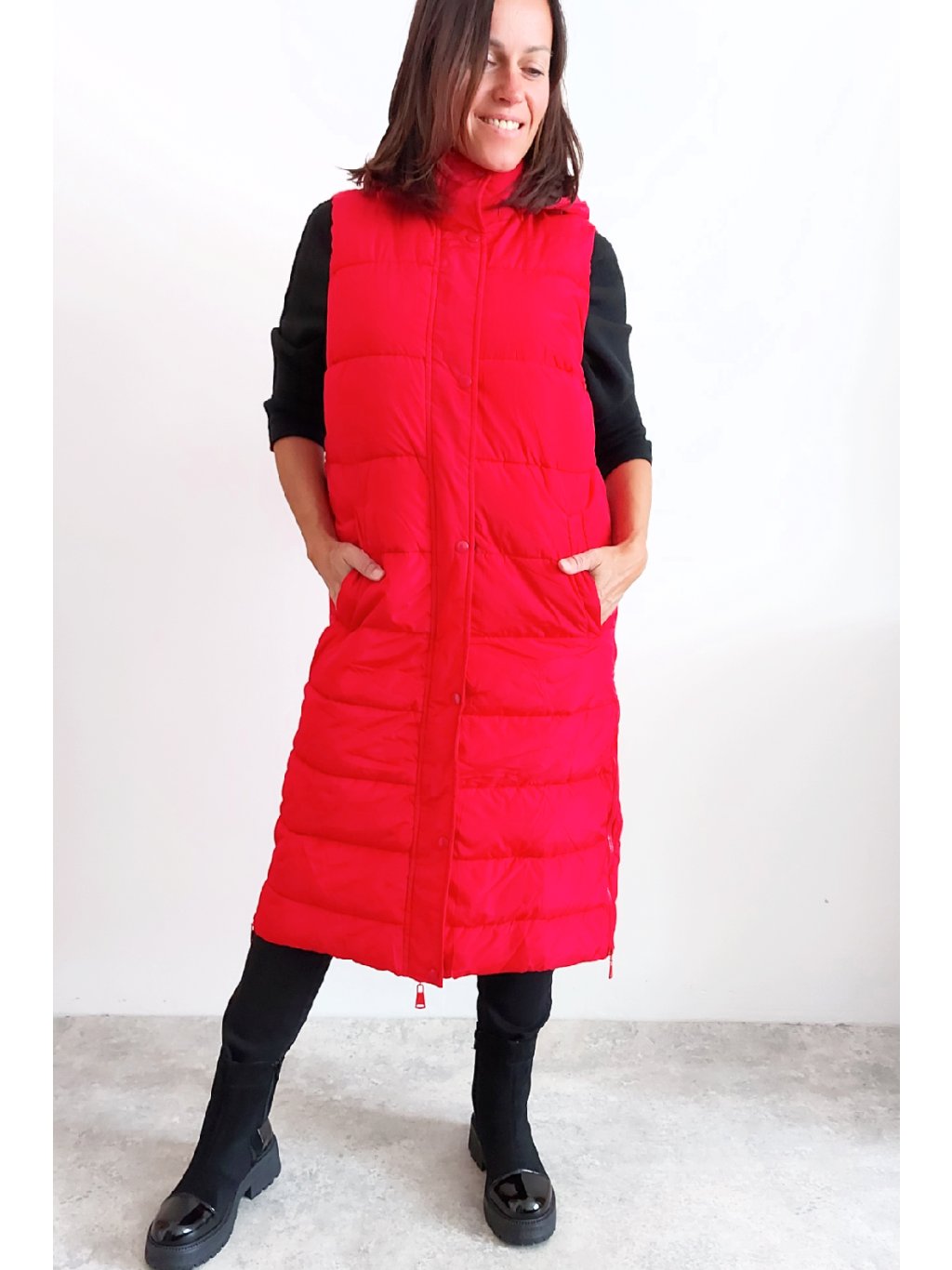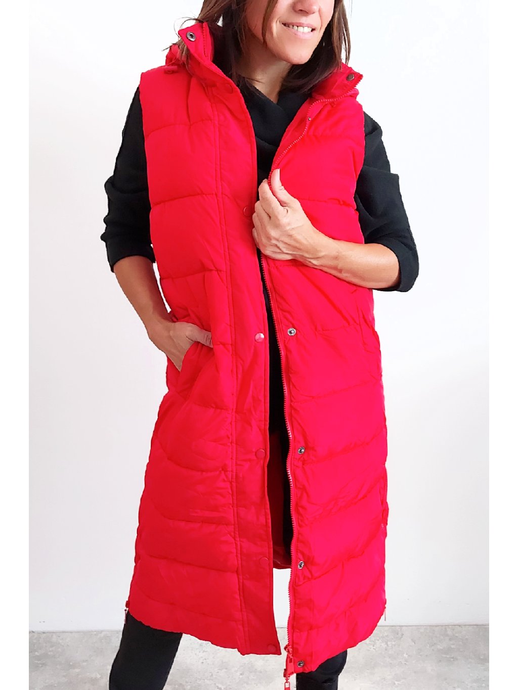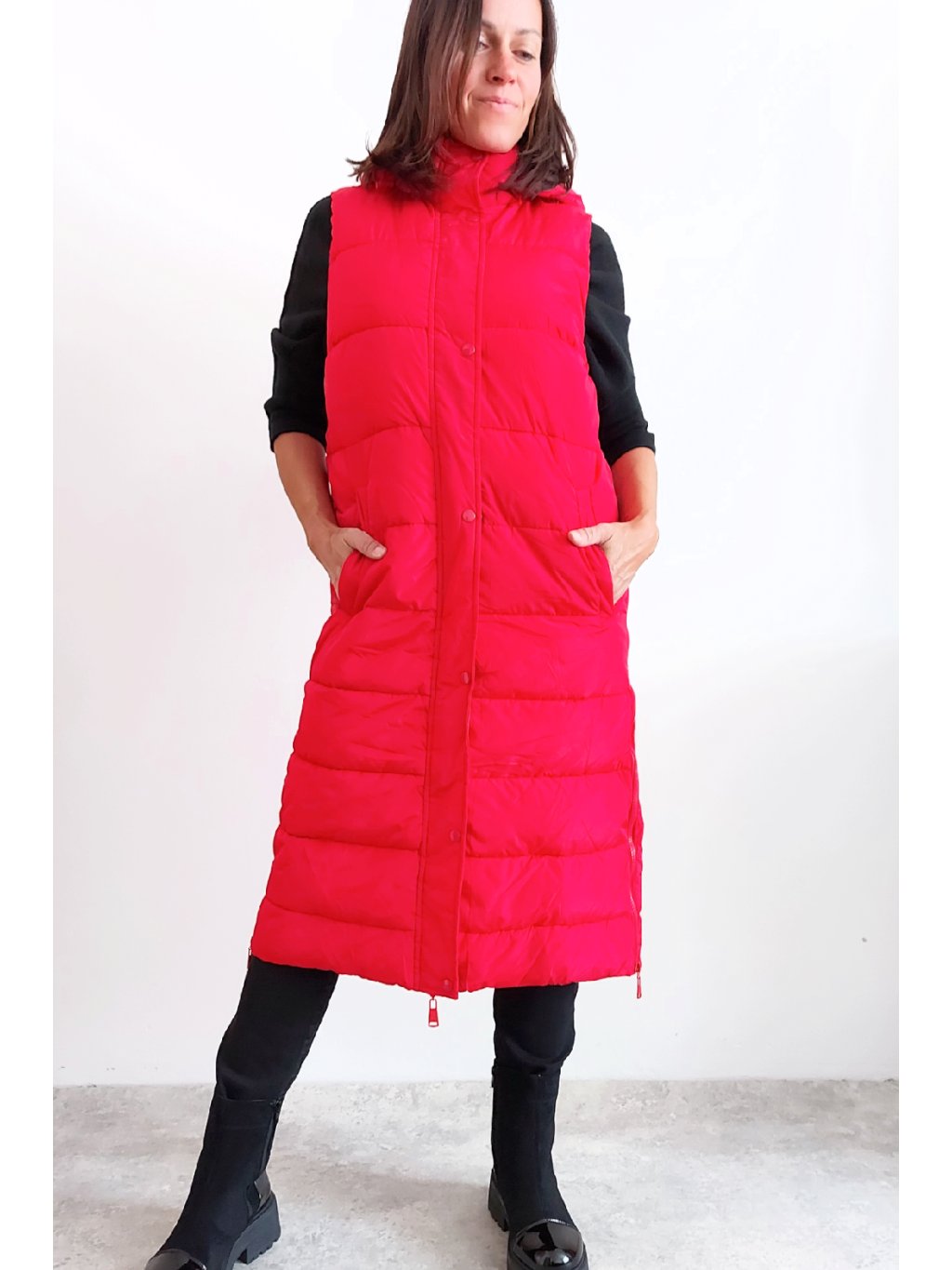 Vysoce kvalitní a trendy vesta. Má kapuci, která je na zip a lze ji tak odepnout. Zapínání na zip, který je schovaný lemem látky se zapínáním na cvoky. Vpředu jsou kapsy. Po stranách jsou zipy, které lze rozepnout. Velikosti odpovídají. Vel. S focena na vel. XS, výška 163cm.