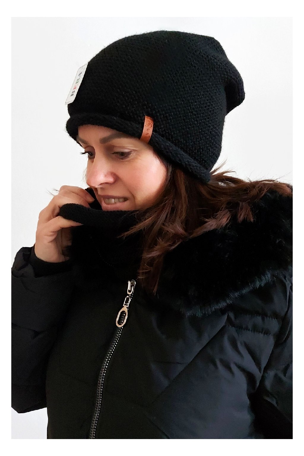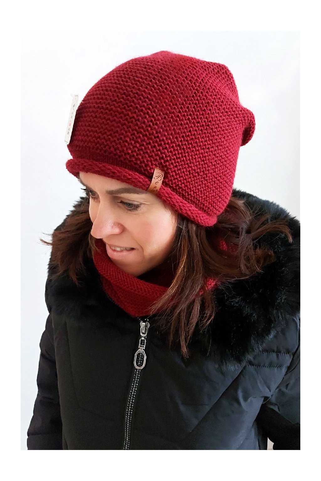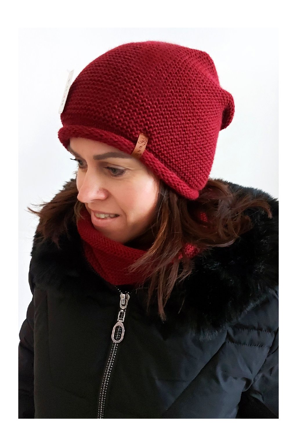 Komplet zimní čepky a tunelu. V několika barvách. Čepice má ozdobnou koženkovou nášivku. POZOR!! Ozdobné nášivky u ohrnutí na čepici se mohou lišit v závislosti na dodávce - jsou buď v šedém nebo hnědém provedení.