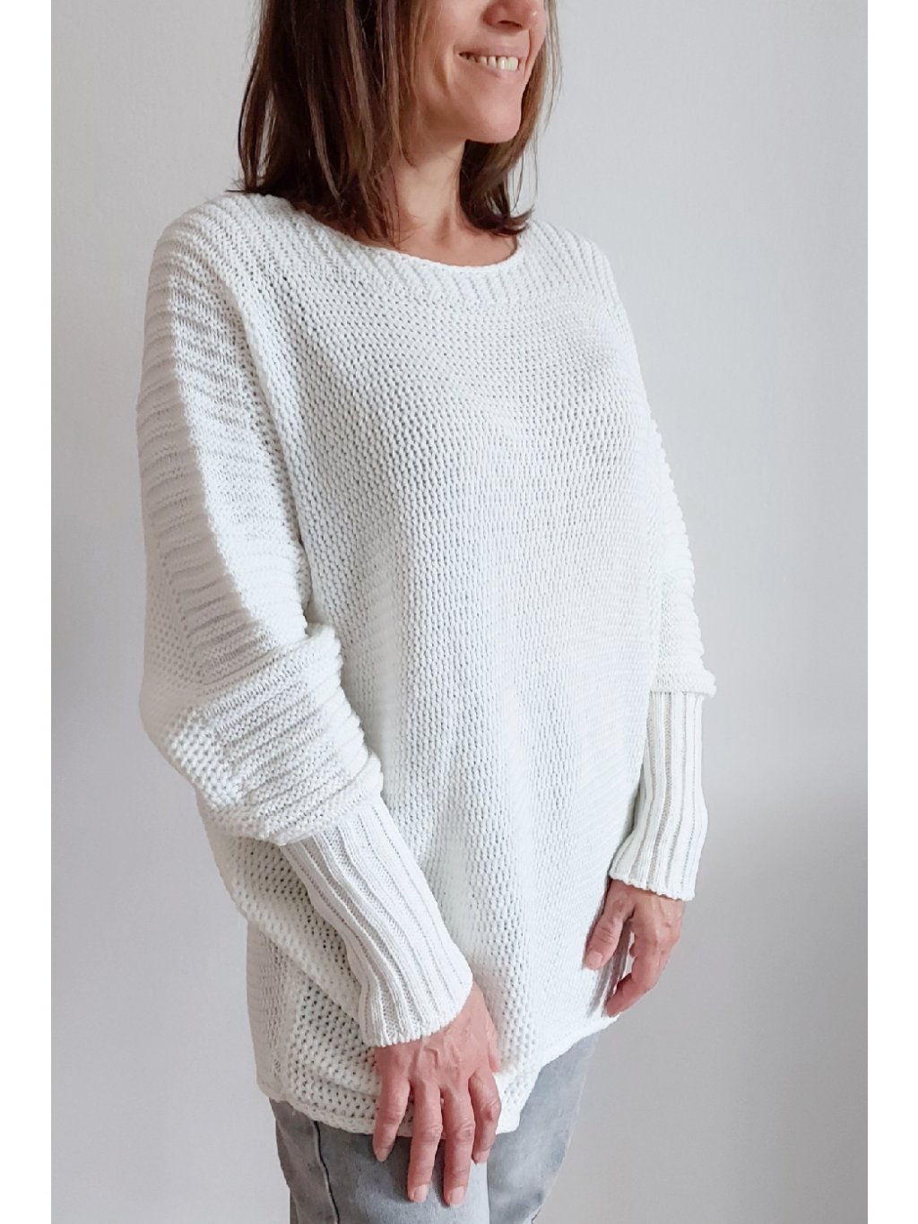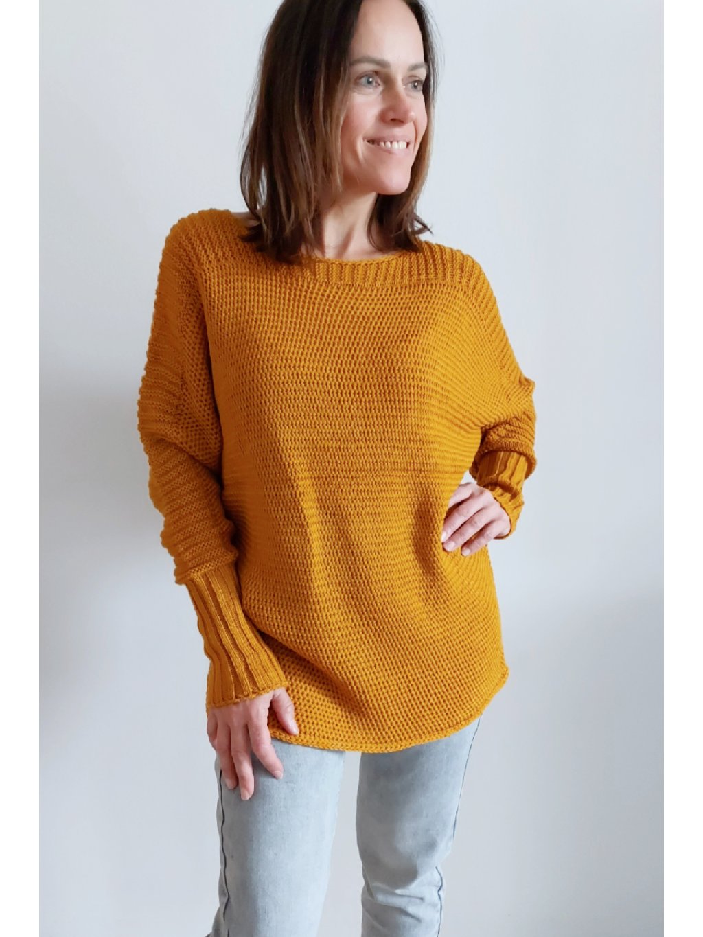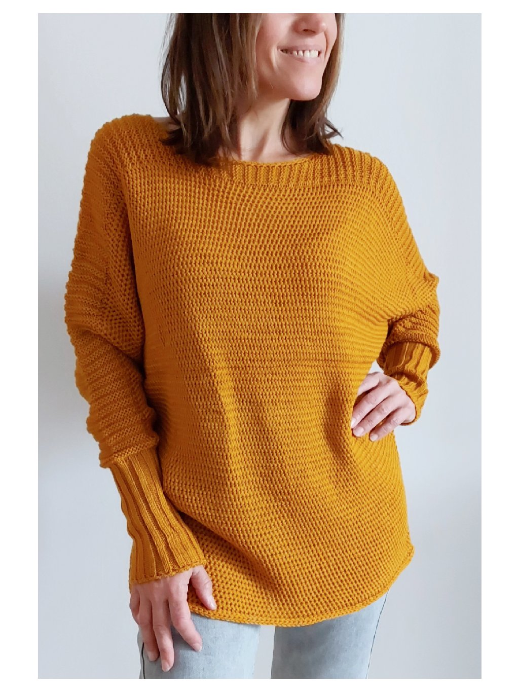 Úpletový svetřík z tenčího materiálu vhodná na jaro a podzim. Rukávy jsou mírně netopýřího střihu. Vzhledem k nasvícení blesku se mohou odstíny mírně lišit. Foceno na vel. XS/S.