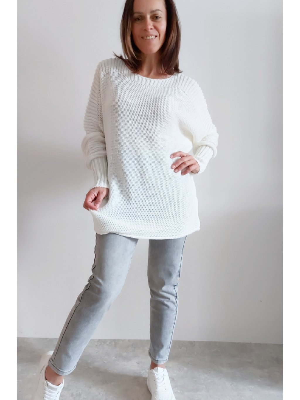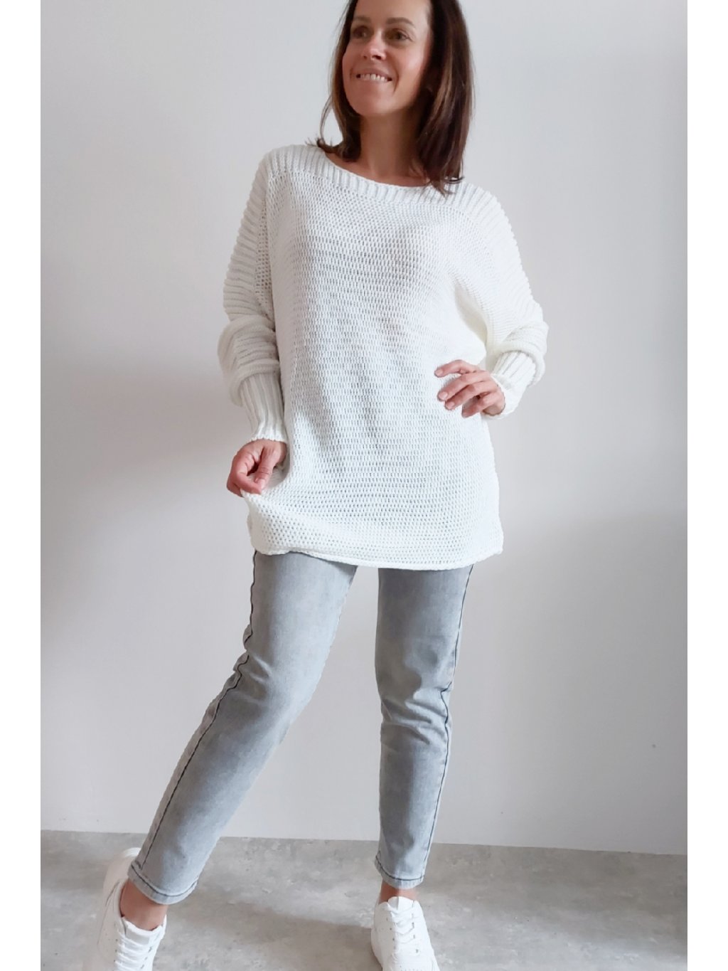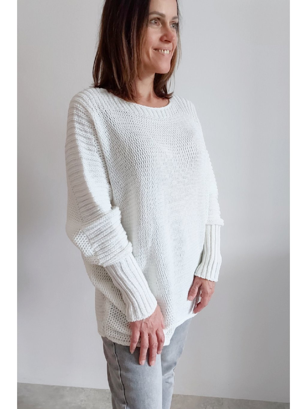 Úpletový svetřík z tenčího materiálu vhodná na jaro a podzim. Rukávy jsou mírně netopýřího střihu. Vzhledem k nasvícení blesku se mohou odstíny mírně lišit. Foceno na vel. XS/S.