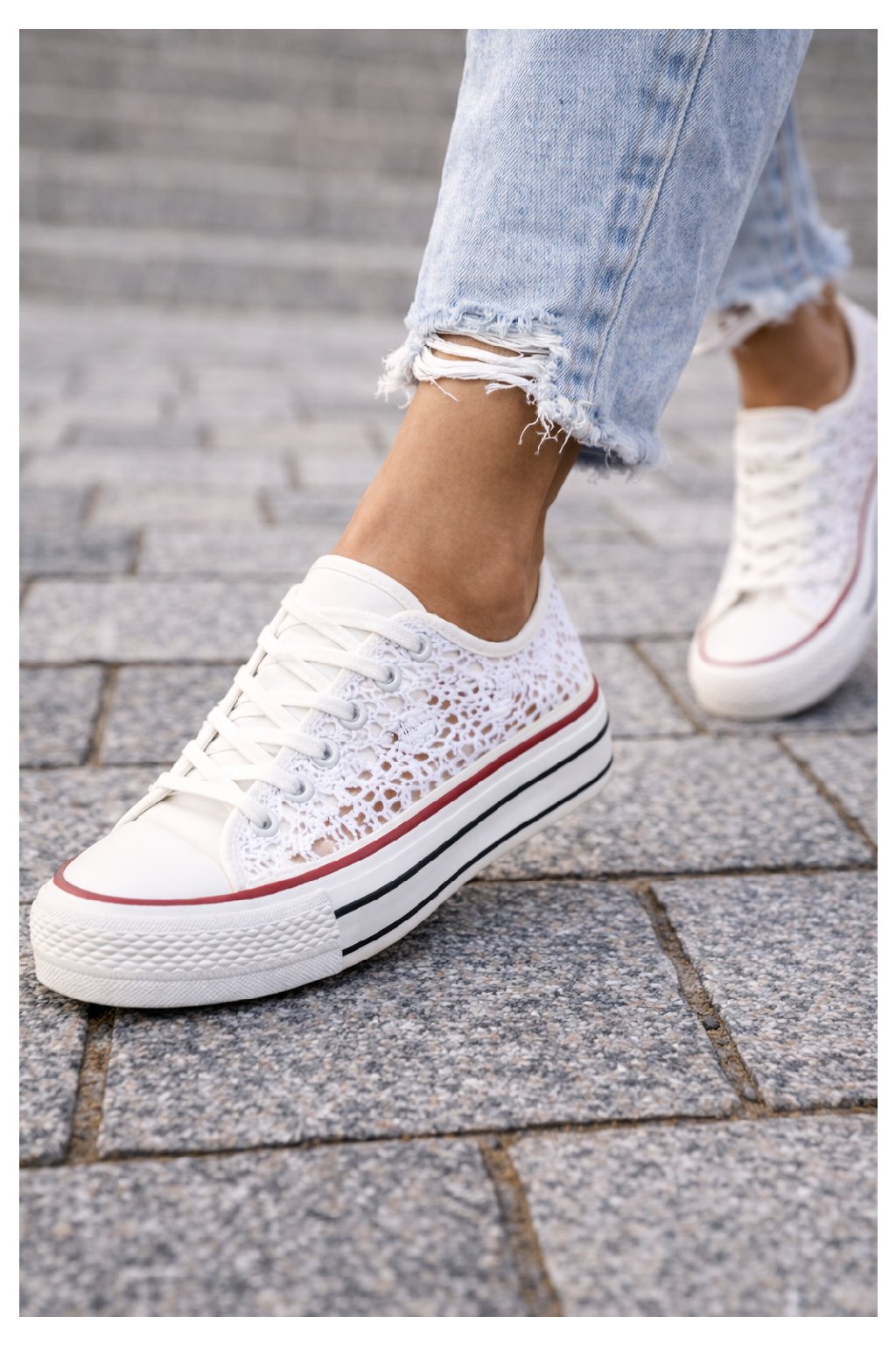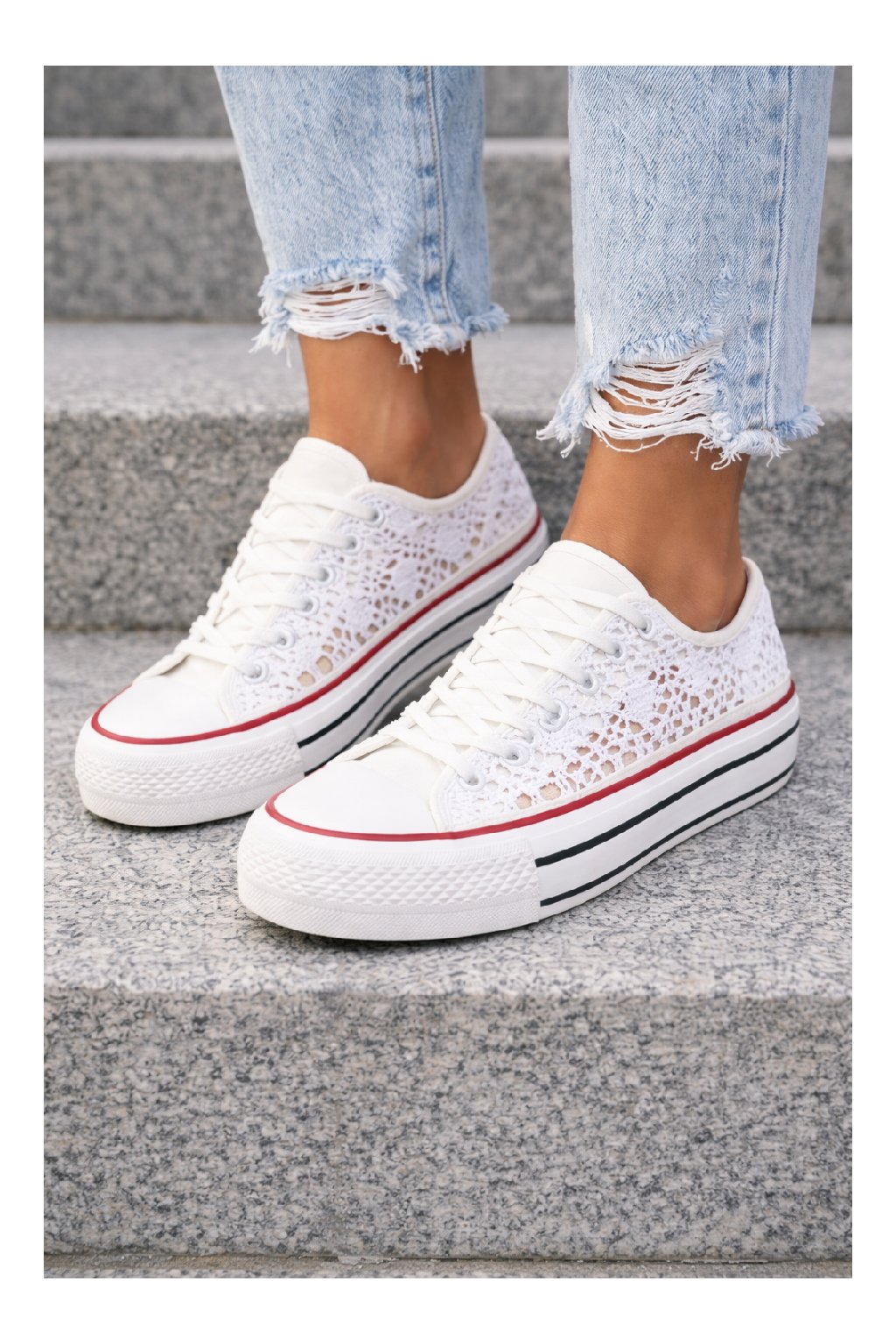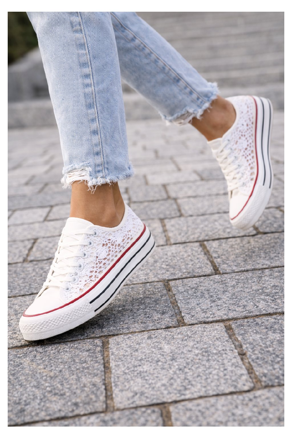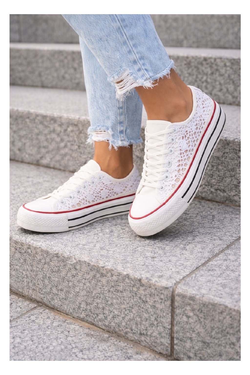 Tenisky krajkové. Klasika mezi vycházkovou obuví. Podrážka z pryže. Na šněrování. Nestárnoucí design, který se hodí téměř ke všem outfitům. Tento model často využívají i nevěsty.