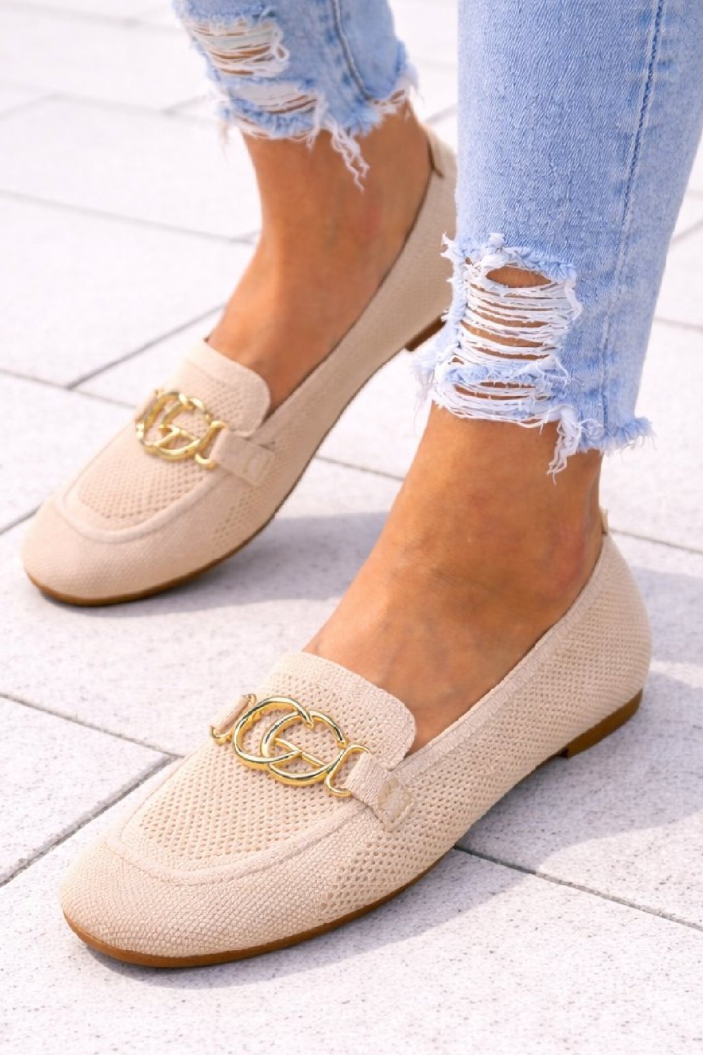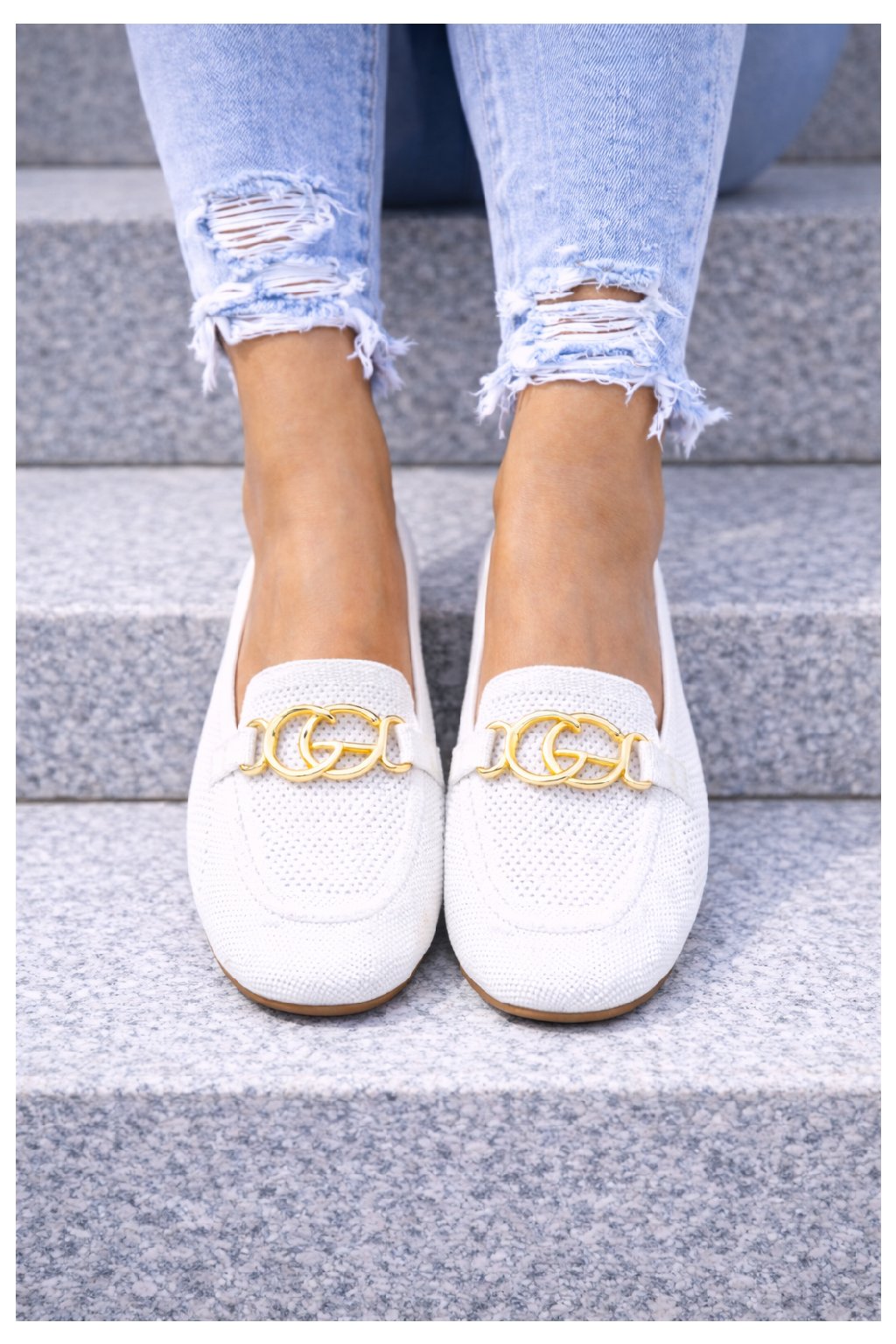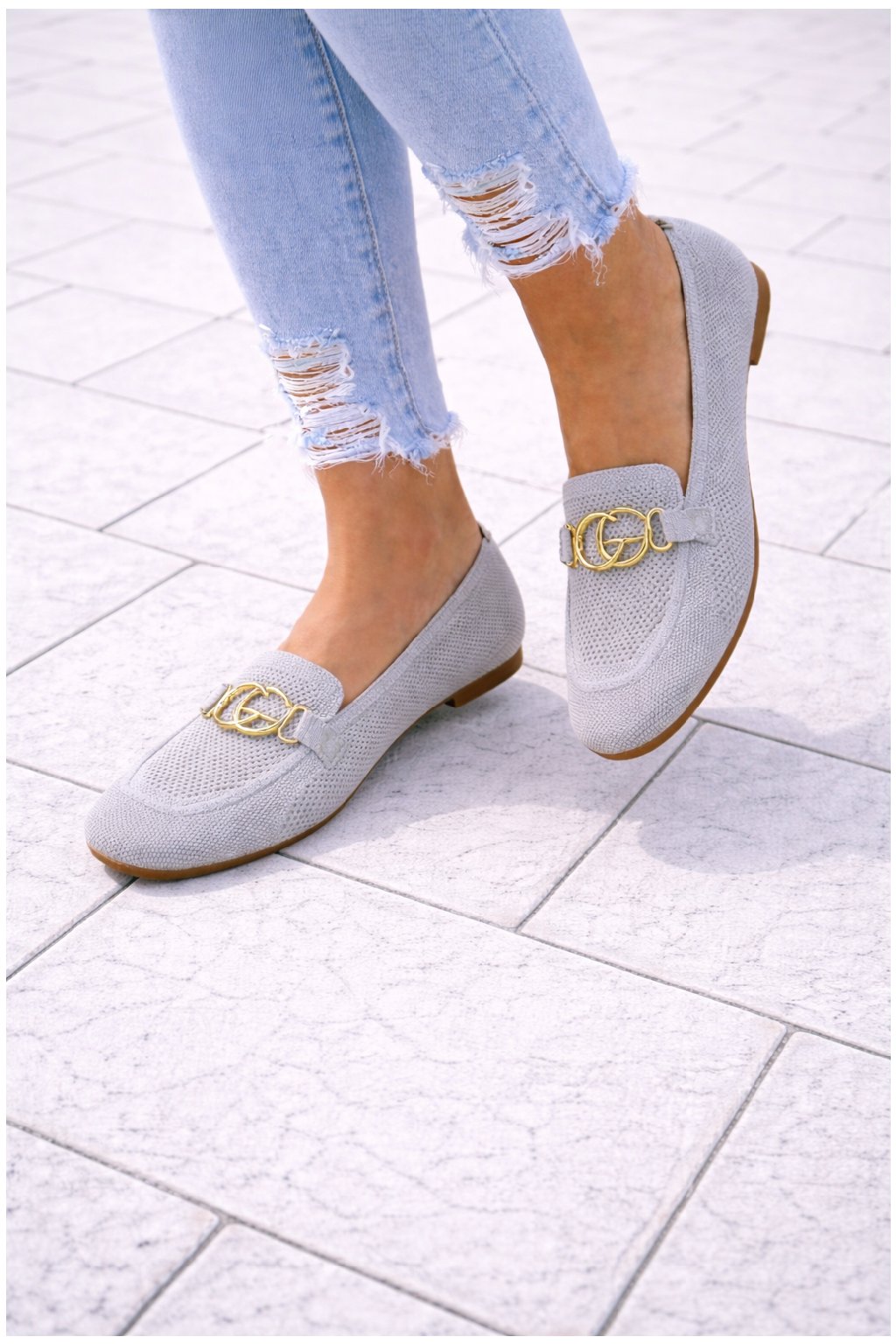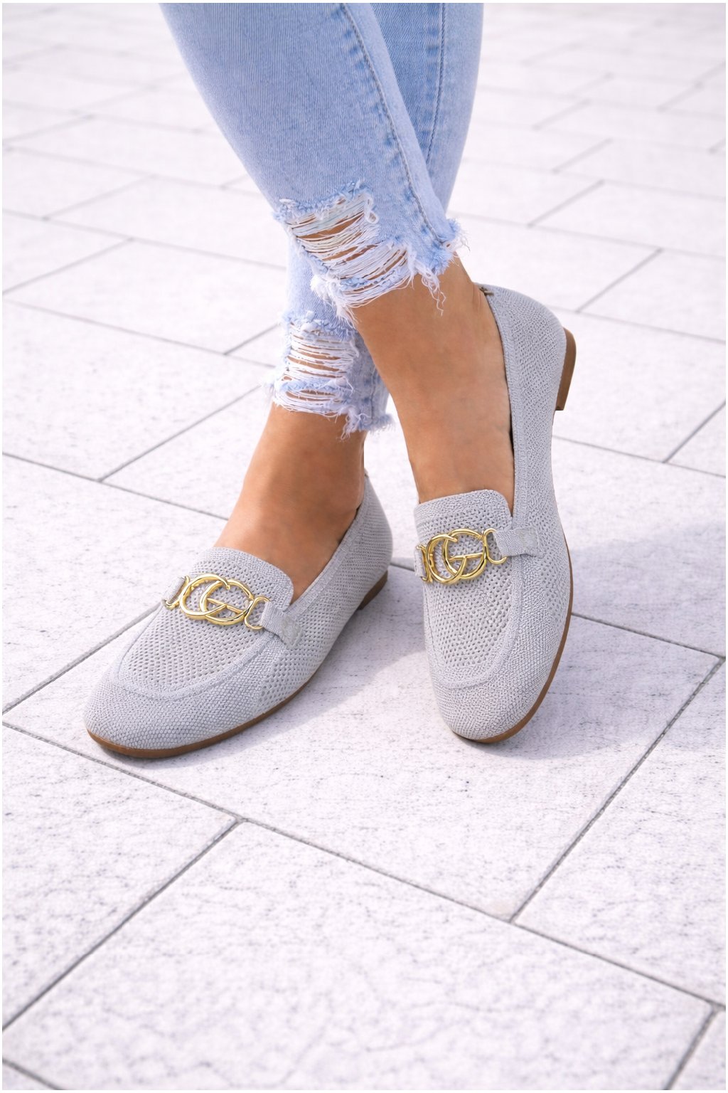 Nazouvací perforované mokasíny zdobené vpředu zlatou sponou. Měkké, velmi pohodlné. Úžasně pohodlné. Velikosti odpovídají.