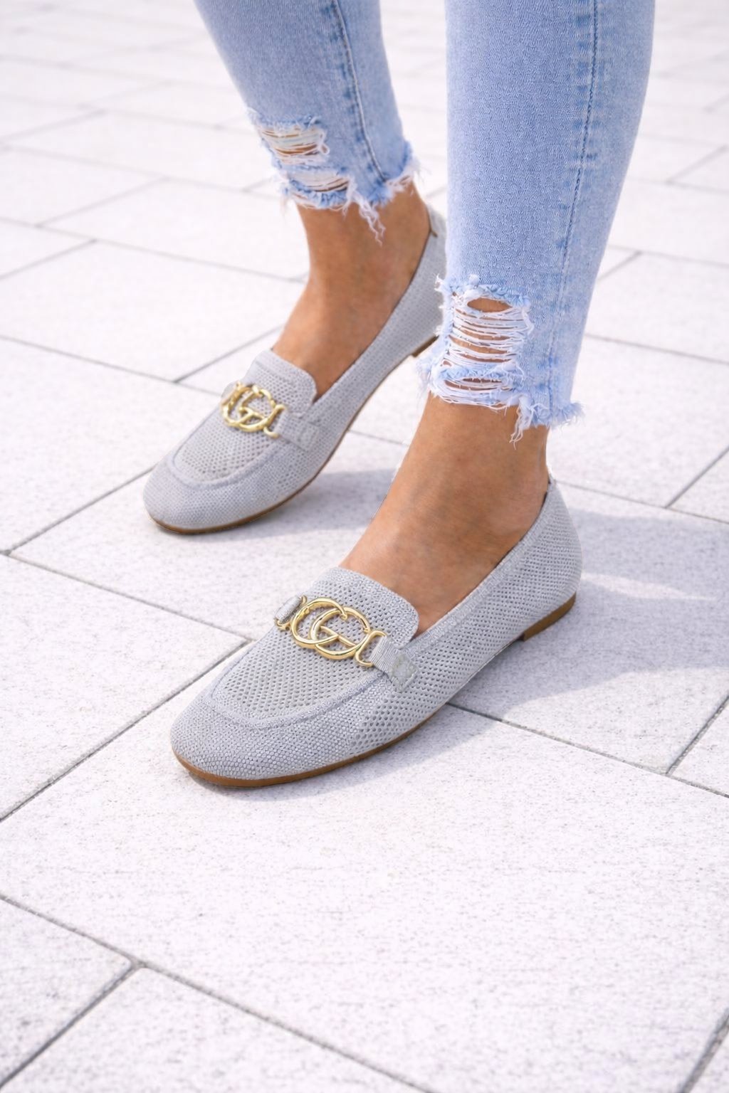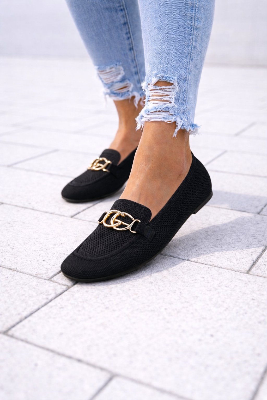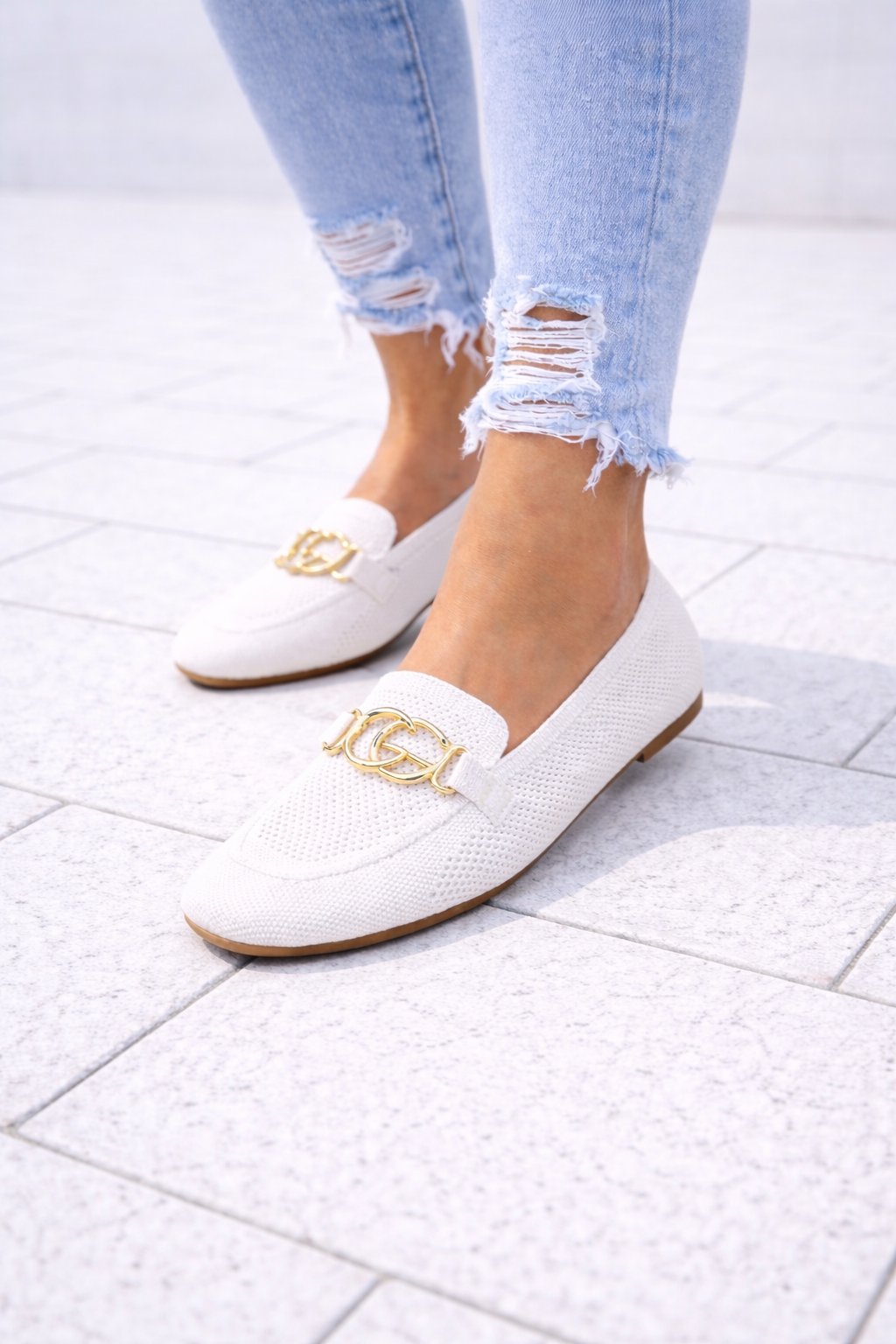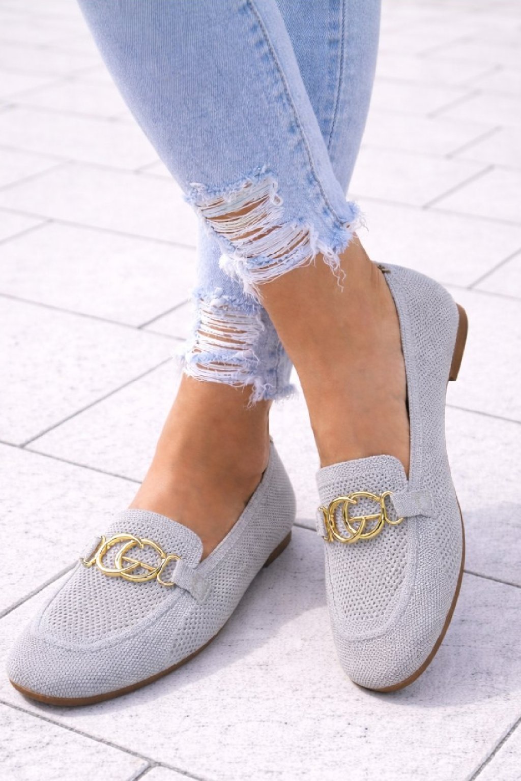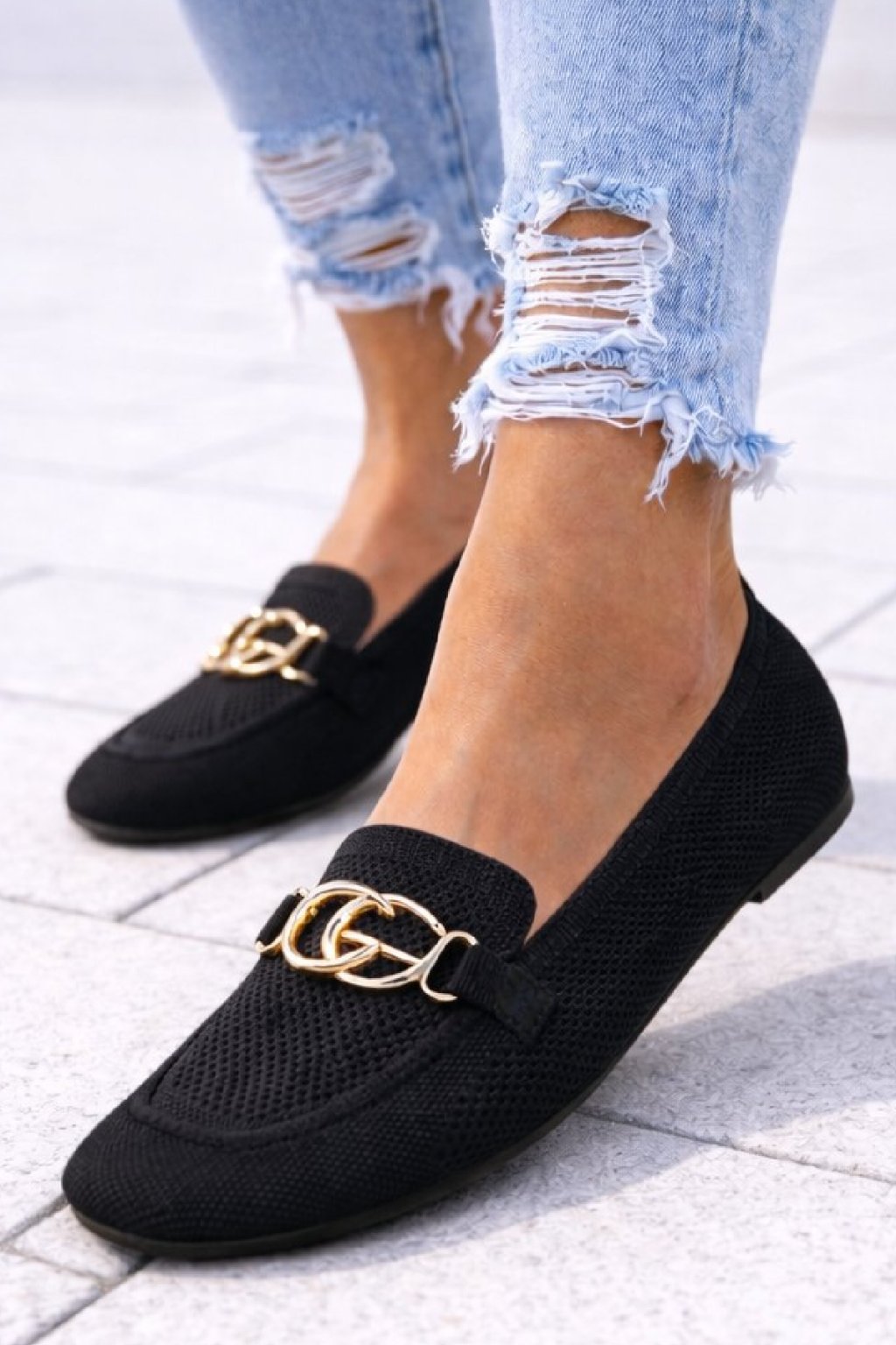 Nazouvací perforované mokasíny zdobené vpředu zlatou sponou. Měkké, velmi pohodlné. Úžasně pohodlné. Velikosti odpovídají.