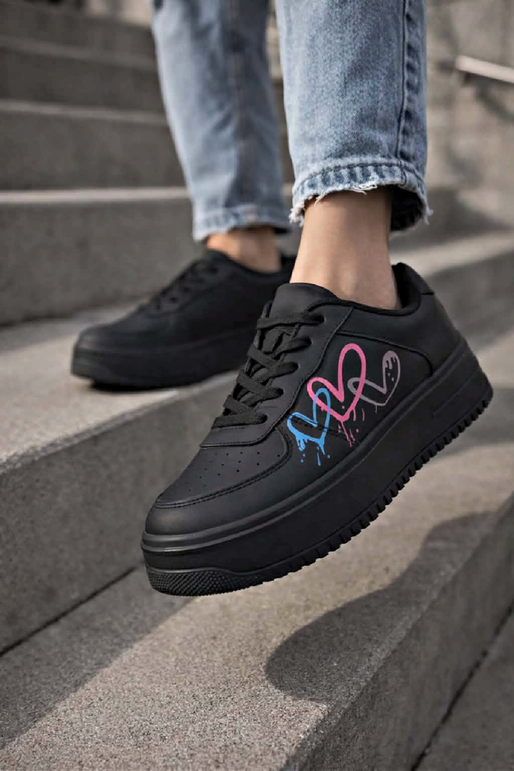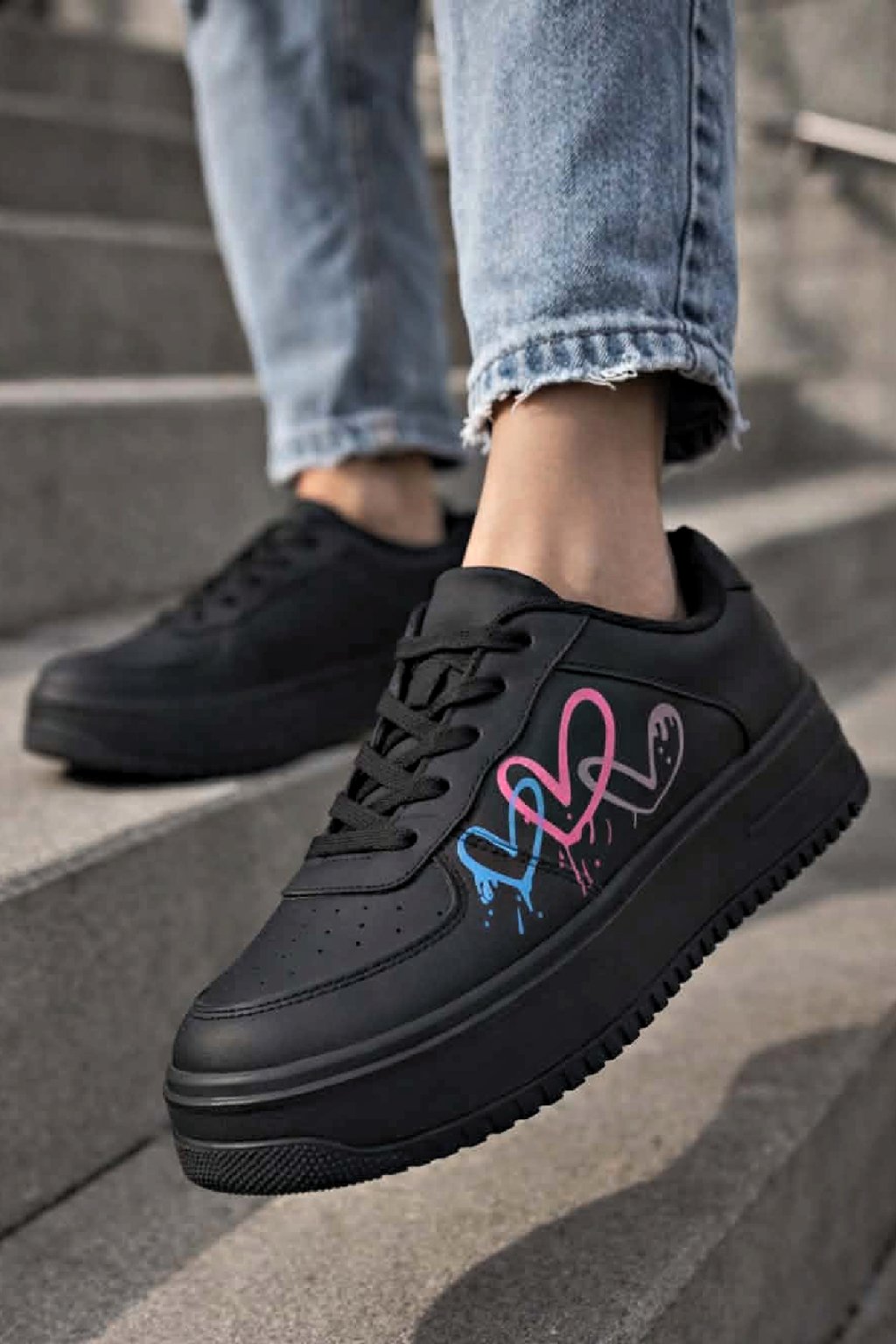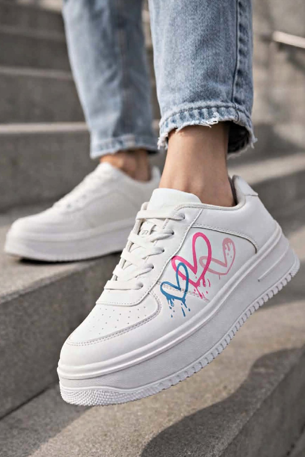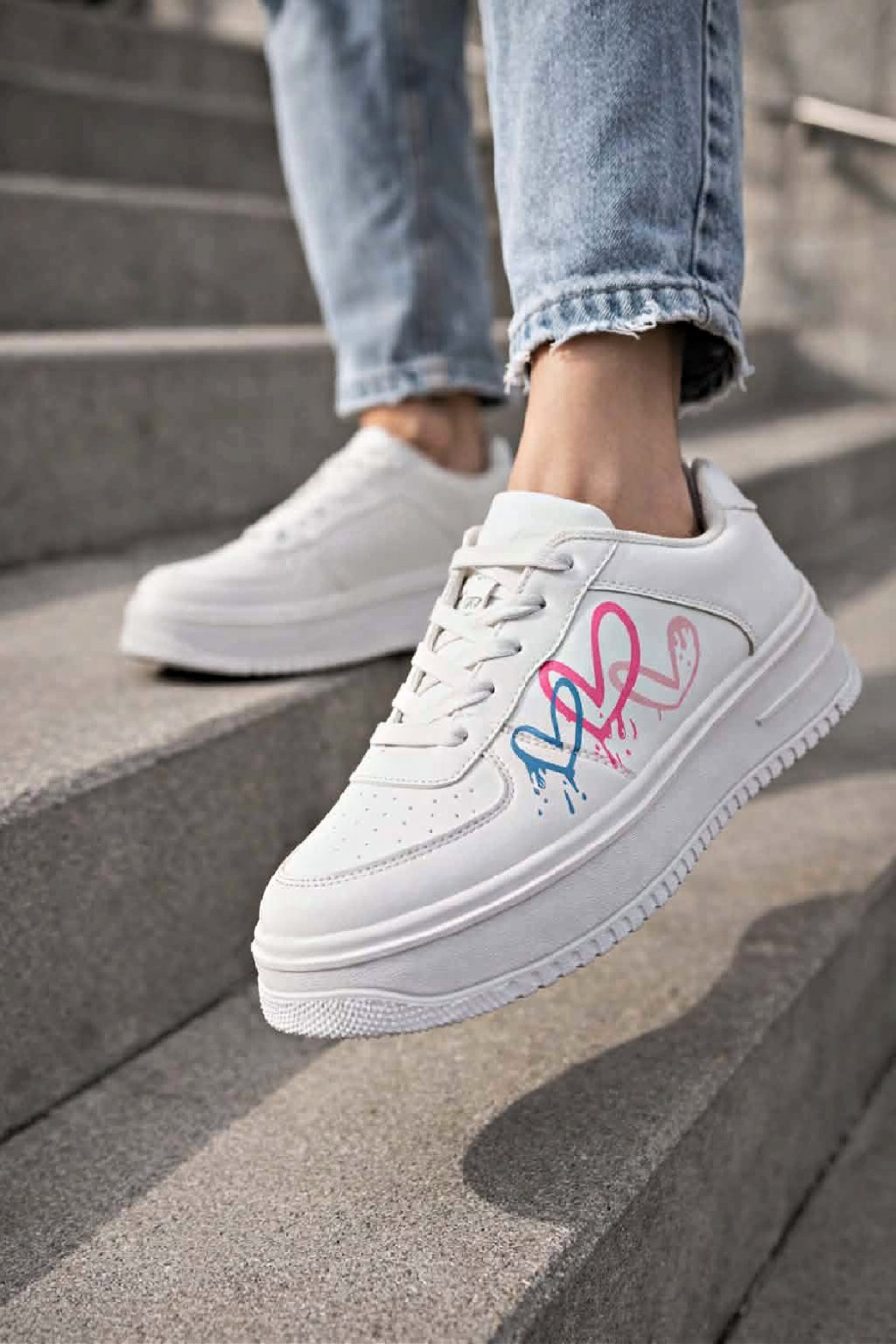 Módní tenisky s motivem srdíček. Vyšší, stabilní podrážka. Omyvatelný materiál. Na šněrování. Nezateplené - vhodné na jaro, léto a podzim.