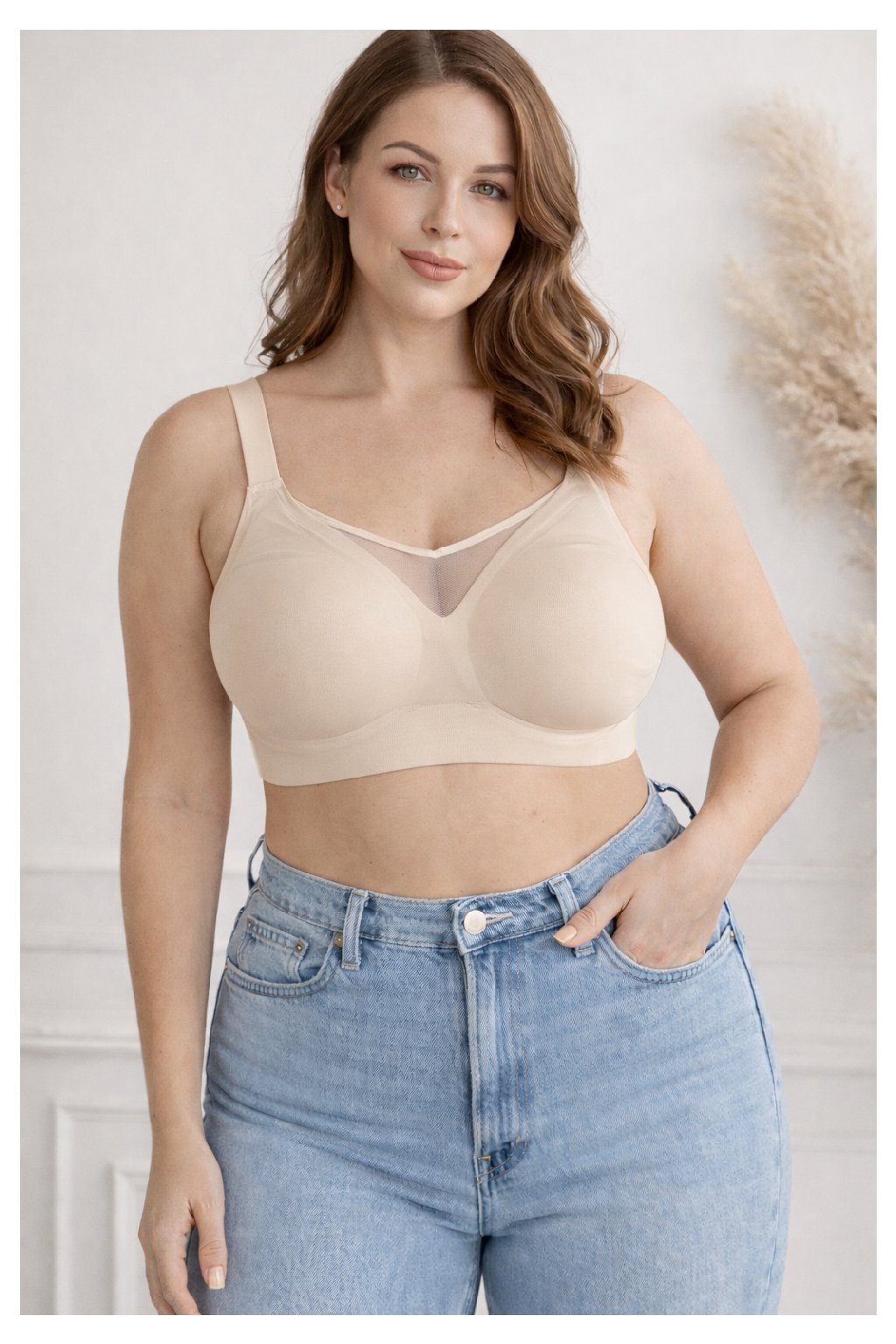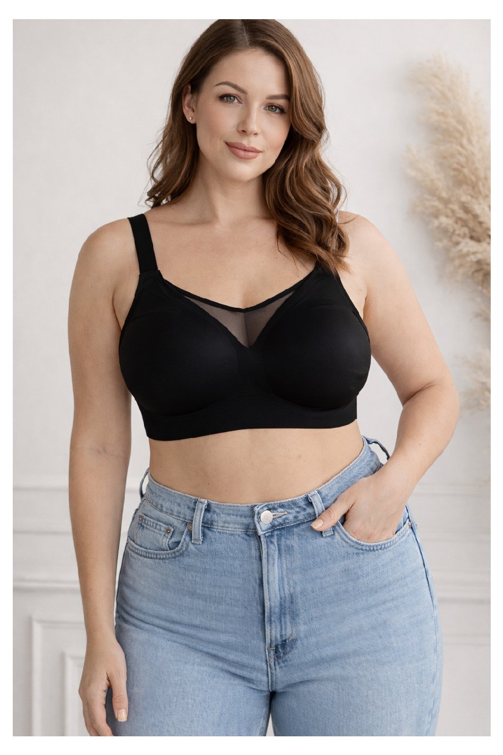 Podprsenka, kterou budeš chtít nosit stále. Má široká ramínka, která se nezařezávají a jsou nastavitelná. Zapínání na háčky, Vpředu je zdobena síťkou. Prsa jsou vyztužená. Super pohodlná.