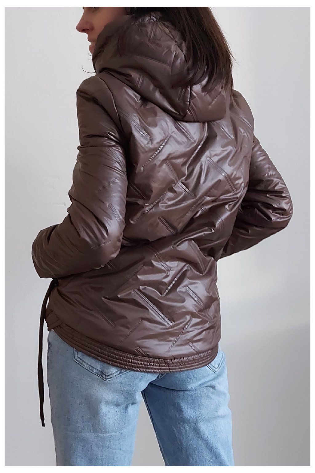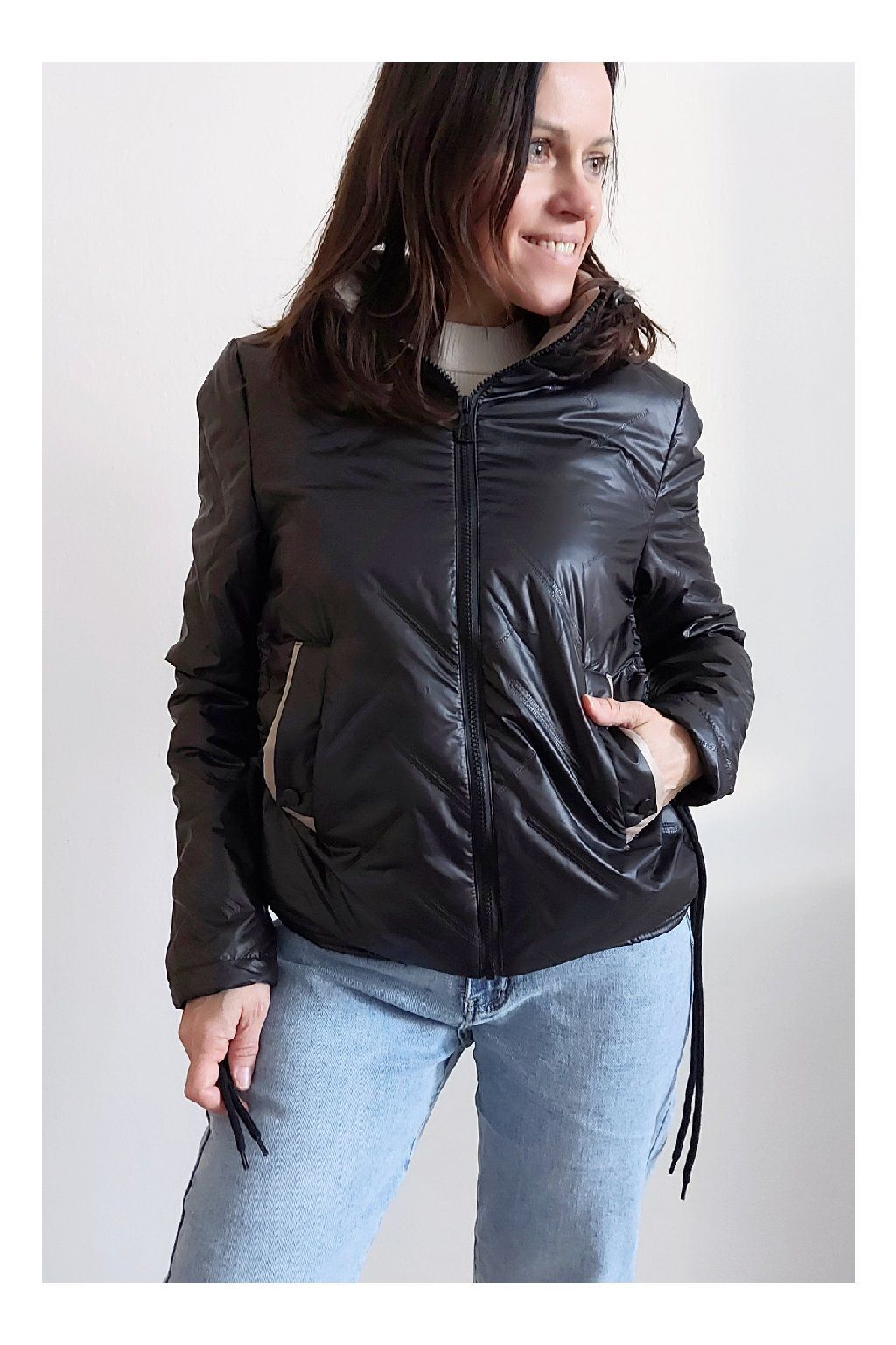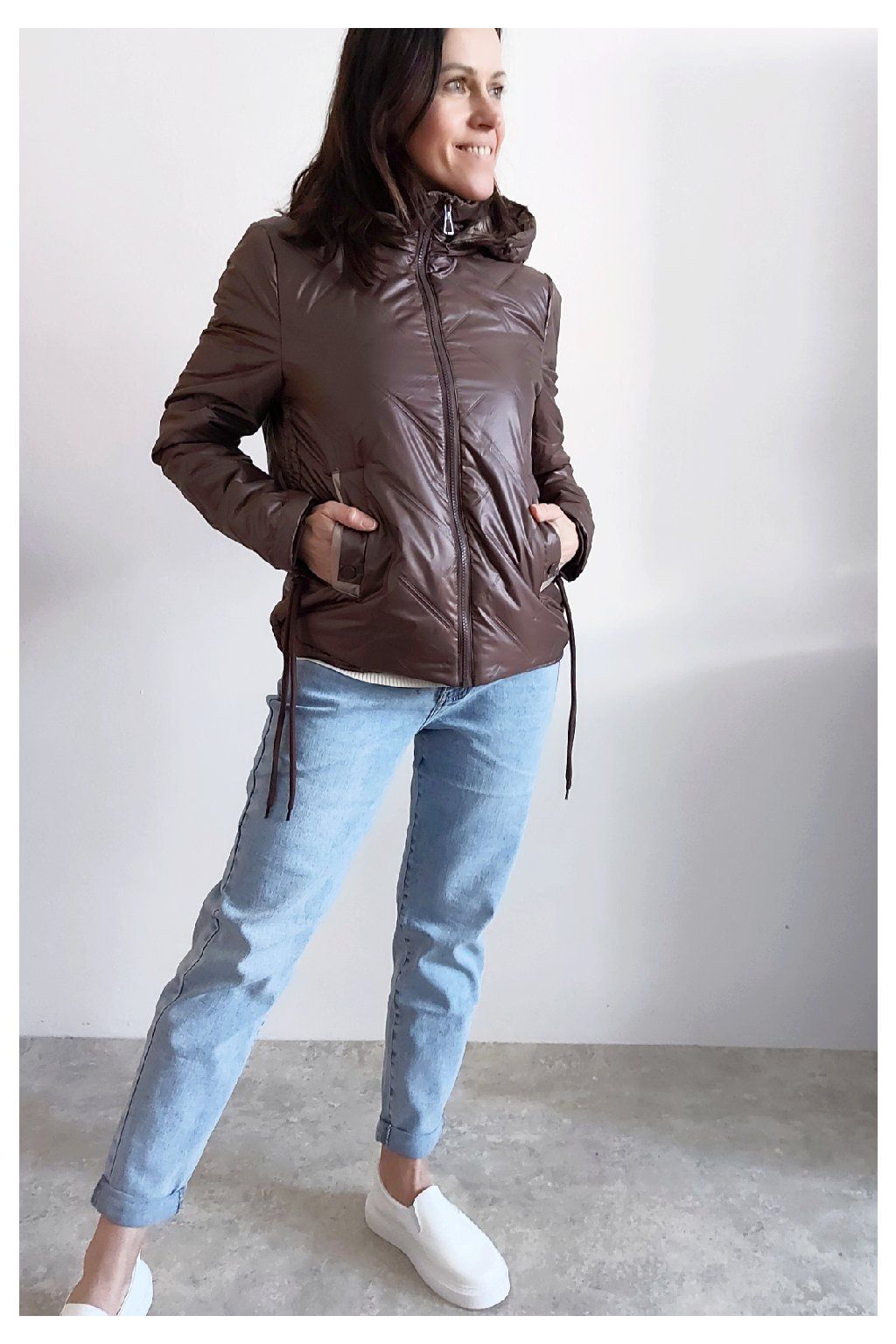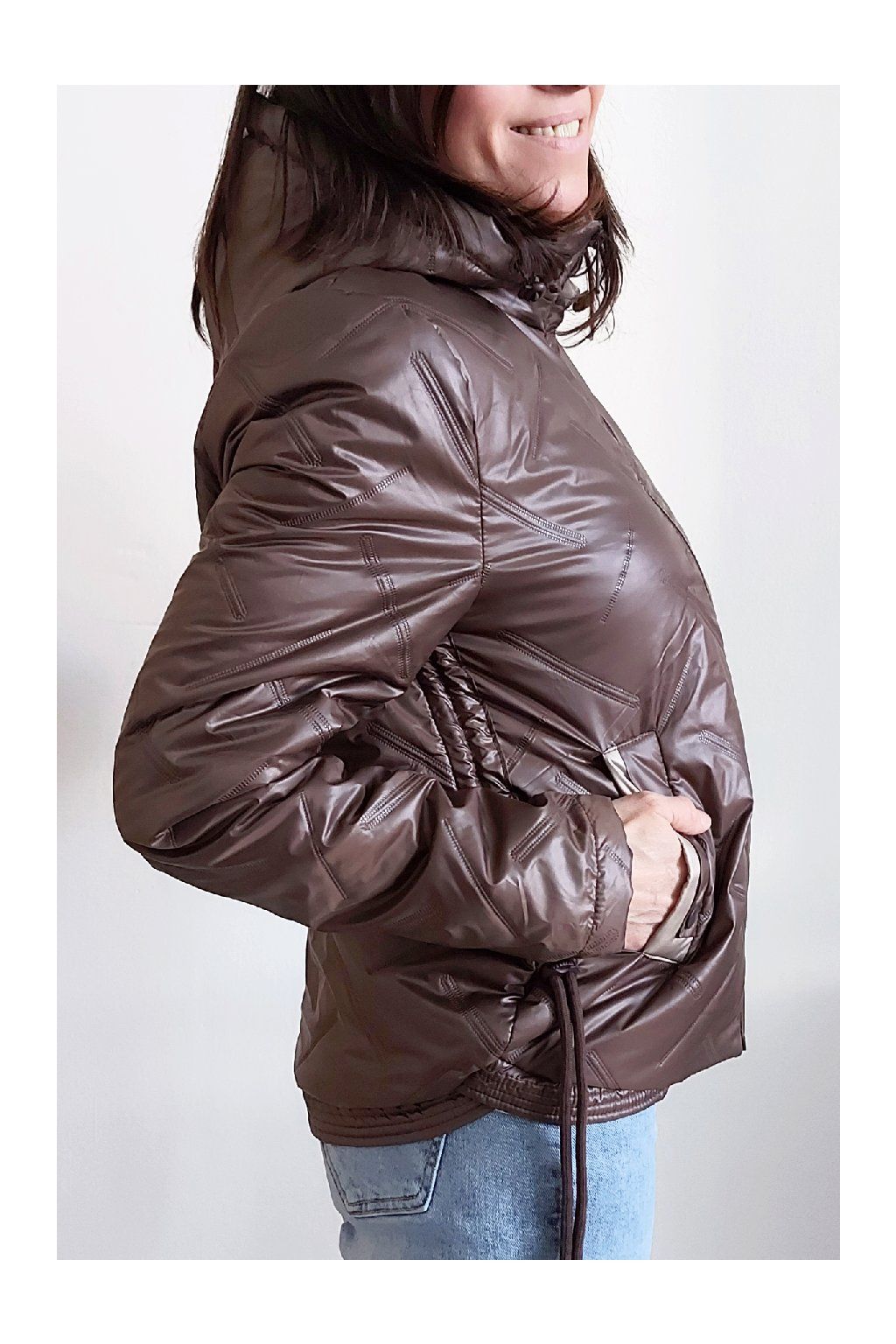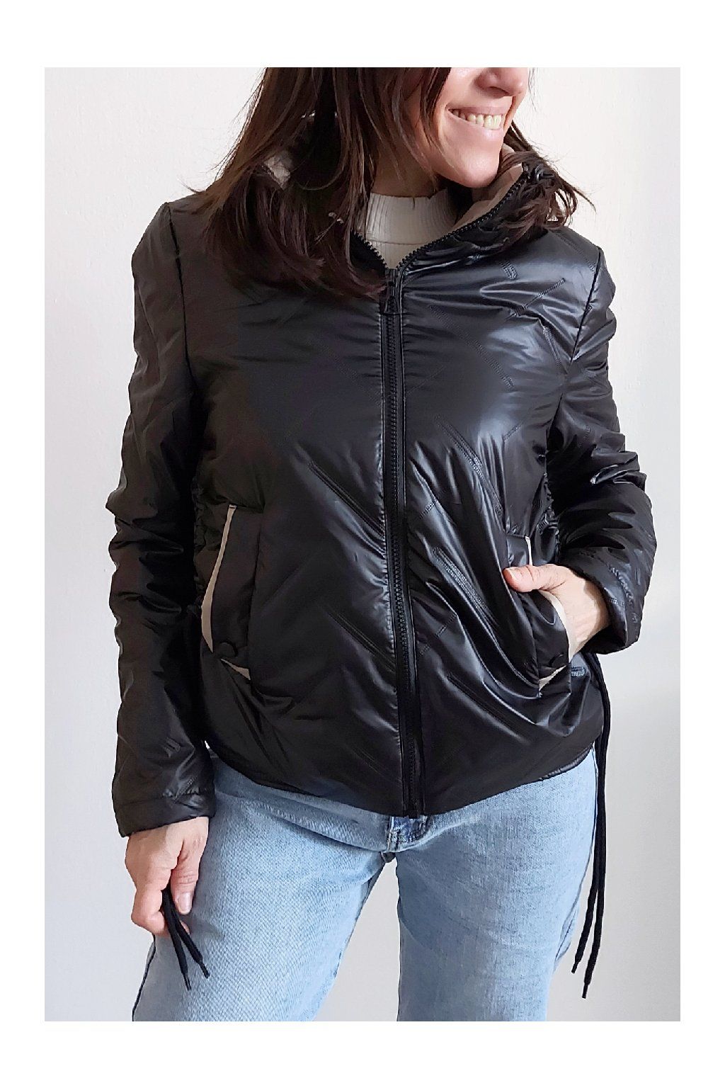 Nádherná přechodová bunda s kapucí. Ta je na zip a lze ji odepnout. Rukávy jsou dlouhé. Zapínání na zip. Přední kapsy jsou módně řešené kombinací dvou barev čokoládové a béžové a mají i ozdobný cvok. Po bocích je možné bundu stáhnout. Zadní strana je maličko delší, bunda je rovného střihu. Lehoučký, vysoce kvalitní materiál. Má podšívku. Doporučujeme brát o velikost větší než běžně nosíte. Vel.. S focena na vel. XS, výška 156cm.