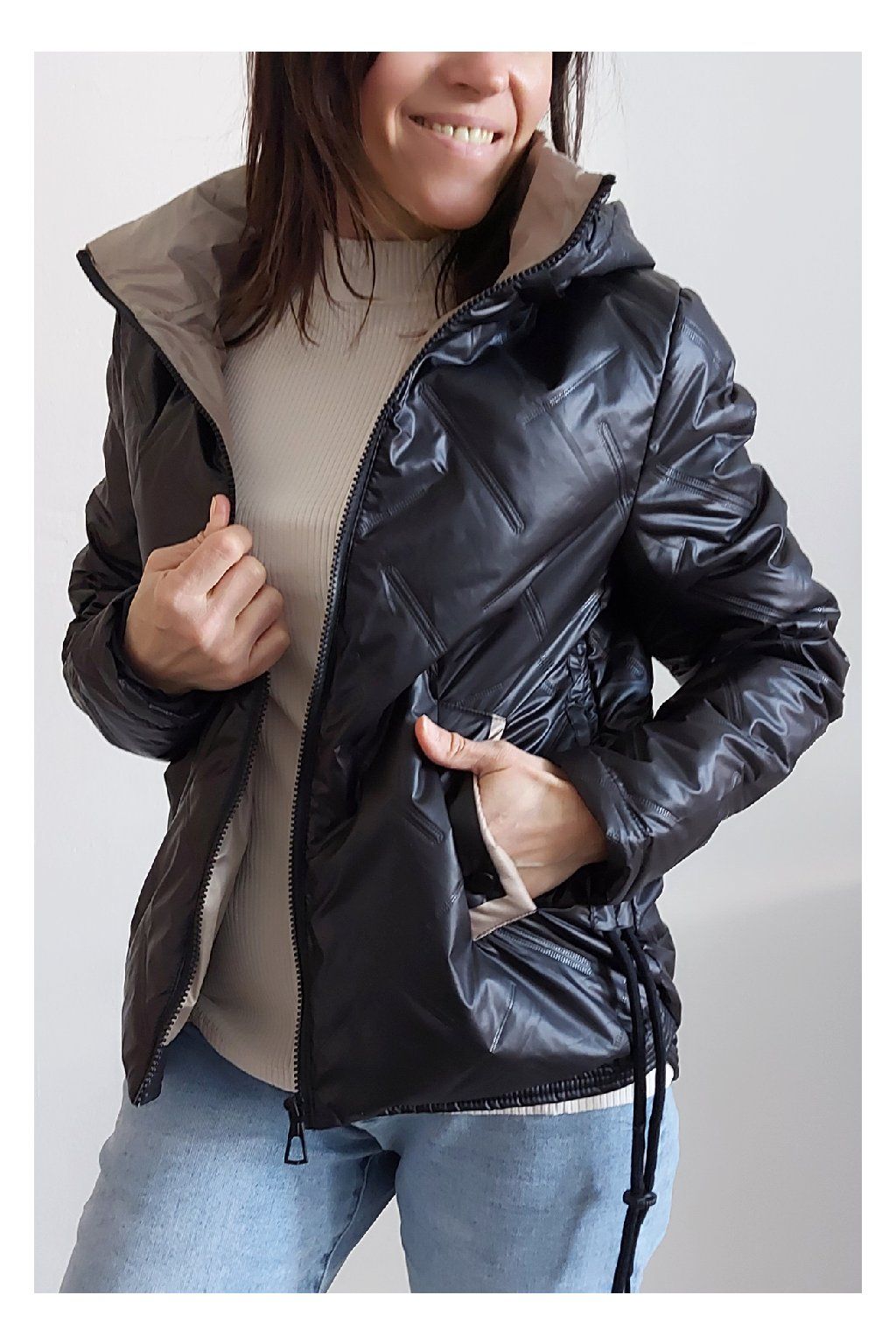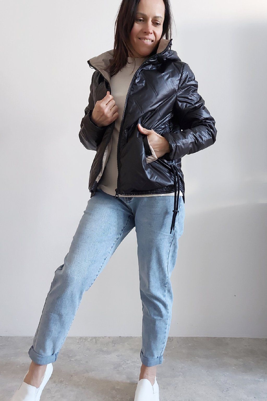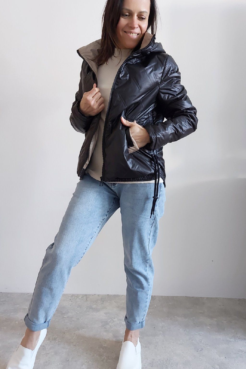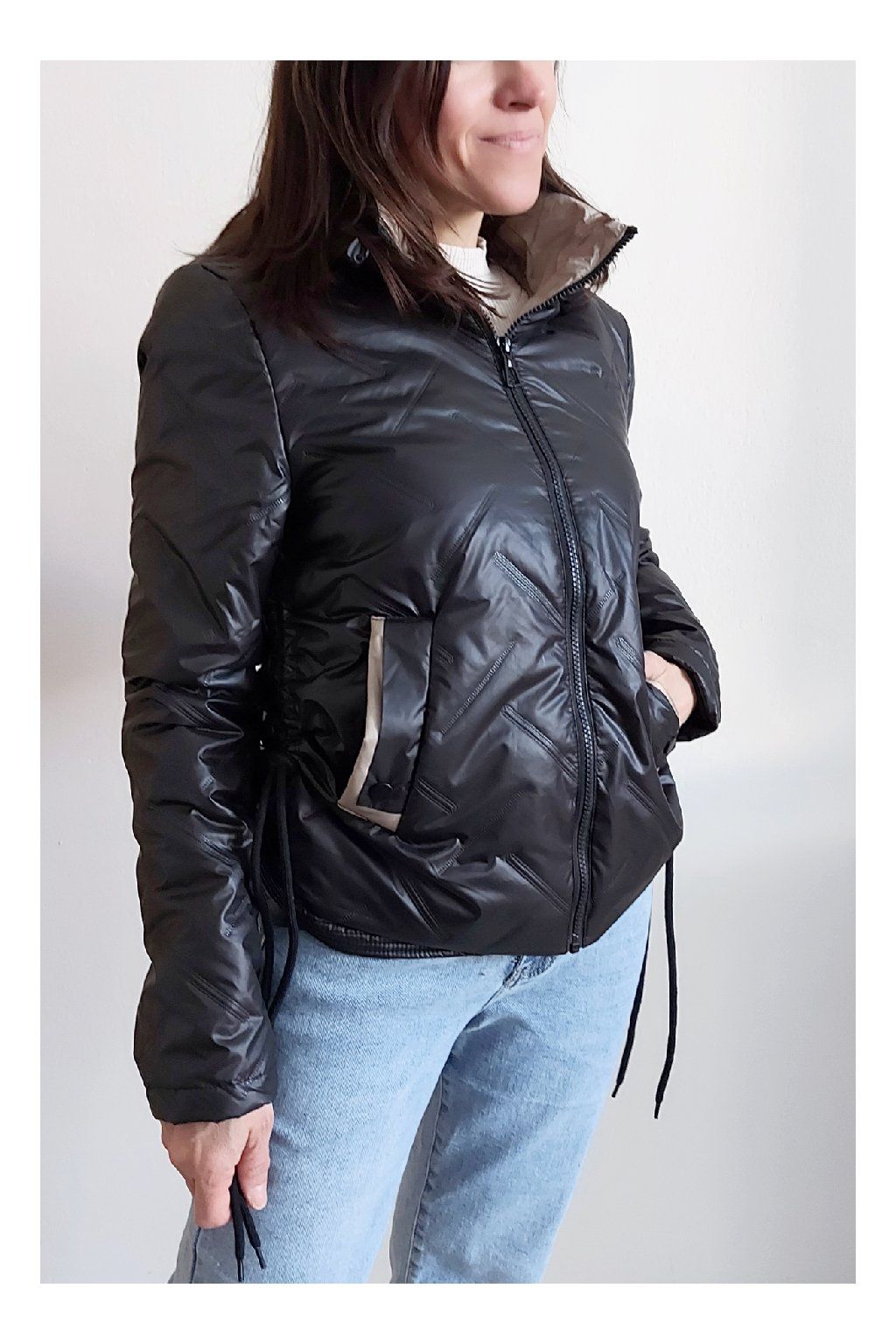 Nádherná přechodová bunda s kapucí. Ta je na zip a lze ji odepnout. Rukávy jsou dlouhé. Zapínání na zip. Přední kapsy jsou módně řešené kombinací dvou barev čokoládové a béžové a mají i ozdobný cvok. Po bocích je možné bundu stáhnout. Zadní strana je maličko delší, bunda je rovného střihu. Lehoučký, vysoce kvalitní materiál. Má podšívku. Doporučujeme brát o velikost větší než běžně nosíte. Vel.. S focena na vel. XS, výška 156cm.