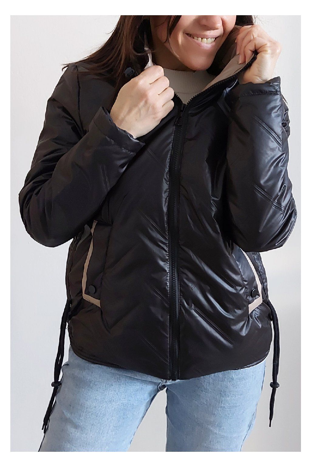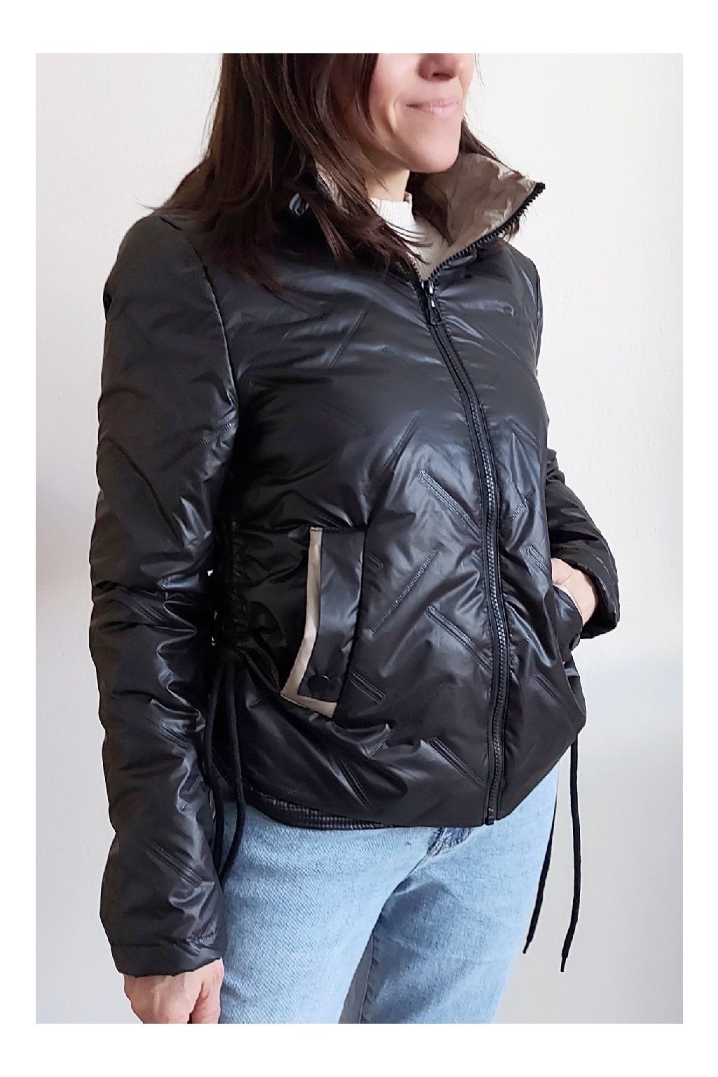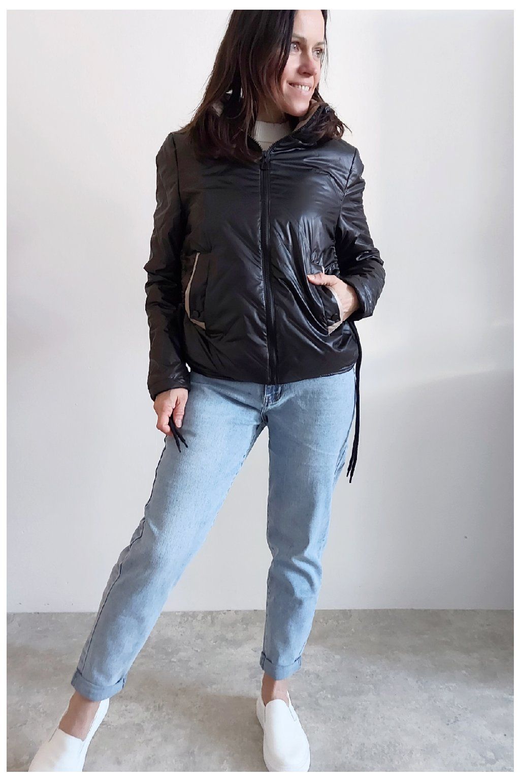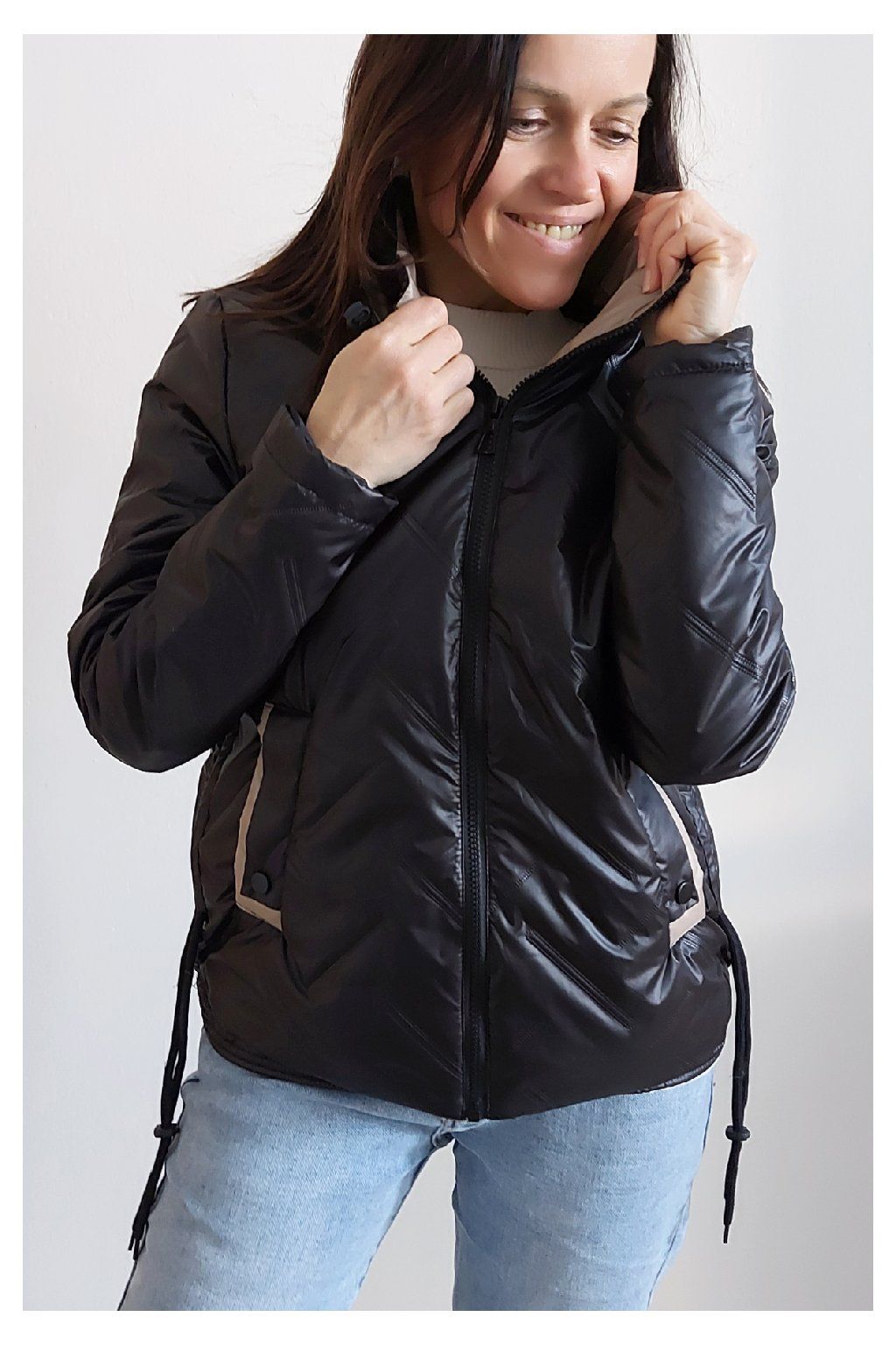 Nádherná přechodová bunda s kapucí. Ta je na zip a lze ji odepnout. Rukávy jsou dlouhé. Zapínání na zip. Přední kapsy jsou módně řešené kombinací dvou barev čokoládové a béžové a mají i ozdobný cvok. Po bocích je možné bundu stáhnout. Zadní strana je maličko delší, bunda je rovného střihu. Lehoučký, vysoce kvalitní materiál. Má podšívku. Doporučujeme brát o velikost větší než běžně nosíte. Vel.. S focena na vel. XS, výška 156cm.