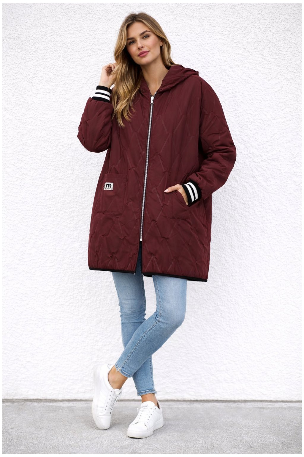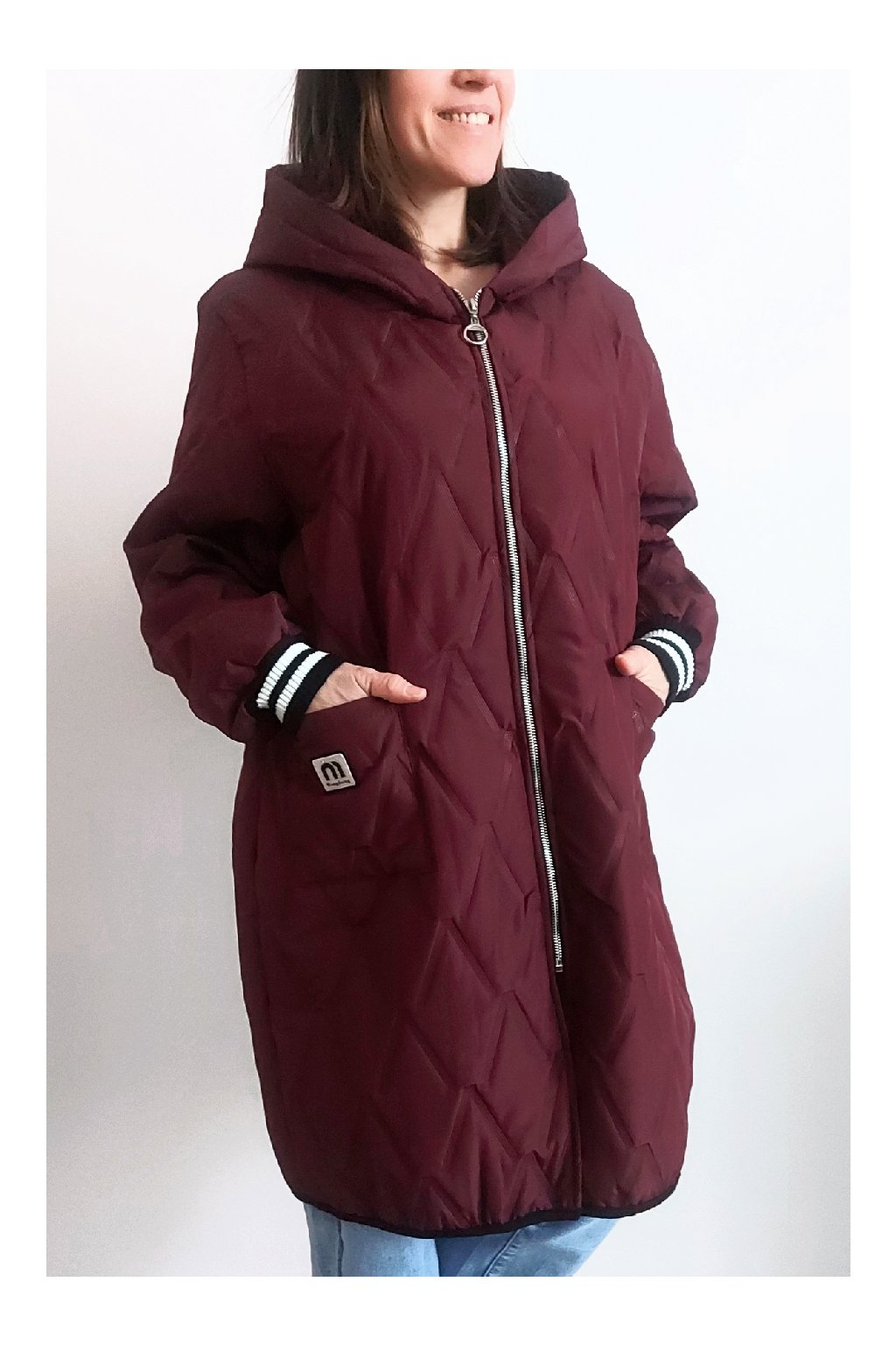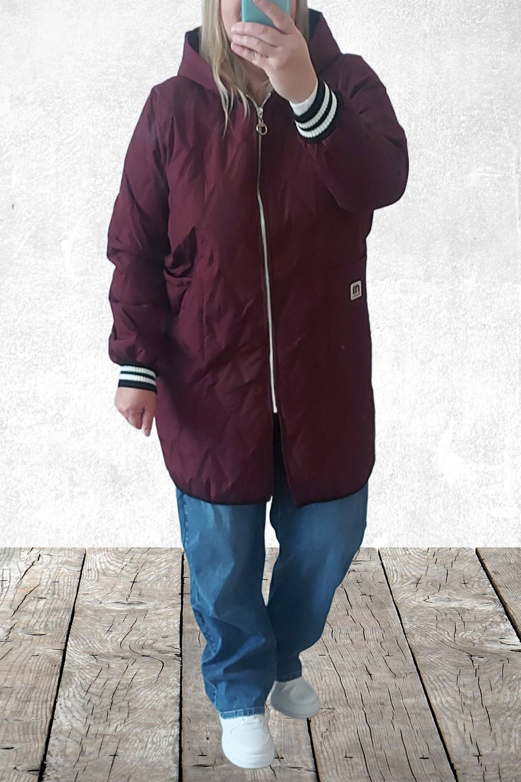 Přechodová bunda i pro větší velikosti s kapucí. Tu nelze odepnout. Rukávy jsou ukončené úpletem zdobený proužky. Zapínání na zip, přední kapsy, na jedné z nich ozdobná nášivka. Bez podšívky. Prémiová kvalita materiálu. Foceno na vel. XS, výška 156cm i na vel. 2XL/3XL, výška 165cm (prsa 116cm, boky 120cm).