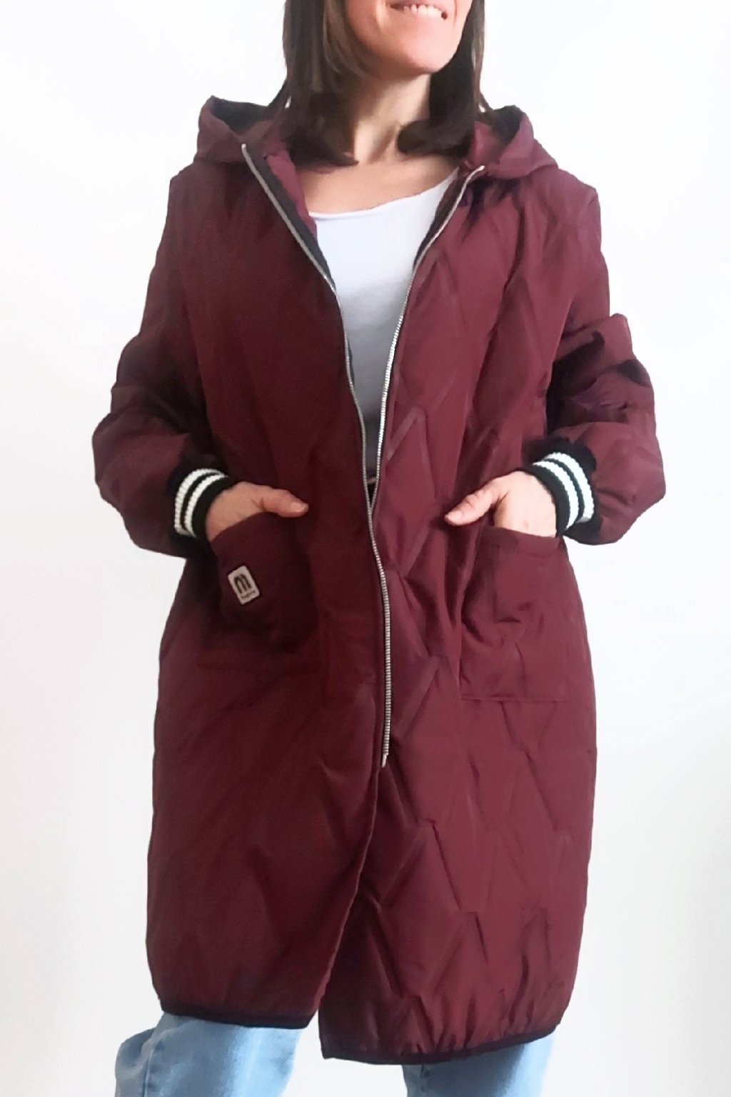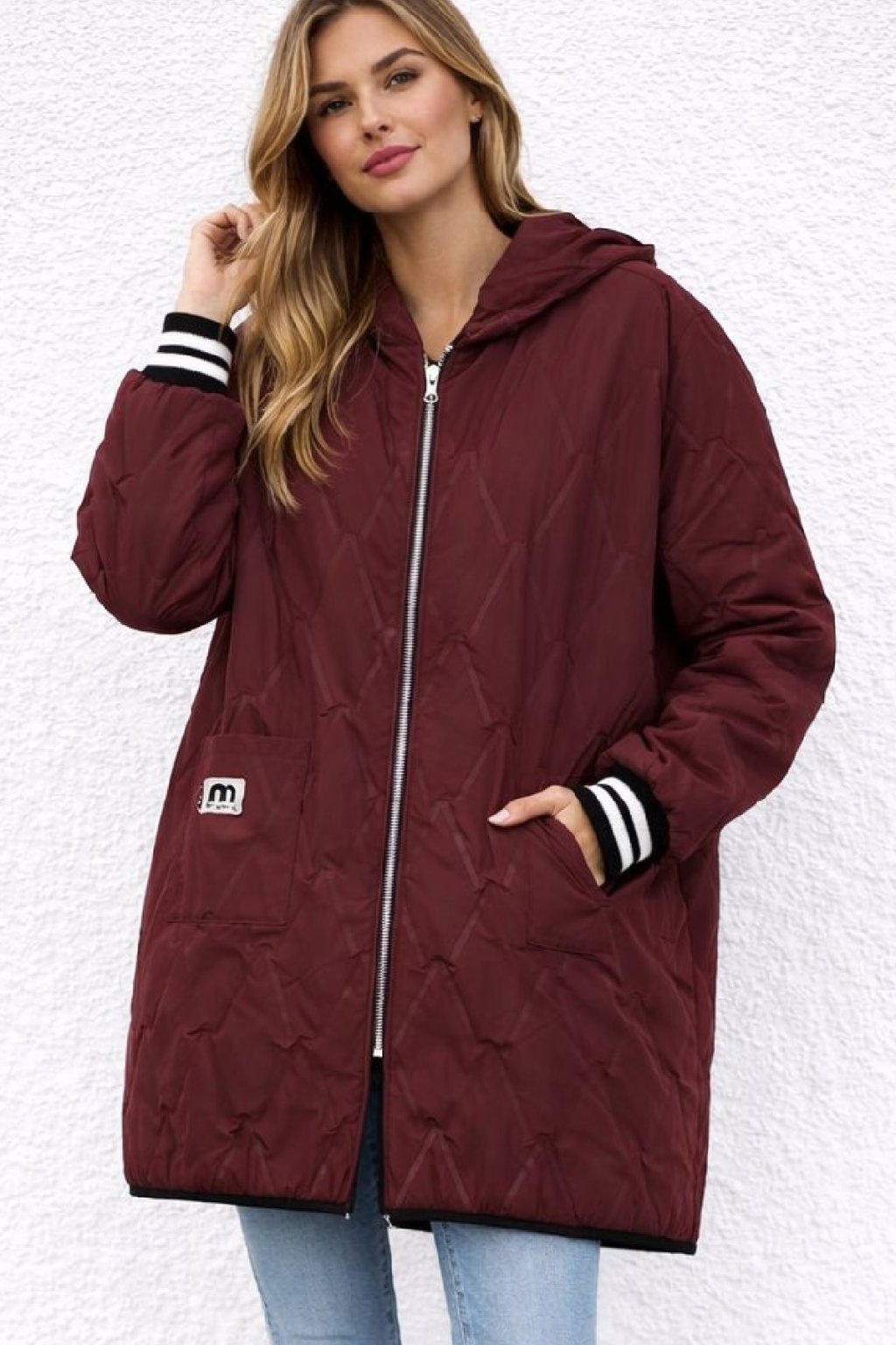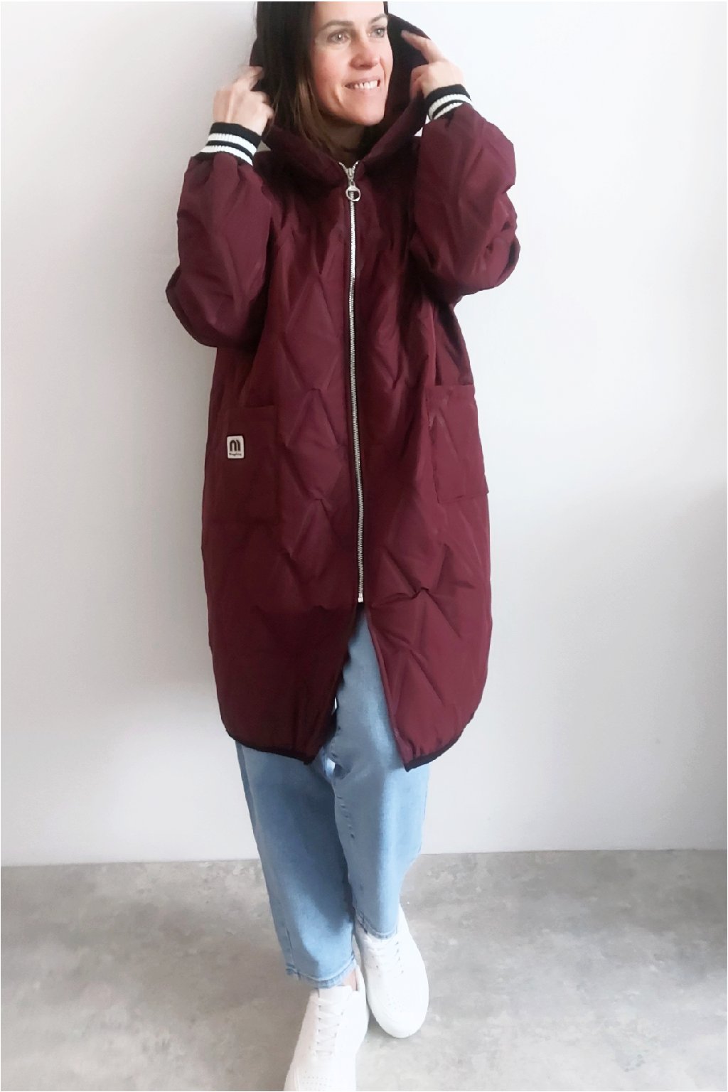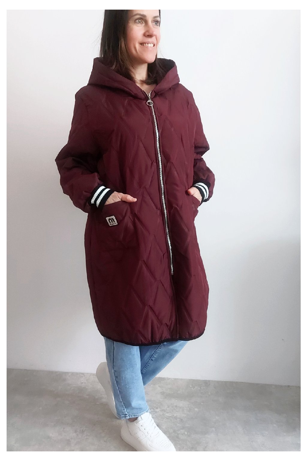 Přechodová bunda i pro větší velikosti s kapucí. Tu nelze odepnout. Rukávy jsou ukončené úpletem zdobený proužky. Zapínání na zip, přední kapsy, na jedné z nich ozdobná nášivka. Bez podšívky. Prémiová kvalita materiálu. Foceno na vel. XS, výška 156cm i na vel. 2XL/3XL, výška 165cm (prsa 116cm, boky 120cm).