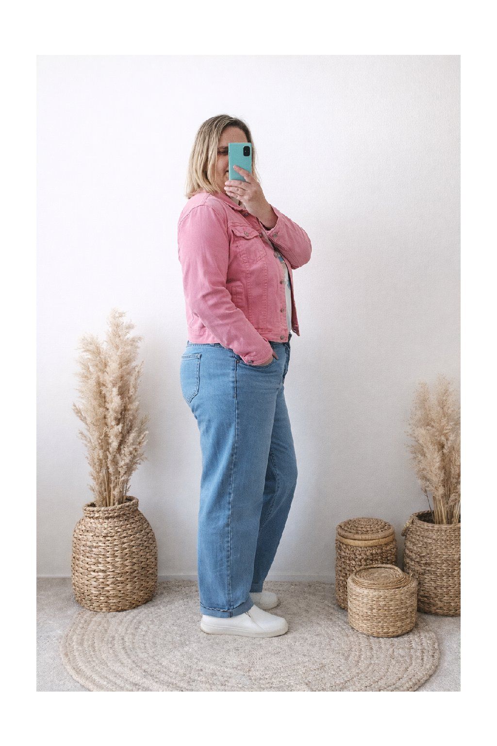 Džínová bunda v nádherné růžové barvě. Délka do pasu. Celo propínací, vpředu kapsy na knoflíky. Přední kapsy. Rukávy dlouhé. Značka Re-Dress. Kvalitní měkčí a pružná riflovina. Vel. 3XL focena na vel. 2XL (prsa 116cm, pas 104cm, boky 121cm), výška 165cm.