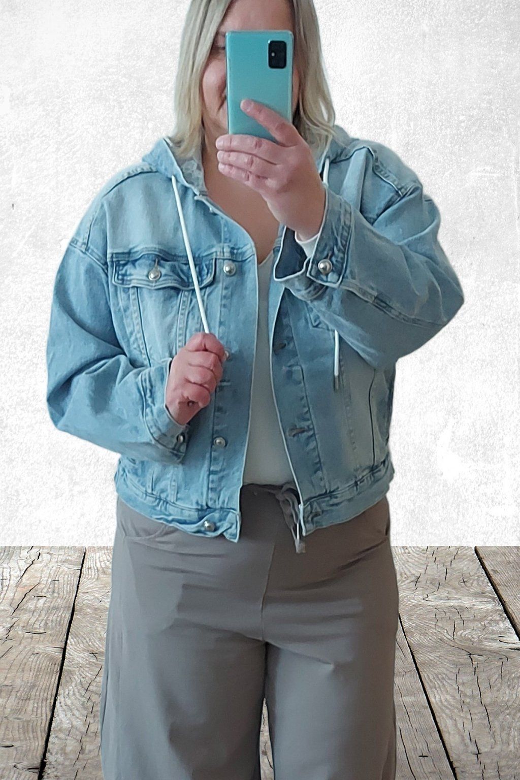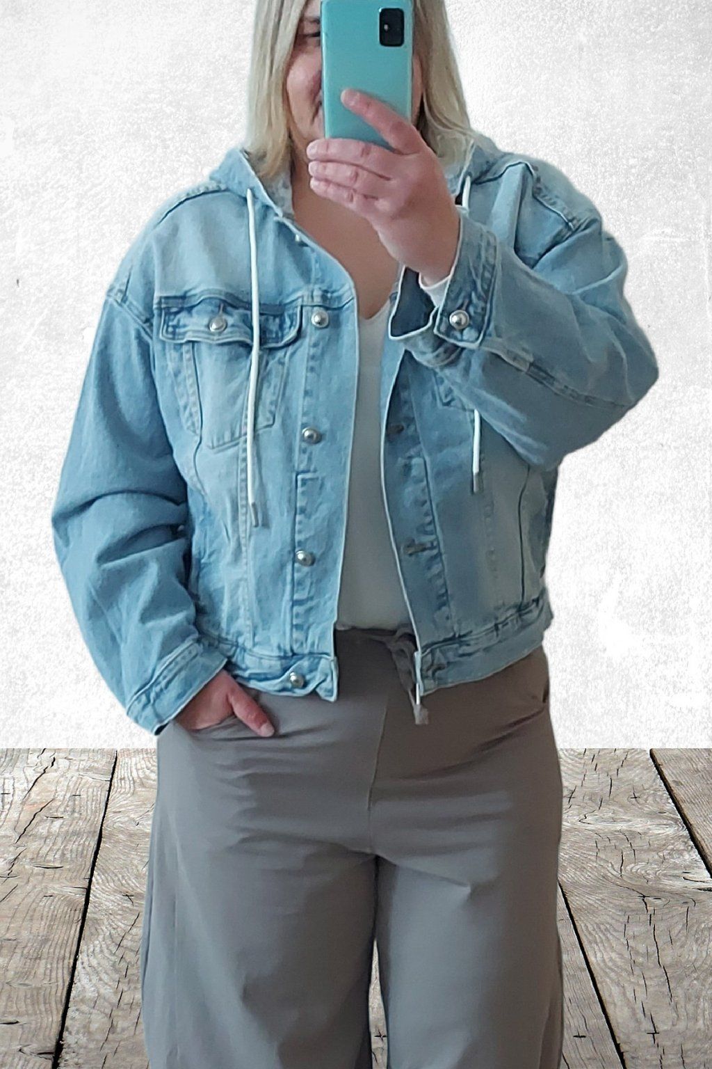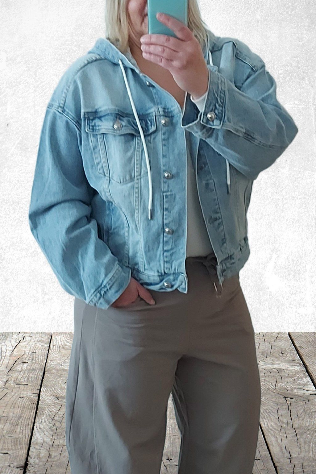 Džínová bunda s kapucí světle modrá