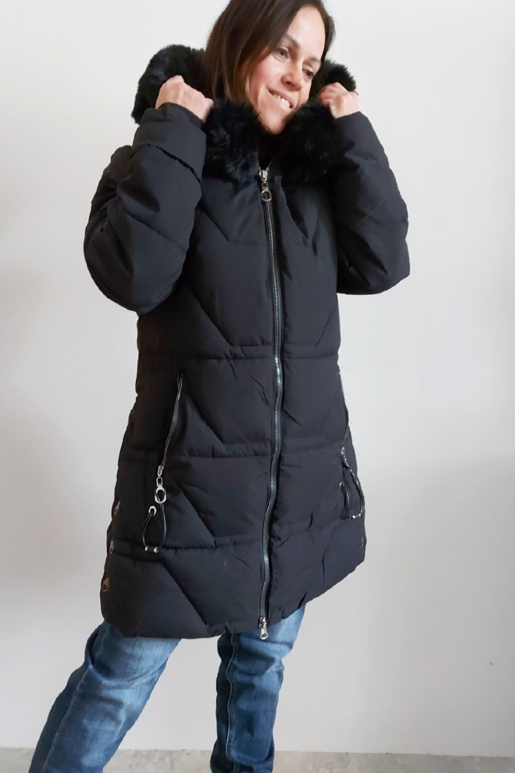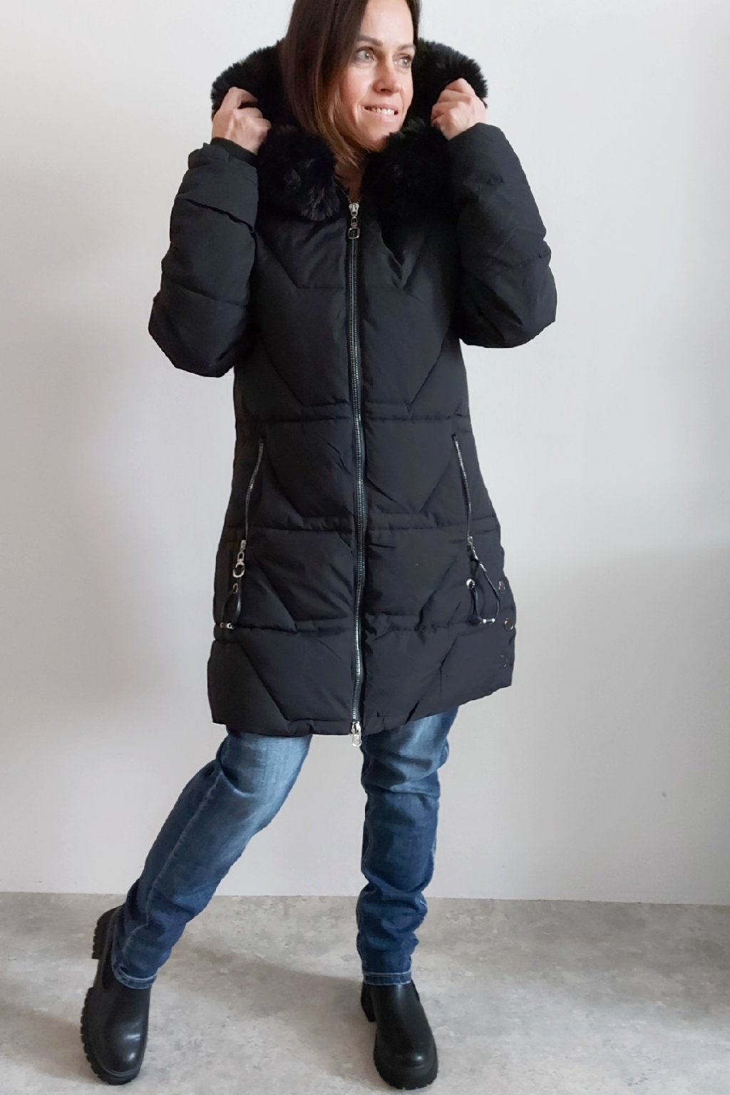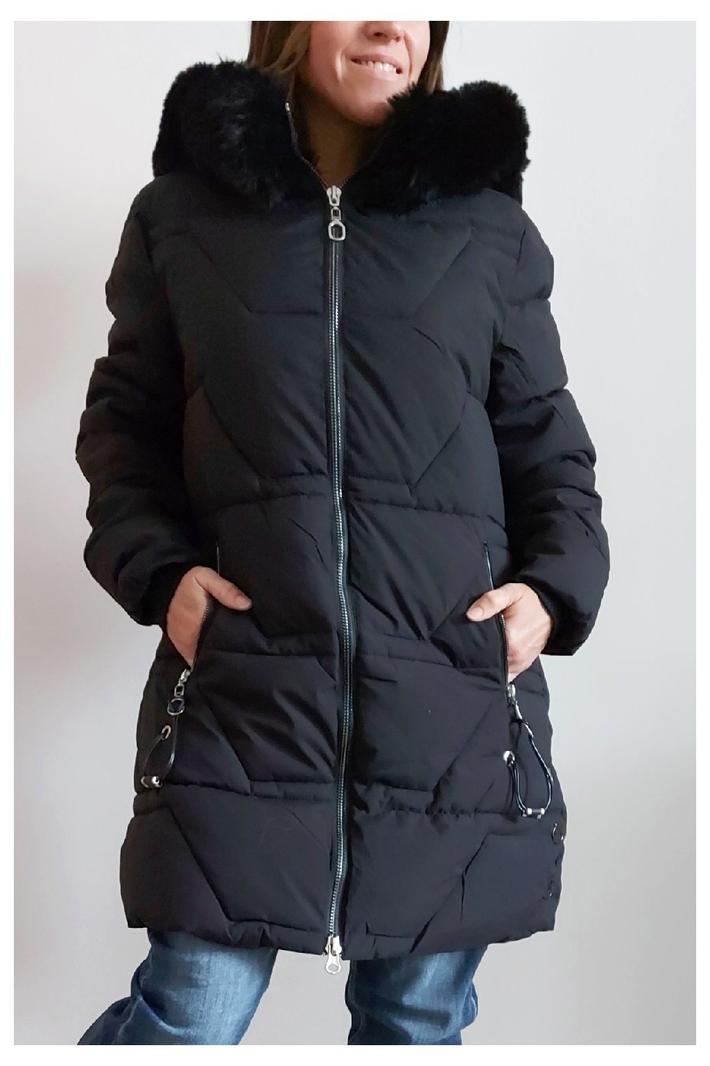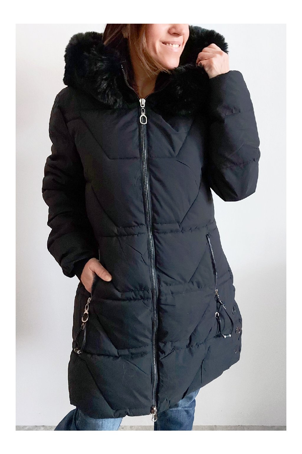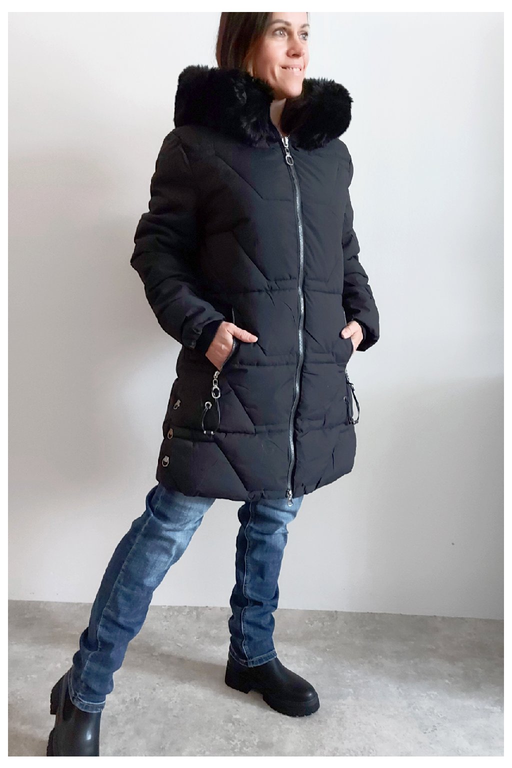 Zimní prošívaná bunda s kapucí. Kapuce nelze odepnout. Na ní je kožešinka, ta je na knoflíky a lze ji sundat. Zapínání na zip. Přední kapsy jsou také uzaviratelné zipem. Po bocích, ve spodní části, jsou ozdobné spony. V rukávech jsou všité úplety - vítr nemá šanci. Bunda máš podšívku. Materiál silný, hodně teploučký. Pozor - velikosti neodpovídají, jsou menší, řiďte se mírami (sedí na vel. M až 3XL). Vel. 3XL focena na vel. XS, výška 156cm a vel. 6XL focena na vel. 2XL (prsa 116cm, boky 120cm), výška 165cm.