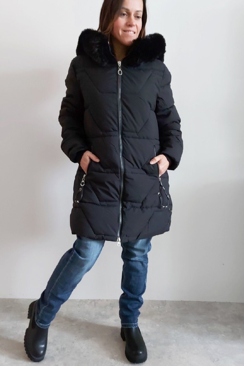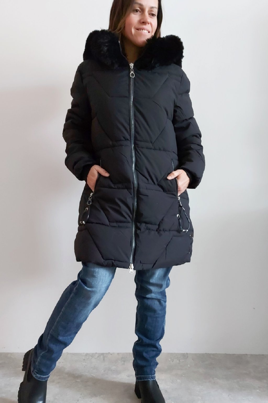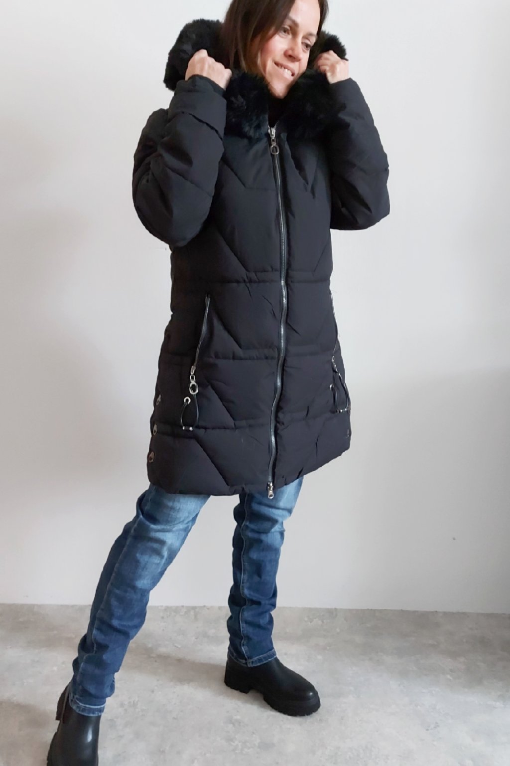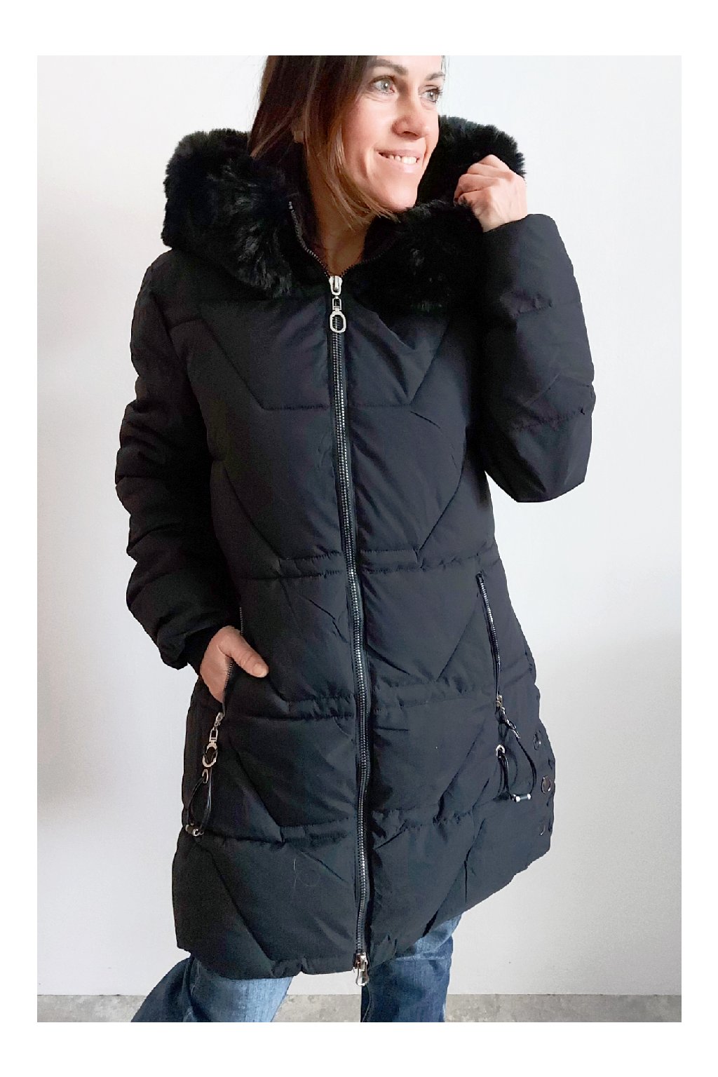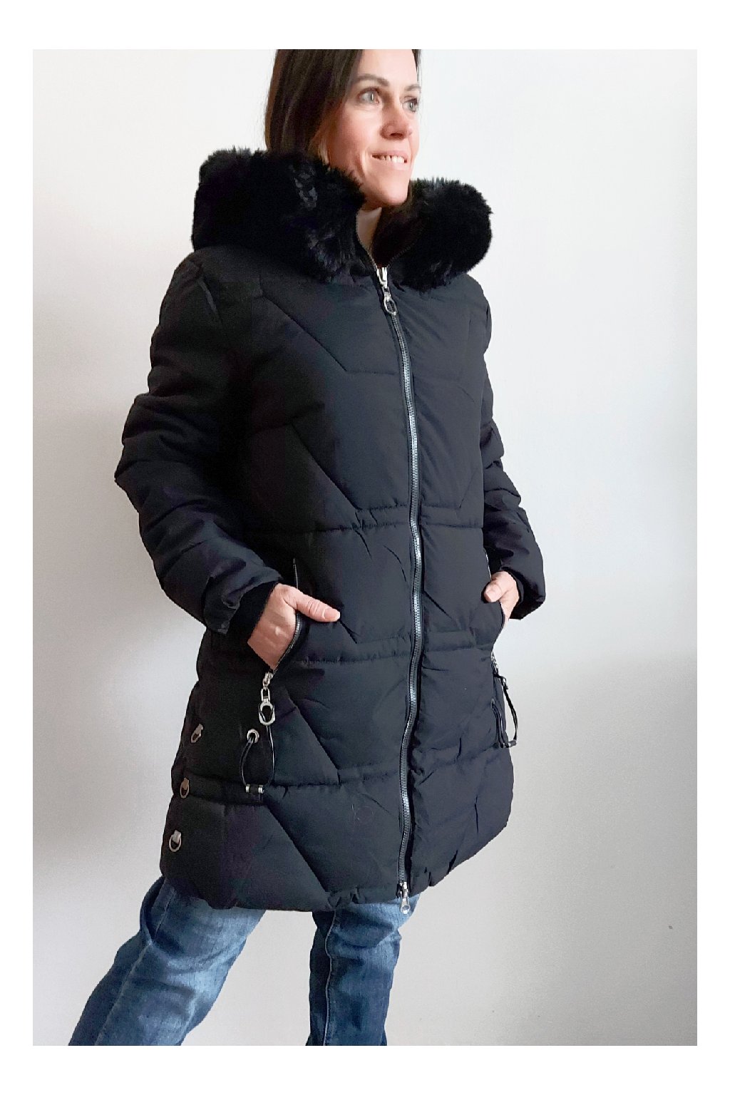 Zimní prošívaná bunda s kapucí. Kapuce nelze odepnout. Na ní je kožešinka, ta je na knoflíky a lze ji sundat. Zapínání na zip. Přední kapsy jsou také uzaviratelné zipem. Po bocích, ve spodní části, jsou ozdobné spony. V rukávech jsou všité úplety - vítr nemá šanci. Bunda máš podšívku. Materiál silný, hodně teploučký. Pozor - velikosti neodpovídají, jsou menší, řiďte se mírami (sedí na vel. M až 3XL). Vel. 3XL focena na vel. XS, výška 156cm a vel. 6XL focena na vel. 2XL (prsa 116cm, boky 120cm), výška 165cm.