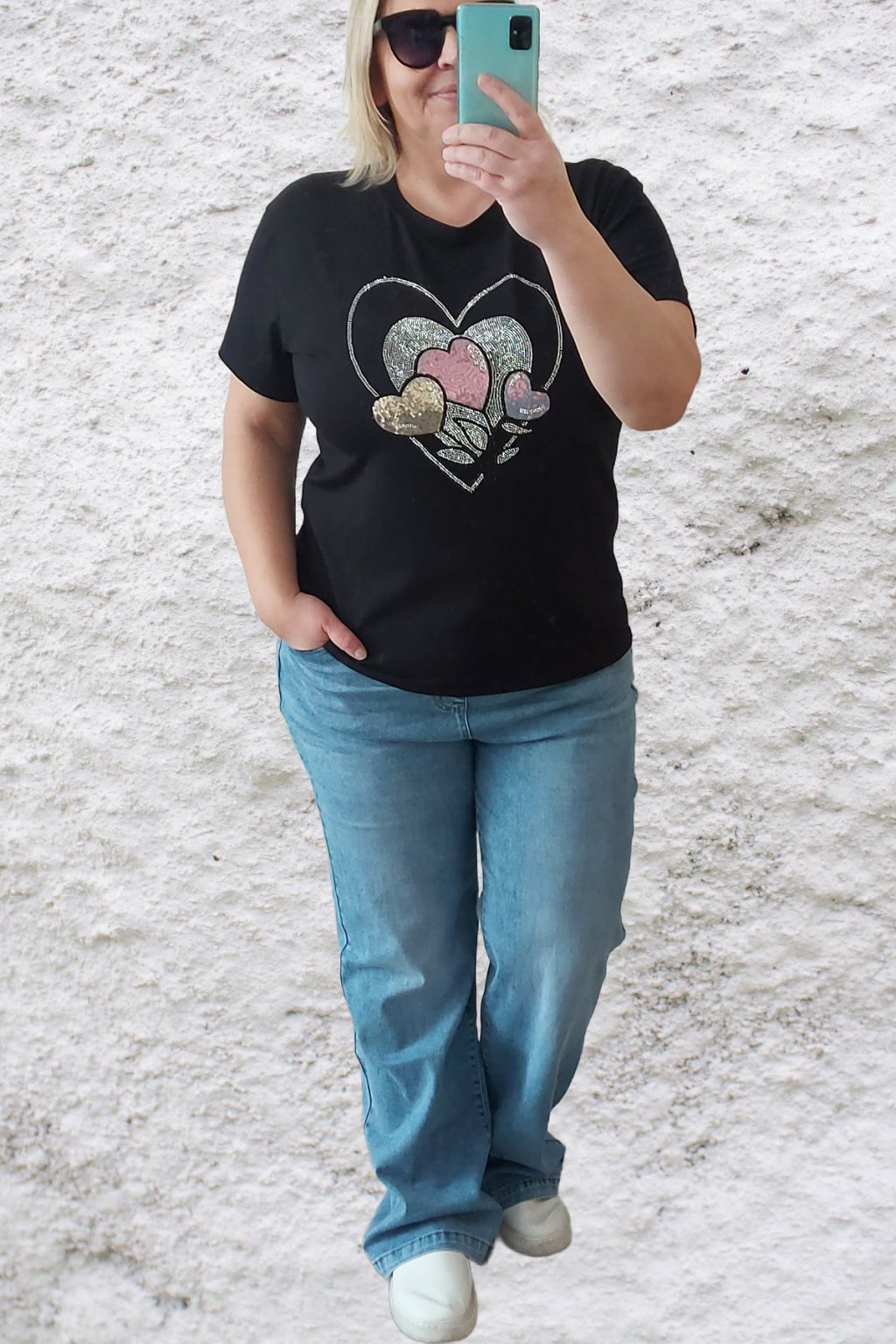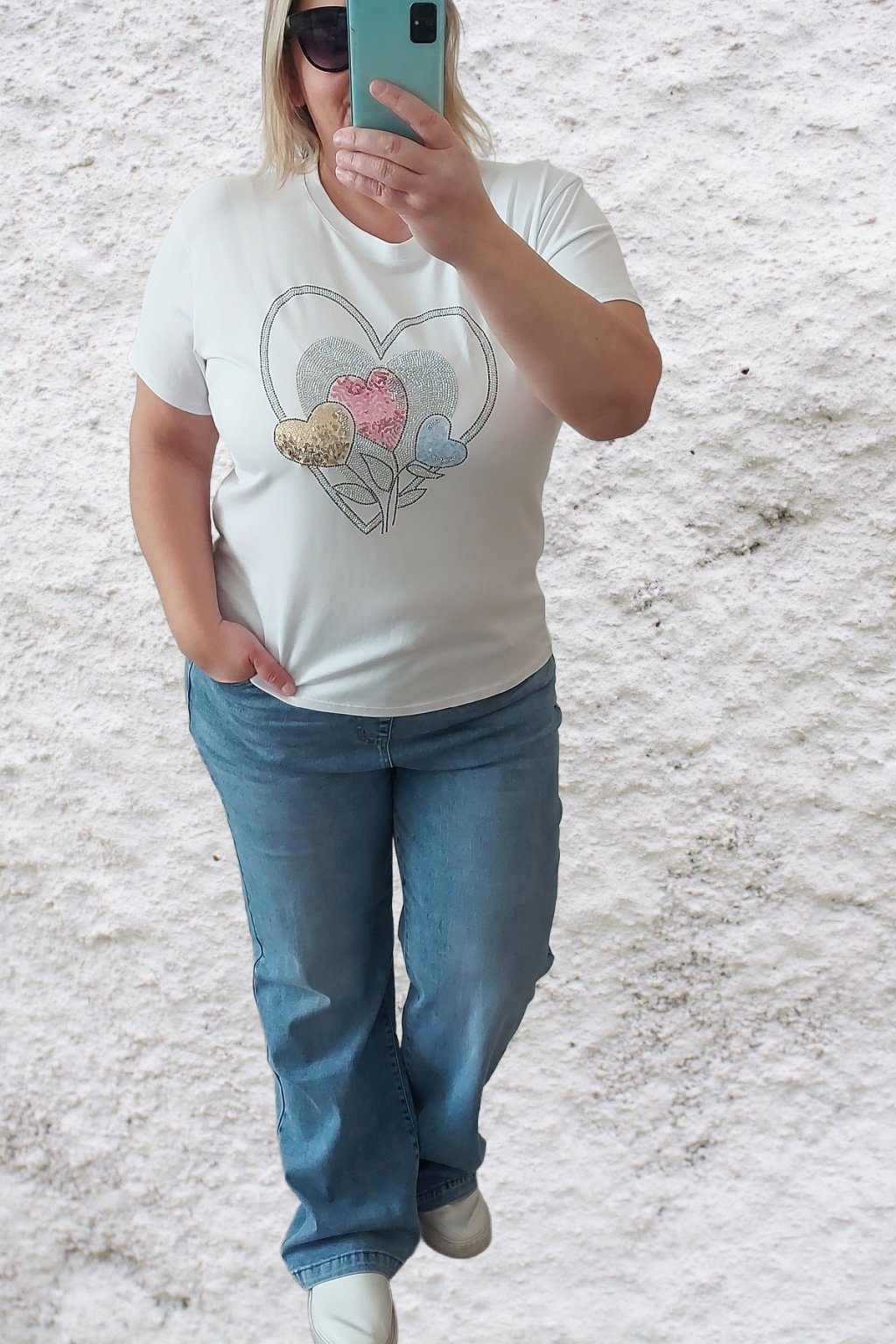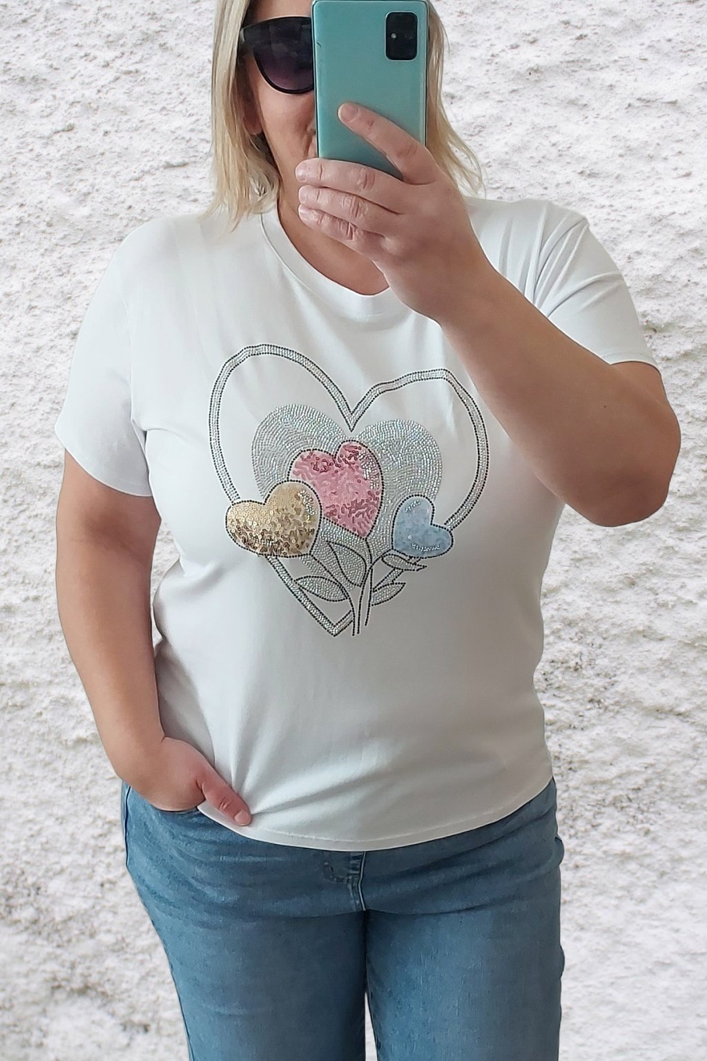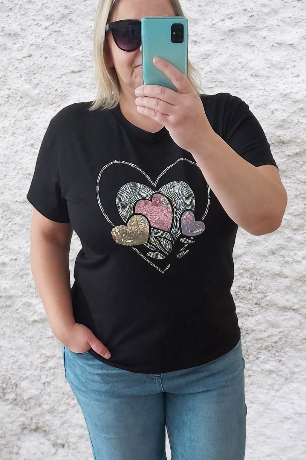 Tričko z vysoce kvalitního materiálu s nažehleným motivem, místy zdobený kamínky. Rukávy krátké. Bavlna vyšší gramáže - kvalitní, pružný materiál. Foceno na vel. 2XL (prsa 116cm, pas 104cm, boky 120cm), výška 165cm.