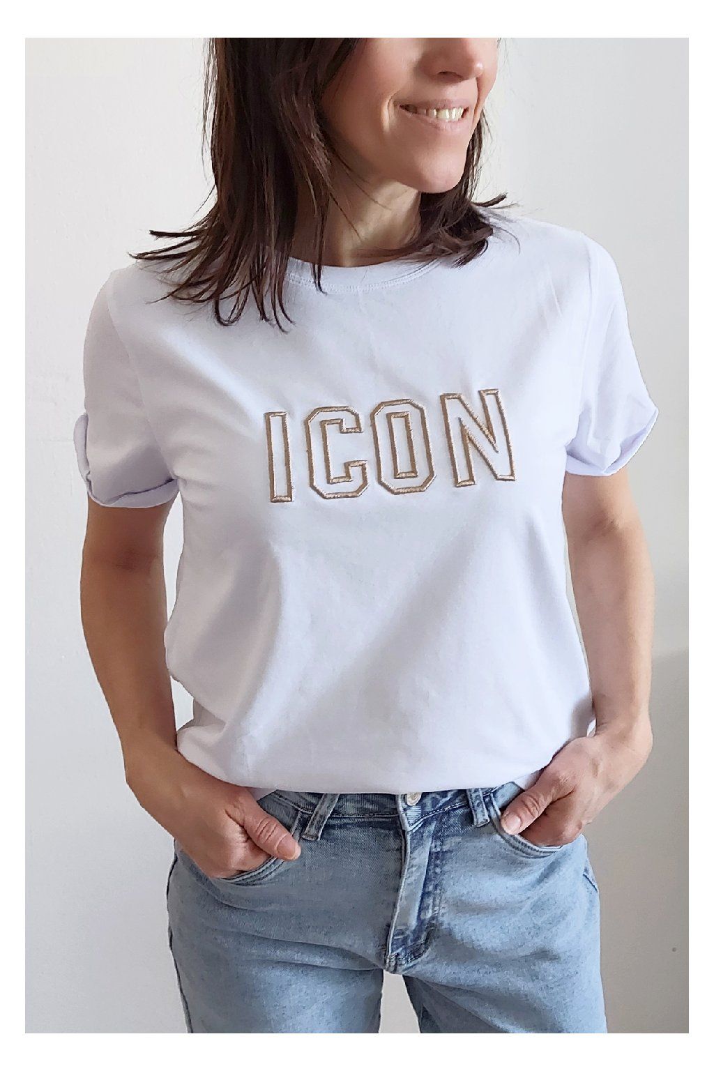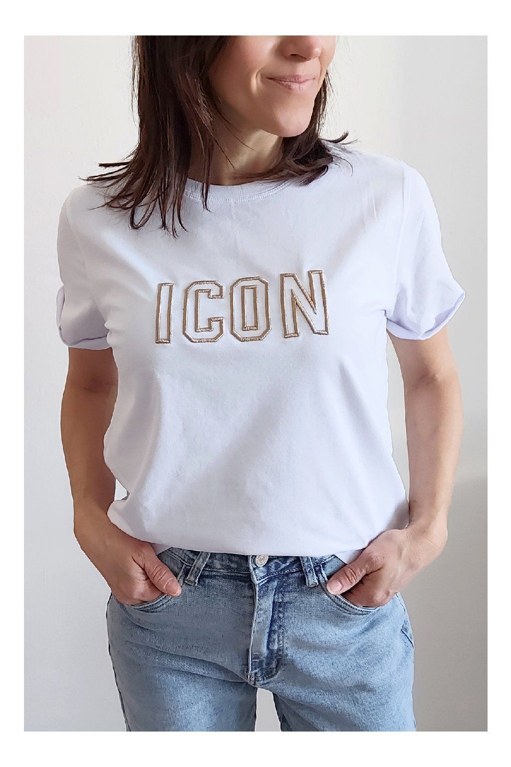 Bavlněné tričko krátký rukáv s vyšitým nápisem ICON