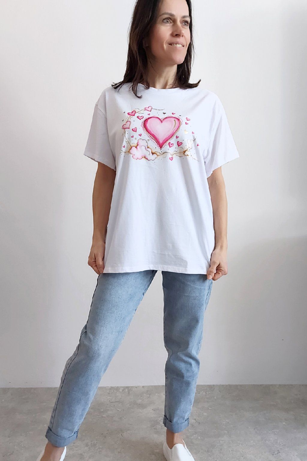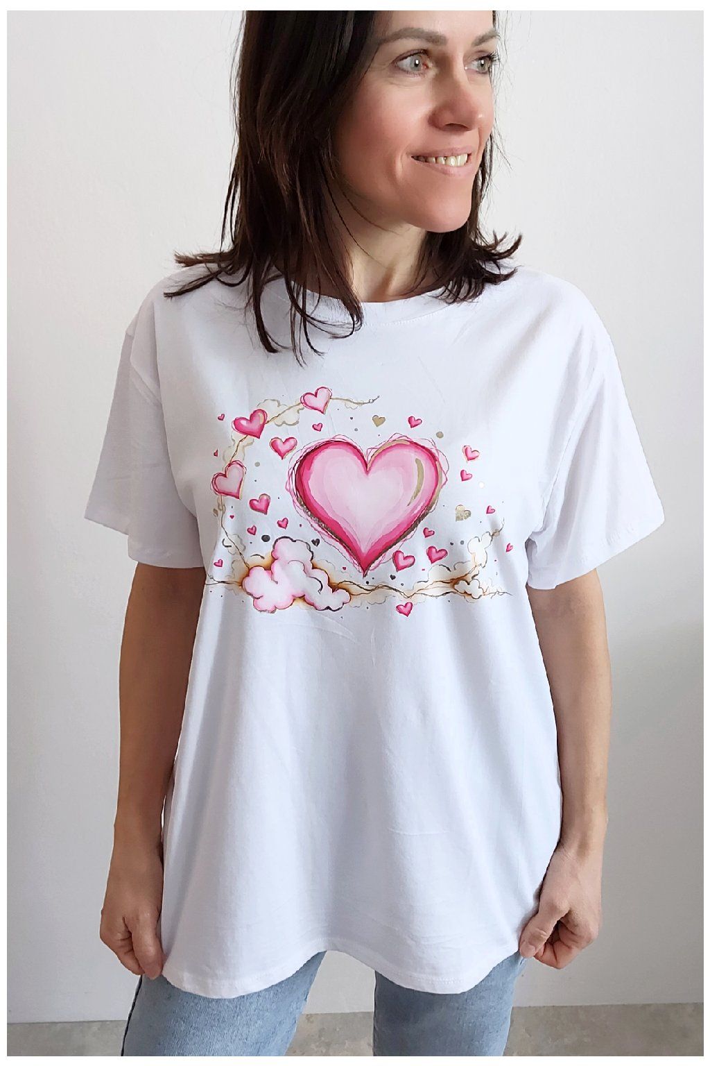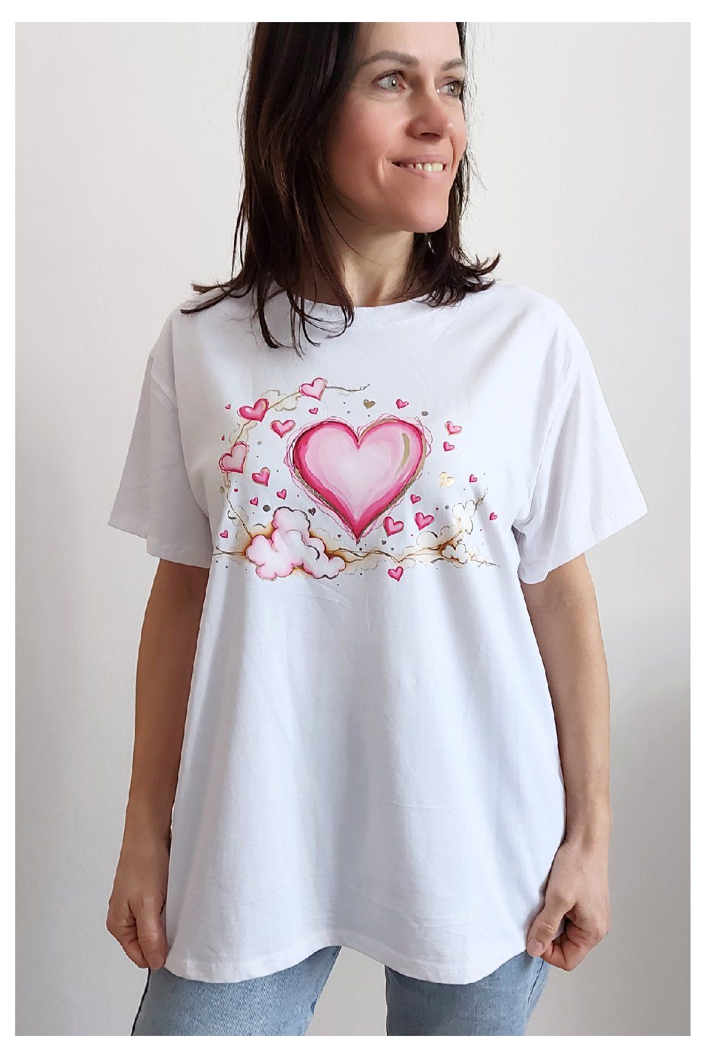 Tričko z vysoce kvalitního materiálu s nažehleným motivem. Rukávy krátké. Bavlna vyšší gramáže - kvalitní, pružný materiál. Foceno na vel. XS, výška 156cm i na vel. 2XL (prsa 116cm, pas 104cm, boky 120cm), výška 165cm.