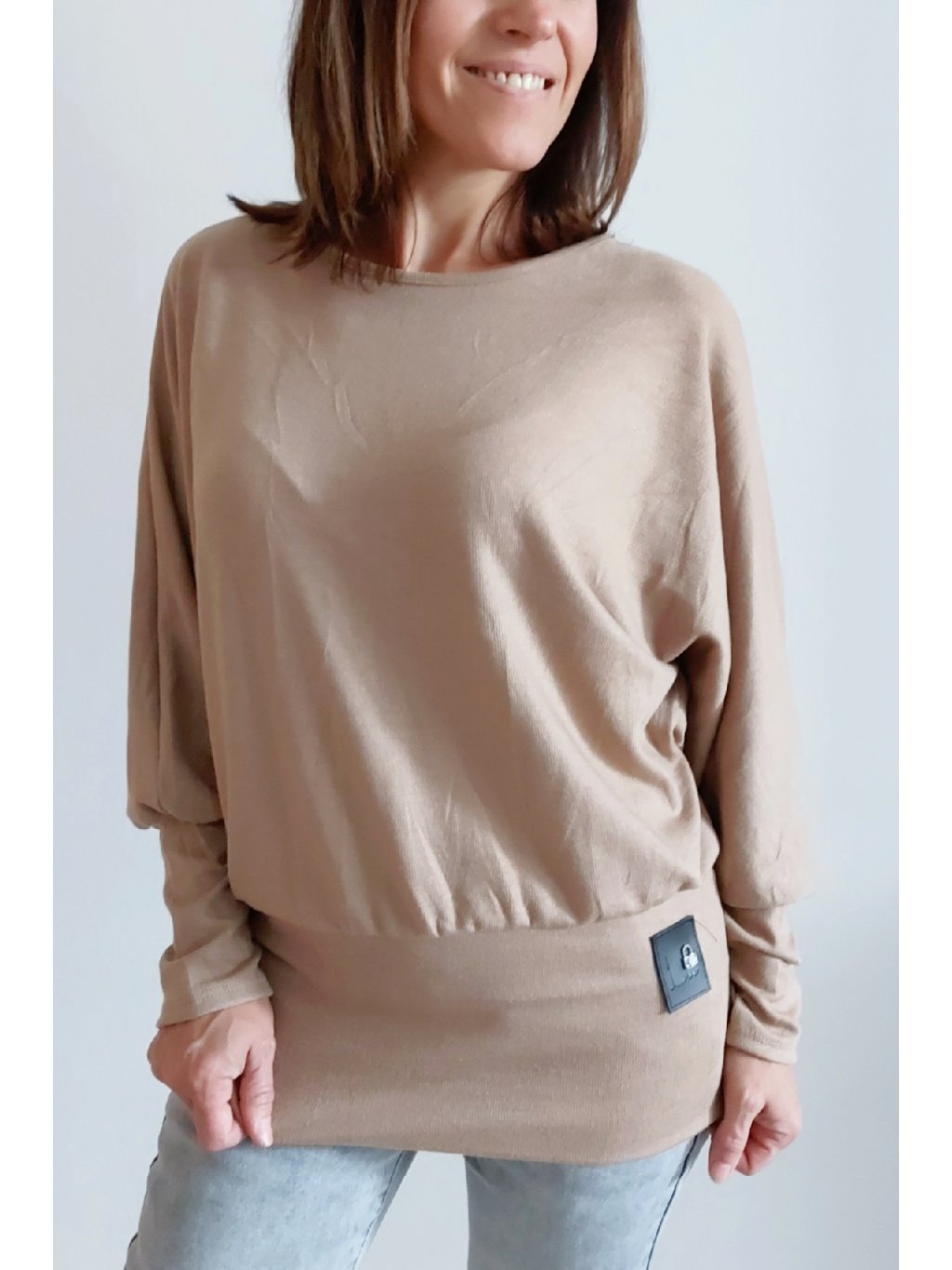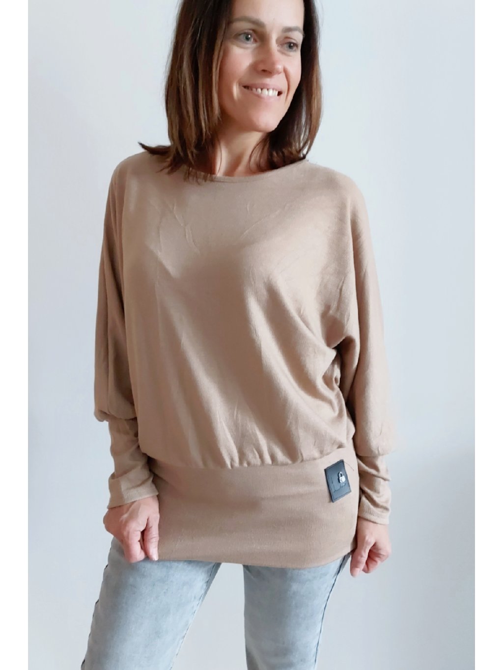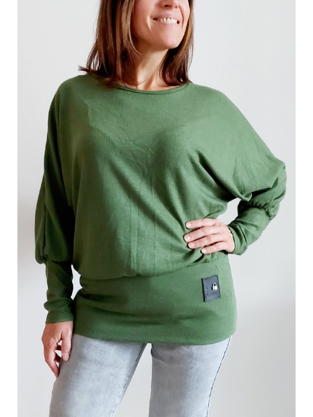 Úpletová tunika s širším lemem v pase netopýří rukáv