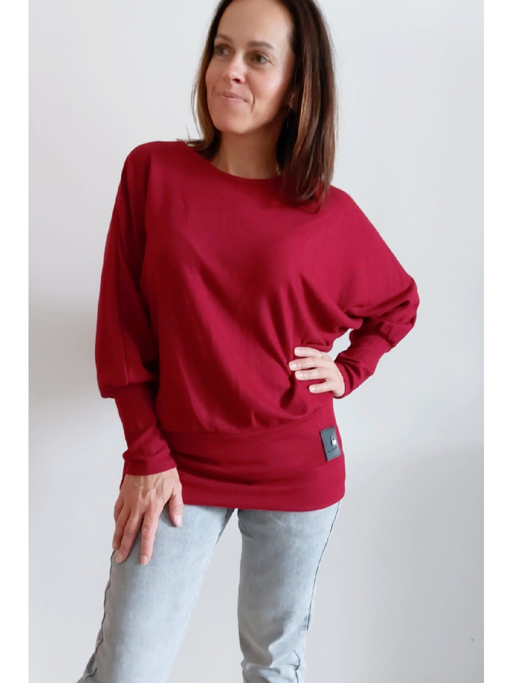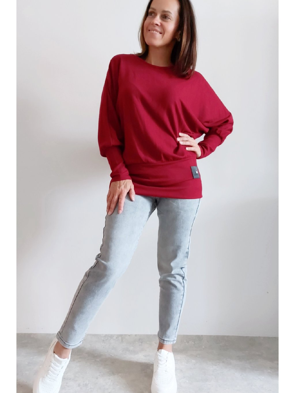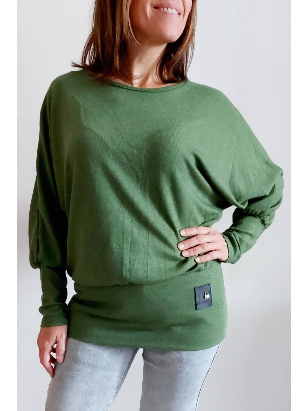 Úpletová tunika s širším lemem v pase netopýří rukáv